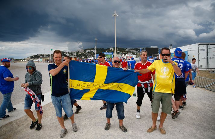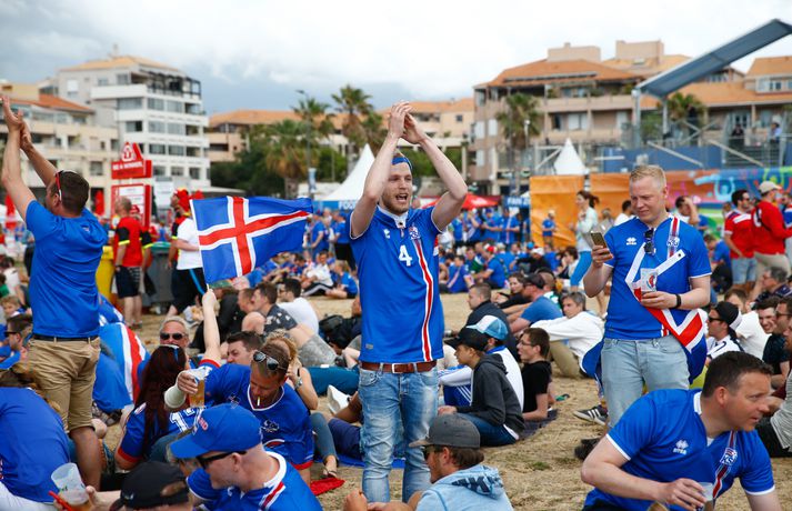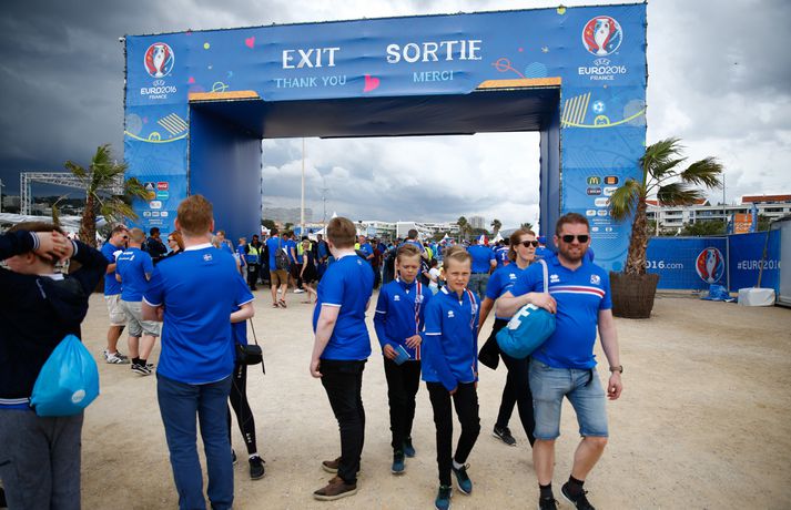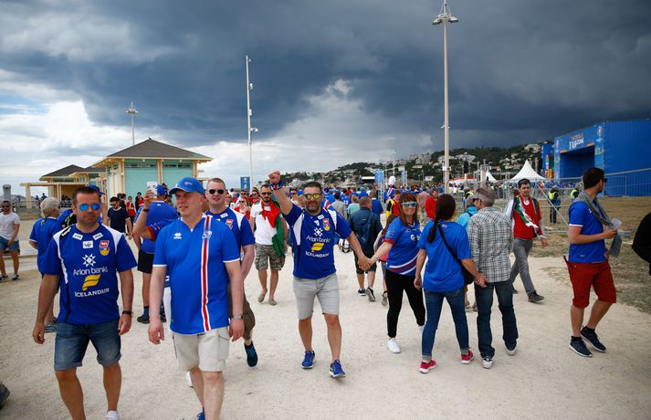 Þúsund Íslendinga hituðu upp fyrir Ungverjaleikinn á ströndinni Kolbeinn Tumi Daðason skrifar 19. júní 2016 11:47 Íslendingar fjölmenntu á stuðningsmannasvæðið í Marseille fyrir leikinn gegn Ungverjum. Vísir/Vilhelm Um níu þúsund Íslendingar hvöttu strákana okkar til dáða í baráttunni gegn Ungverjum á Stade Vélodrome í gær. Eins og alþjóð veit voru okkar menn nokkrum mínútum frá fræknum sigri en eru þó enn ósigraðir á EM eftir tvo leiki. Marseille var undirlögð íslenskum og ungverskum stuðningsmönnum fyrir leik. Stærstur hluti Íslendinga kom við á ströndinni þar sem stuðningsmannasvæðið í Marseille er staðsett. Veðrið hefur verið betra á suðurströnd Frakklands en nokkuð blés auk þess sem óveðursský létu sjá sig. Sem betur fer kom ekki til úrhellis og voru sumir Íslendingar berir að ofan og unnu í taninu. Vilhelm Gunnarsson, ljósmyndari Fréttablaðsins og Vísis, myndaði Íslendinga á stuðningsmannasvæðinu í gær. EM 2016 í Frakklandi Mest lesið Óskar Hrafn fer ekki fet Íslenski boltinn Hákon Rafn hélt hreinu þegar Brentford flaug áfram Enski boltinn Spánn og Þýskaland mætast í úrslitum Fótbolti Anguissa hetja meistaranna Fótbolti Martin öflugur í góðum sigri Körfubolti Verstappen telur sig ekki geta barist um titilinn Formúla 1 Leikið á Þróttaravelli á miðvikudag Fótbolti Jón Dagur gulltryggði sigurinn með sínu fyrsta marki Fótbolti Fær þrjár milljónir á dag næstu sex árin fyrir að gera ekkert Sport Vonast til að komast í Kórinn: „Menn hafa aldrei séð annað eins“ Fótbolti Fleiri fréttir Óskar Hrafn fer ekki fet Spánn og Þýskaland mætast í úrslitum Anguissa hetja meistaranna Hákon Rafn hélt hreinu þegar Brentford flaug áfram Jón Dagur gulltryggði sigurinn með sínu fyrsta marki Leikið á Þróttaravelli á miðvikudag Vinícius Júnior íhugar að yfirgefa Real Madríd Kaupir sér tveggja milljarða króna hús Alexander Máni með fimm mörk í tveimur leikjum og Ísland áfram Birnir frá Akureyri í Garðabæ Klobbaði íslensku strákana og fór á flug á netmiðlum Hættir með Fram Landsliðskonur aðstoðuðu ökumenn í vanda Landsleiknum aflýst og framhaldið óljóst Segir að Slot verði að taka tvo leikmenn út úr Liverpool-liðinu Vonast til að komast í Kórinn: „Menn hafa aldrei séð annað eins“ „Alltaf gaman að fá nýjar raddir inn“ Gleðifréttir fyrir Argentínumenn: Messi vill spila á HM Stöðufundur í Laugardal klukkan 10:30 Enska úrvalsdeildin í jólaköttinn Nýi íþróttastjóri Kjartans stal mörgæs og endaði í fangelsi í Singapúr Tyrkneska sambandið segir dómara hafa veðjað á þúsundir leikja Brendan Rodgers sagði starfinu sínu lausu eftir ásakanir Segir sitt fyrrum lið í krísu Fylltu í eyðurnar: Vanmetnasti leikmaður deildarinnar? Fyrirliði Real Madríd þarf að fara í aðgerð á hné Einkaviðtal við Carrick: „Hálfgerð tískubylgja sem einkennir fótboltann í dag“ Markaóður Stefán Ingi eftirsóttur Öllu búin skildi snjóspáin raungerast „Eitthvað sem við erum óvanar eftir Þjóðadeildina“ Sjá meira
