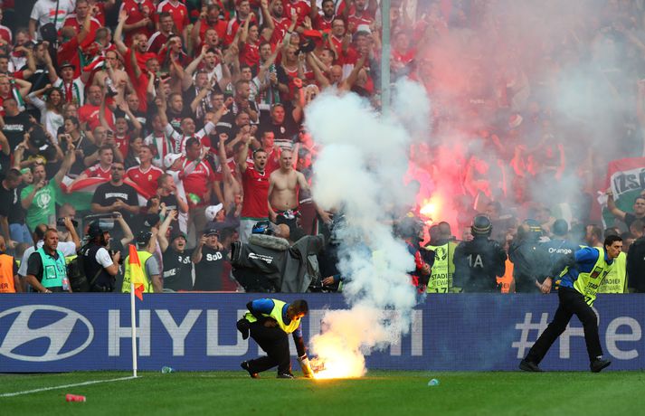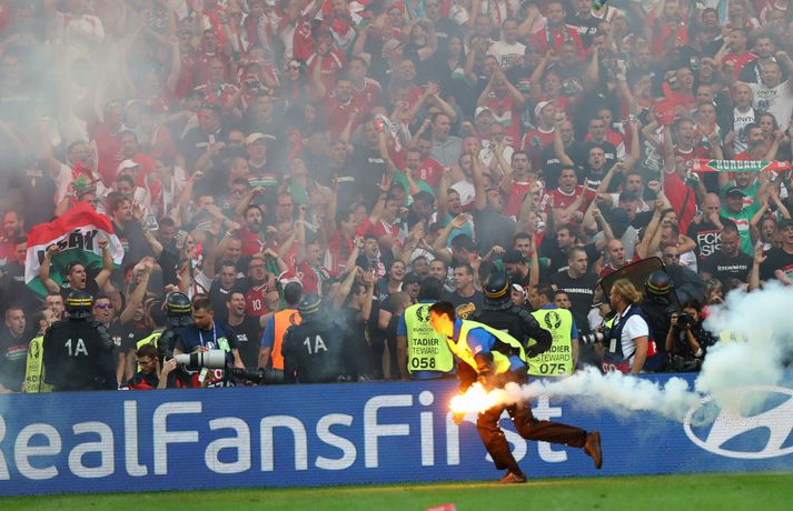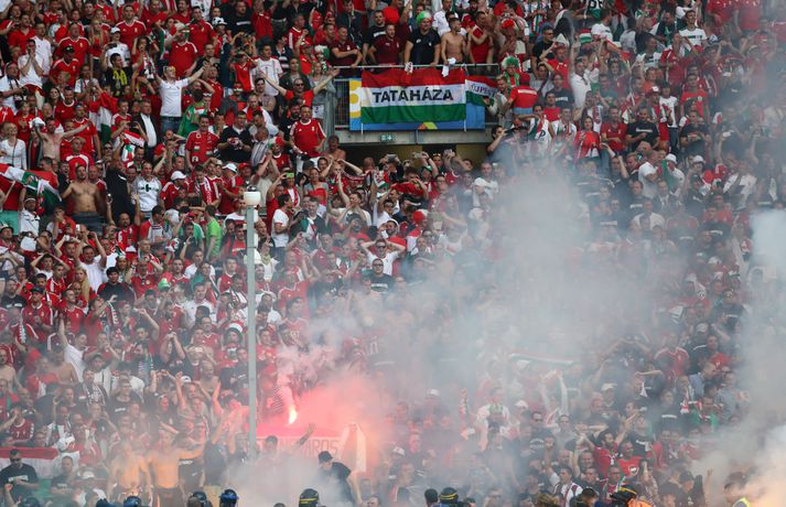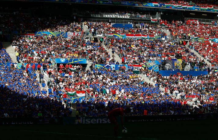 Ísland mátti sætta sig við grátlega niðurstöðu í leiknum gegn Ungverjalandi á EM í Frakklandi í dag. 1-1 jafntefli varð úr eftir að Ungverjar fengu jöfnunarmark í blálok leiksins. Gylfi Þór Sigurðsson hafði komið Íslandi yfir úr vítaspyrnu í fyrri hálfleik en Birkir Már Sævarsson varð fyrir því óláni að skora sjálfsmark í lok leiksins. Það voru níu þúsund Íslendingar á vellinum í kvöld og 21 þúsund Ungverjar. Stuðningsmenn beggja liða voru frábærir í kvöld - háværir frá fyrstu mínútu til þeirrar síðustu. Vilhelm Gunnarsson, ljósmyndari 365, var á Stade Vélodrome í kvöld og tók meðfylgjandi myndir.vísir/vilhelmVísir/Vilhelmvísir/vilhelm