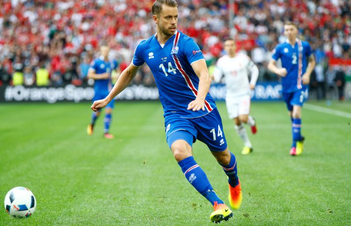 Heimir: Aron Einar fékk högg og stífnaði upp Aron Einar Gunnarsson, fyrirliði Íslands, stífnaði upp í leiknum gegn Ungverjum í dag og var það ástæðan fyrir því að Aron fór af velli á 66. mínútu í jafnteflinu í dag. 18. júní 2016 18:52