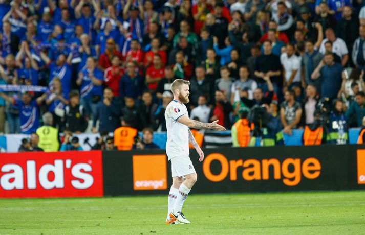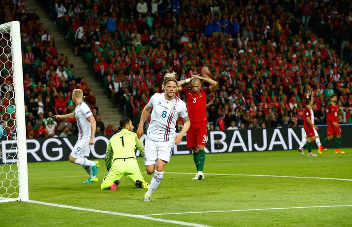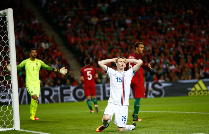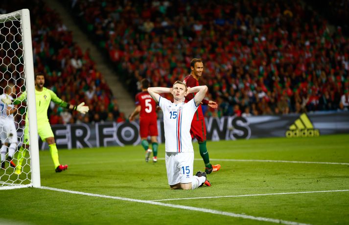 Strákarnir okkar stóðust prófið og gott betur eins og þessar myndir sanna Kolbeinn Tumi Daðason skrifar 14. júní 2016 22:39 Birkir og Gylfi fagna stiginu eins og átta þúsund Íslendingar í Saint-Étienne í kvöld. Vísir/Vilhelm Veistu ekki hvað gerðist í kvöld? Hvar varstu eiginlega? Ef þú misstir af sögulegu jafntefli íslenska karlalandsliðsins í fyrsta leiknum á stórmóti þá geturðu upplifað hann með myndum Vilhelms Gunnarssonar, ljósmyndara Fréttablaðsins og Vísis, frá því í kvöld. Vilhelm fangaði geggjuð augnablik úr leiknum, bæði það sem var að gerast á grasinu en einnig uppi í stúku. Myndirnar má sjá í flettiglugganum að ofan. EM 2016 í Frakklandi Tengdar fréttir Ronaldo skaut á okkar menn: Ísland mun ekki gera neitt á þessu móti Gerði lítið úr fagnaðarlátum íslensku leikmannanna í kvöld. 14. júní 2016 22:12 Umfjöllun: Portúgal - Ísland 1-1 | Sögulegt mark, sögulegt stig og söguleg stund í Saint-Étienne Birkir Bjarnason tryggði Íslandi 1-1 jafntefli í fyrsta leik okkar manna á EM, gegn sterku portúgölsku liði. Stundin þegar flautað var til leiksloka er ógleymanleg. 14. júní 2016 17:30 Íslendingar að farast úr spennu: „Óvinnufær fyrir leikinn í kvöld!“ Ari Eldjárn er mættur til Saint-Étienne eins og þúsundir Íslendinga. 14. júní 2016 10:43 Mest lesið Bíll Shaquille O'Neal enn ófundinn Körfubolti Fluttu fréttir af snjónum í Reykjavík Fótbolti Búið að finna leiðina til að pirra og vinna Liverpool Enski boltinn Epicbet sýni handboltann í leyfisleysi: „Enda ólöglegar síður“ Handbolti Formaðurinn hjálpaði til við að moka völlinn Fótbolti Óskar Hrafn fer ekki fet Íslenski boltinn Sú leikjahæsta leggur skóna á hilluna og klárar læknanámið Fótbolti Sýknaður í alvarlegu ofbeldismáli Fótbolti Var með skattinn á hælunum þegar hann fór í veðmálabraskið Körfubolti Barnabarn Donalds Trump keppir á LPGA-mótaröðinni Golf Fleiri fréttir Segja spurningar vakna um stöðu Elísabetar Litu á hann sem risaeðlu en sjáið hvað er í tísku núna Formaðurinn hjálpaði til við að moka völlinn Formenn sambandanna hjálpuðu við að moka völlinn Real Madrid mun ekki refsa Vinícius Júnior Fluttu fréttir af snjónum í Reykjavík Sýknaður í alvarlegu ofbeldismáli Búið að finna leiðina til að pirra og vinna Liverpool Sú leikjahæsta leggur skóna á hilluna og klárar læknanámið Stuðningsmaður RB Leipzig lést á bikarleiknum í gærkvöldi Arteta óttast ekki að keppinautarnir steli undrabarninu frá honum FH bíður með að tilkynna nýjan þjálfara Óskar Hrafn fer ekki fet Spánn og Þýskaland mætast í úrslitum Anguissa hetja meistaranna Hákon Rafn hélt hreinu þegar Brentford flaug áfram Jón Dagur gulltryggði sigurinn með sínu fyrsta marki Leikið á Þróttaravelli á miðvikudag Vinícius Júnior íhugar að yfirgefa Real Madríd Kaupir sér tveggja milljarða króna hús Alexander Máni með fimm mörk í tveimur leikjum og Ísland áfram Birnir frá Akureyri í Garðabæ Klobbaði íslensku strákana og fór á flug á netmiðlum Hættir með Fram Landsliðskonur aðstoðuðu ökumenn í vanda Landsleiknum aflýst og framhaldið óljóst Segir að Slot verði að taka tvo leikmenn út úr Liverpool-liðinu Vonast til að komast í Kórinn: „Menn hafa aldrei séð annað eins“ „Alltaf gaman að fá nýjar raddir inn“ Gleðifréttir fyrir Argentínumenn: Messi vill spila á HM Sjá meira