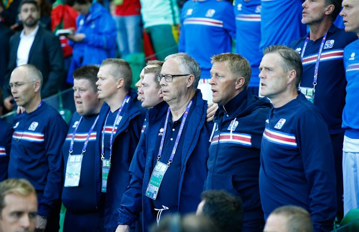Veistu ekki hvað gerðist í kvöld? Hvar varstu eiginlega? Ef þú misstir af sögulegu jafntefli íslenska karlalandsliðsins í fyrsta leiknum á stórmóti þá geturðu upplifað hann með myndum Vilhelms Gunnarssonar, ljósmyndara Fréttablaðsins og Vísis, frá því í kvöld. Vilhelm fangaði geggjuð augnablik úr leiknum, bæði það sem var að gerast á grasinu en einnig uppi í stúku. Myndirnar má sjá í flettiglugganum að ofan.