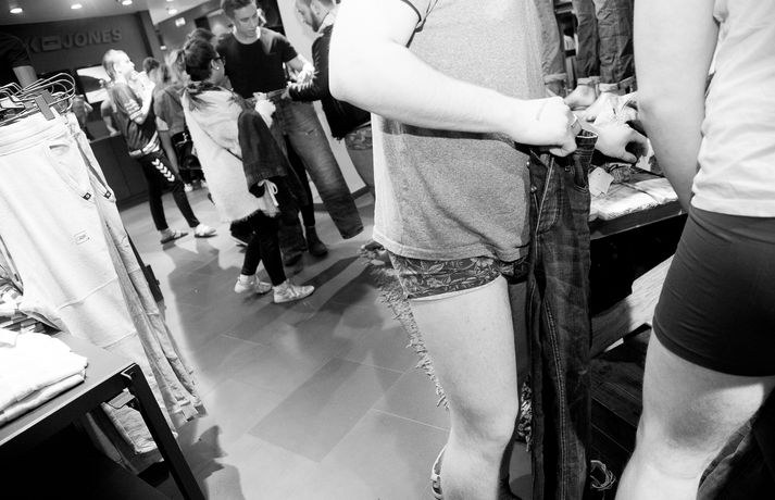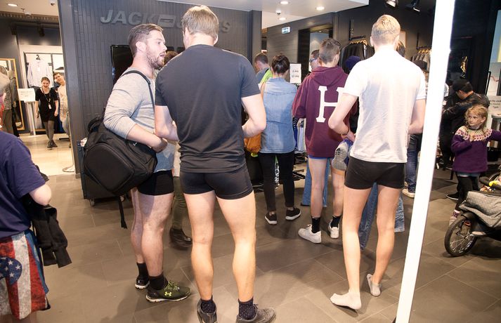 Yfir hundrað hressir strákar, stelpur og karlmenn á nærbuxunum mættu í Jack & Jones Kringlunni í þeim tilgangi að fá gallabuxur og glæsilegan kaupauka frá L´Oréal men föstudaginn 24. júní síðastliðinn. Það var fullt út úr dyrum og færri komust að en vildu. Fyrstu hundrað viðskiptavininrnir fengu gallabuxur á 2.000 krónur en skilyrðið var að mæta buxnalaus í verslunina í Kringlunni klukkan 17:00. Myndir frá þessum stórskemmtilega degi má sjá hér fyrir ofan og myndband fyrir neðan.Þessir hikuðu ekki við að taka þátt í gleðinni.Dj Atli var á staðnum og hélt uppi stuðinu og var Pepsí í boði fyrir gesti og gangandi. Það myndaðist myndarleg biðröð fyrir framan verslunina um klukkan 16:30 en engum var hleypt inn fyrr en á slaginu 17:00 og stóðu því strákarnir á nærbuxunum fyrir utan verslunina, sumir hverjir í 30 mínútur. Buxurnar voru fjlótar að rjúka út enda ekki leiðinlegt að fá flottar gallabuxur að eigin vali frá Jack & Jones, Deo Spray frá L´Oréal og sokka frá Jack & Jones fyrir 2000 krónur. Stemningin var meiriháttar og viðskiptavinirnir almennt mjög ánægðir með þetta uppátæki enda á Jack & Jones dyggan viðskiptavinahóp þegar kemur að gallabuxum enda er verslunin búin að vera leiðandi í sölu á gallabuxum hér á landi í mörg ár. Nú bíðum við spennt eftir næsta uppátæki verslunarinnar og ekki ólíklegt að það verði stutt þar starfsfólk Jack & Jones bregði á leik með viðskiptavinum á ný.