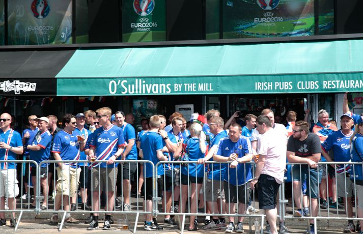 Íslendingar streyma á O´Sullivans Barinn er risastór og stórt svæði sömuleiðis fyrir utan 22. júní 2016 10:05