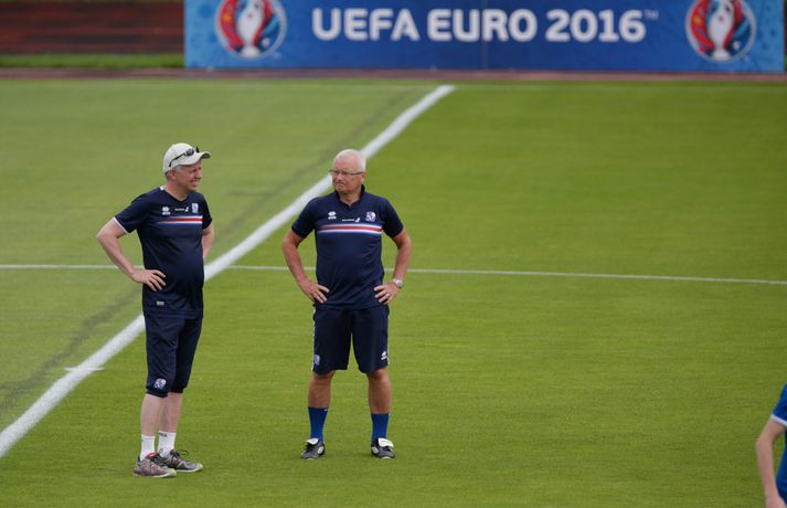 Strákarnir okkar æfðu á ný eftir kærkominn hvíldardag | Myndasyrpa Kolbeinn Tumi Daðason skrifar 30. júní 2016 12:30 Heimir og Lars ræddu við hópinn í upphafi æfingarinnar í hádeginu. Vísir/Vilhelm Strákarnir okkar komu aftur saman til æfinga á æfingavellinum í Annecy í dag eftir að hafa slakað á í gær. Þjálfararnir töldu mikilvægt að gefa leikmönnum smá andrými eftir samveruna og álagið undanfarið. Birkir Bjarnason, Kári Árnason og Ragnar Sigurðsson ræddu við blaðamenn eins og Heimir Hallgrímsson landsliðsþjálfari fyrir æfinguna. Mikill fjöldi fjölmiðlamanna fylgdist með fyrstu fimmtán mínútunum áður en skellt var í lás. Vilhelm Gunnarsson, ljósmyndari Fréttablaðsins og Vísis, myndaði opna hluta æfingarinnar í bak og fyrir. EM 2016 í Frakklandi Mest lesið Vonast til að komast í Kórinn: „Menn hafa aldrei séð annað eins“ Fótbolti Fær þrjár milljónir á dag næstu sex árin fyrir að gera ekkert Sport Landsleiknum aflýst og framhaldið óljóst Fótbolti Stöðufundur í Laugardal klukkan 10:30 Fótbolti Enska úrvalsdeildin í jólaköttinn Enski boltinn Elsta konan til klára Járnkarlinn Sport Markvörður Inter banaði háöldruðum manni í hjólastól Sport Nýi íþróttastjóri Kjartans stal mörgæs og endaði í fangelsi í Singapúr Fótbolti Segir að Slot verði að taka tvo leikmenn út úr Liverpool-liðinu Enski boltinn Brendan Rodgers sagði starfinu sínu lausu eftir ásakanir Fótbolti Fleiri fréttir Landsleiknum aflýst og framhaldið óljóst Segir að Slot verði að taka tvo leikmenn út úr Liverpool-liðinu Vonast til að komast í Kórinn: „Menn hafa aldrei séð annað eins“ „Alltaf gaman að fá nýjar raddir inn“ Gleðifréttir fyrir Argentínumenn: Messi vill spila á HM Stöðufundur í Laugardal klukkan 10:30 Enska úrvalsdeildin í jólaköttinn Nýi íþróttastjóri Kjartans stal mörgæs og endaði í fangelsi í Singapúr Tyrkneska sambandið segir dómara hafa veðjað á þúsundir leikja Brendan Rodgers sagði starfinu sínu lausu eftir ásakanir Segir sitt fyrrum lið í krísu Fylltu í eyðurnar: Vanmetnasti leikmaður deildarinnar? Fyrirliði Real Madríd þarf að fara í aðgerð á hné Einkaviðtal við Carrick: „Hálfgerð tískubylgja sem einkennir fótboltann í dag“ Markaóður Stefán Ingi eftirsóttur Öllu búin skildi snjóspáin raungerast „Eitthvað sem við erum óvanar eftir Þjóðadeildina“ Heimir kynntur til leiks í Árbænum Danir heiðra Michael Laudrup De Bruyne verður lengi frá Túfa rekinn frá Val Fyrrum markmannsþjálfari Liverpool látinn Juventus rak þjálfarann eftir aðeins sjö mánuði „Mikilvægt fyrir hópinn að fá þessa sigurtilfinningu“ Besta liðið aðeins í sautjánda sæti í mörkum í opnum leik „Varnarleikurinn er bara stórslys“ Blaðamannafundur KSÍ: Þorsteinn og Glódís sátu fyrir svörum Guardiola: Of snemmt til að hafa áhyggjur af Arsenal Kennir Carvajal um lætin eftir El Clasico Setja fjórtán milljarða í kvennadeildina Sjá meira