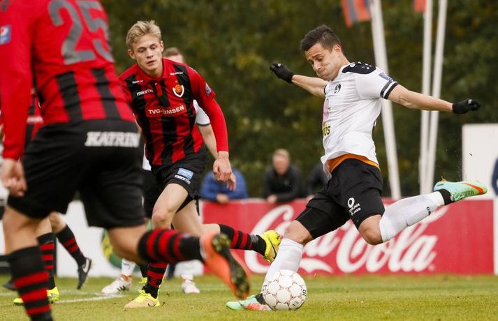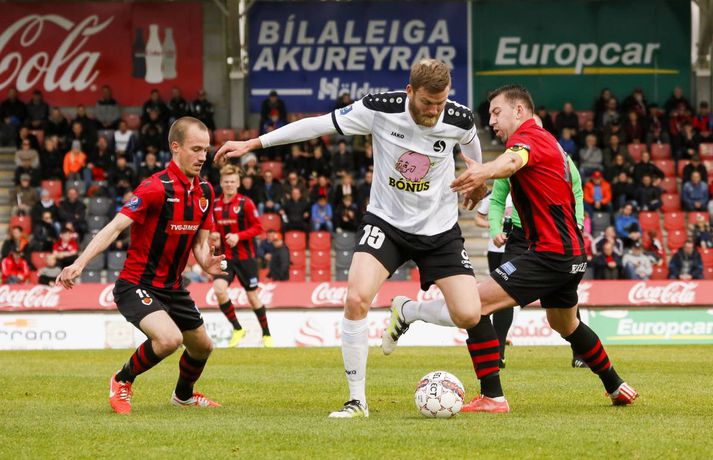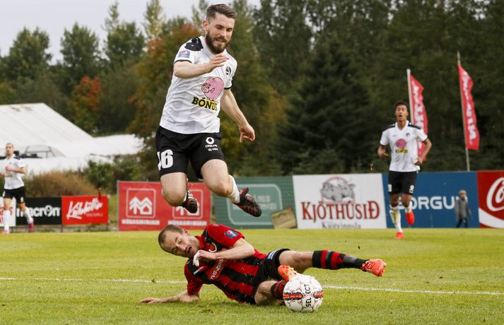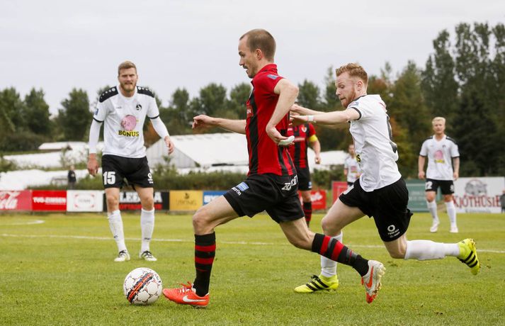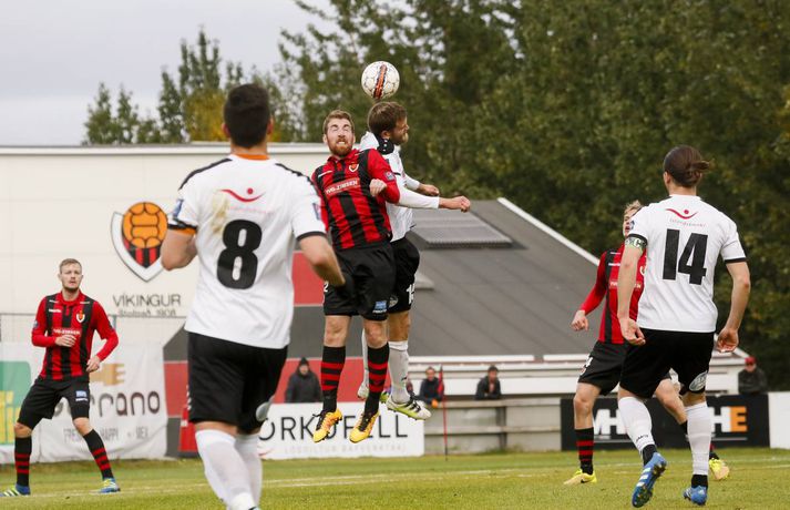 Víkingur R. og Fylkir skildu jöfn, 2-2, í 20. umferð Pepsi-deildar karla á Víkingsvelli í dag.Eyþór Árnason, ljósmyndari Fréttablaðsins og Vísis, var í Víkinni í dag og tók meðfylgjandi myndir. Fylkismenn eru enn í fallsæti en eru nú með jafn mörg stig og ÍBV sem er í 10. sæti. Víkingar sigla hins vegar lygnan sjó fyrir neðan miðja deild. Vladimir Tufegdzic kom heimamönnum yfir á 9. mínútu en Garðar Jóhannsson jafnaði metin eftir 22 mínútur. Oddur Ingi Guðmundsson kom Fylki yfir á 72. mínútu en Josip Fucek tryggði Víkingum stig þegar hann jafnaði metin í 2-2 sjö mínútum fyrir leikslok.Af hverju varð jafntefli?Jafntefli eru líklega nokkuð sanngjörn úrslit úr leiknum í dag þó Fylkismenn nagi sig eflaust í handarbökin fyrir að hafa ekki endað uppi með stigin þrjú. Í kjölfar þess að Víkingar komust yfir voru þeir sterkari aðilinn en eftir jöfnunarmark Fylkis komust gestirnir betur og betur inn í leikinn. Í síðari hálfleiknum voru Fylkismenn svo sterkari. Það var fyllilega sanngjarnt þegar þeir komust yfir og í kjölfarið hefðu þeir líklegast átt að vera klókari í sínum leik. Þeir fengu á sig jöfnunarmark eftir skyndisókn Víkinga og voru þar illa staðsettir í sínum varnarleik. Það hefur svolítið verið saga Fylkismanna að fá á sig mörk í lok leikjanna og þó svo að Hermann Hreiðarsson þjálfari liðsins hafi sagt að markið í dag hafi komið snemma miðað við oft áður þá verða Fylkismenn að klára leikina betur en þeir gera. Þeir hefðu svo getað stolið sigrinum í lokin en fóru illa með dauðafæri á síðustu sekúndunum.Þessir stóðu upp úr:Hjá Fylki átti Jose Sito Seoane mjög góðan leik og var síógnandi í sóknarleiknum. Sító hefur átt erfitt uppdráttar í sumar en hefur verið að spila betur og betur eftir því sem liðið hefur á tímabilið. Í dag var hann flottur og átti þátt í báðum mörkum gestanna. Albert Brynjar var duglegur og þá kom Oddur Ingi sterkur inn af bekknum. Ívar Örn Jónsson var sterkur hjá Víkingum og Vladimir Tufegdzig sömuleiðis, hann með mark og stoðsendingu. Óttar Magnús hefur oft spilað betur en sýndi þó takta inn á milli.Hvað gekk illa?Fylkismönnum gekk illa að skapa sér færi úr þeim góðu stöðum sem þeir komu sér oft í og það sama má segja um Víkinga. Fyrri hálfleikur var sérstaklega hraður en oft á tíðum vantaði upp á gæðin á síðasta þriðjungi vallarins. Víkingum gekk illa í skallaboltunum í vörninni og Færeyingurinn Sonni Nattestad stríddi þeim oft á tíðum og var ógnandi í föstum leikatriðum. Erlendi Eiríkssyni dómara gekk sömuleiðis illa að finna línuna sína í leiknum og miðað við þau brot sem hann spjaldaði fyrir í fyrri hálfleik hefði hann getað gefið áðurnefndum Sonni rautt spjald undir lokin fyrir groddaralega tæklingu á miðjum vellinum. Erlendur missti leikinn svolítið úr höndunum og hefur oft dæmt betur.Hvað gerist næst?Fylkismenn eiga tvo gríðarlega mikilvæga leiki eftir. Í næstu umferð taka þeir á móti botnliði Þróttar á heimavelli og þar verða þeir einfaldlega að vinna ætli þeir sér ekki að falla í 1.deild. Í síðustu umferðinni eiga þeir útileik við KR sem er komið í bullandi baráttu um Evrópusæti og það verður síður en svo auðveldur leikur. Víkingar hafa ekki að miklu að keppa. Þeir sitja í 8.sætinu og fara ekki neðar en það en geta mest unnið sig upp í 6.sæti Pepsi-deildarinnar. Víkingar eiga hins vegar eftir leiki gegn FH og Þrótti og geta því haft áhrif á stöðuna bæði á toppi og botni. Hermann: Klaufalegur varnarleikur hjá okkurHermann Hreiðarsson, þjálfari Fylkis.vísir/ernirHermann Hreiðarsson þjálfari Fylkis var líflegur á hliðarlínunni í kvöld að vanda. Hann sagðist vera svekktur með jafnteflið gegn Víkingum enda fengu hans menn á sig jöfnunarmark þegar skammt var til leiksloka. „Jú, ég er svekktur. Við fengum dauðafæri í lokin sem hefði verið gaman að nýta svona einu sinni. En stig, það gerir eitthvað,“ sagði Hermann í samtali við Vísi eftir leik. Fylkismenn hafa misst forystu á lokamínútum leikja áður í sumar og það eflaust orðið ansi þreytandi saga í þeirra herbúðum. „Þetta var nú tiltölulega snemma miðað við það sem hefur verið að gerast. En við héldum áfram en þetta er algjört einbeitingarleysi í jöfnunarmarkinu. Agalega klaufalegur varnarleikur hjá okkur. „Þetta er galopið en ekki alveg í okkar höndum. Eina sem við getum gert er að taka stig, við verðum að taka stig. Eitt stig er betra en ekkert en við komum klárlega hingað til að sækja þrjú. Í fyrri hálfleik fannst mér við klaufar þegar við komum okkur í frábærar stöður en nýttum ekki sénsinn að koma okkur í dauðafæri. Við hefðum átt að refsa þeim betur,“ bætti Hermann við. Fylkir er enn í fallsæti eftir leikinn í dag en hafa jafnað ÍBV að stigum. Fylkir mætir Þrótturum í næstu umferð í algjörum lykilleik í fallbaráttunni. „Ef við ætlum að halda okkur uppi þá verðum við að vinna þar, það er alveg ljóst,“ sagði Hermann að lokum. Milos: Viljið þið ekki sjá smá slagsmál?Milos Milojevic er þjálfari Víkinga.vísir/antonMilos Milojevic þjálfari Víkinga sagði að sitt lið hefði stjórnað leiknum að stórum hluta gegn Fylki í dag. Hans menn jöfnuðu undir lokin og sigla lygnan sjó í Pepsi-deildinni þegar tvær umferðir eru eftir. „Úr því sem komið var er þetta sanngjarnt. Engu að síður fannst mér við betri aðilinn í leiknum og vorum að stjórna spilinu frá A-Ö. Við áttum að gera út um leikinn þegar við komumst yfir, þá voru þeir aldrei líklegir,“ sagði Milos í samtali við Vísi í leikslok. „Markið þegar þeir komast yfir er ekki ósvipað þeim sem við höfum verið að 
