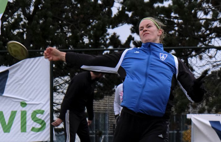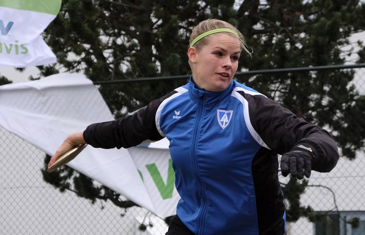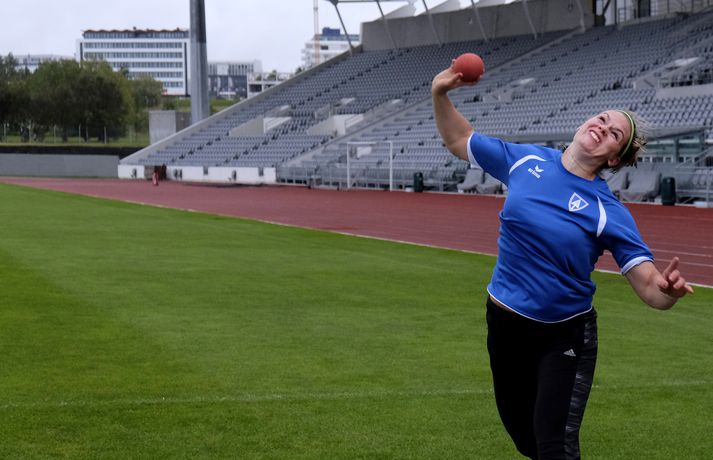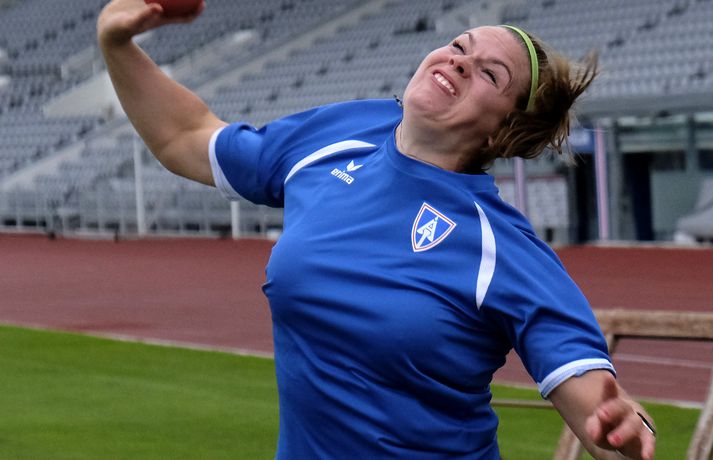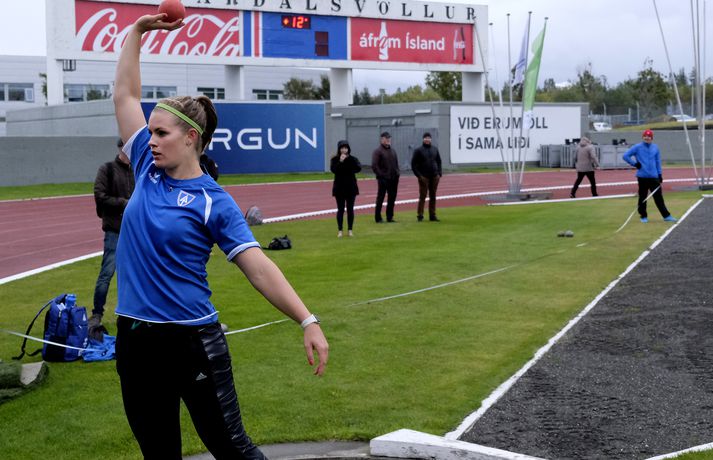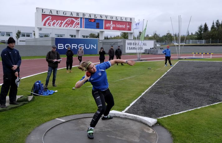 Ásdís Hjálmsdóttir, Íslandsmeistarinn í spjótkasti, freistaði þess nú rétt áðan að bæta tvö Íslandsmet, í kúluvarpi og kringlukasti.Anton Brink, ljósmyndari Fréttablaðsins og Vísis, var í Laugardalnum og tók meðfylgjandi myndir. Metið í kúluvarpi er í eigu Guðbjargar Helgu Gylfadóttur en hún kastaði 16,33 metra árið 1992. Ásdís kastaði lengst 16,06 metra í síðustu umferð og vantaði 27 sentimetra til að bæta met Guðbjargar Hönnu. Ásdís reyndi einnig við Íslandsmetið í kringlukasti. Guðrún Ingólfsdóttir á metið en hún kastaði 53,86 metra fyrir 34 árum. Ásdís kastaði lengst 45,30 metra í fyrsta kasti við erfiðar aðstæður í Laugardalnum og var talsvert frá því að bæta metið. Ásdís reynir aftur við þessi gömlu met í Kaplakrika á morgun.Hér að neðan má sjá viðtal sem Arnar Björnsson tók við Ásdísi í Laugardalnum í dag.vísir/anton