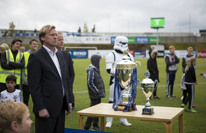 FH fékk bikarinn í Krikanum | Myndir Eiríkur Stefán Ásgeirsson skrifar 1. október 2016 16:37 Davíð Þór Viðarsson, fyrirliði FH, lyftir bikarnum í dag. Vísir/Ernir FH fékk Íslandsmeistarbikarinn afhendan eftir 1-1 jafntefli liðsins gegn ÍBV í lokaumferð Pepsi-deildar karla í dag. Þetta er í áttunda sinn á undanförnum tólf árum sem að FH verður Íslandsmeistari en Heimir Guðjónsson, þjálfari FH, hefur tekið þátt í öllum titlunum. Fyrst sem leikmaður, svo aðstoðarþjálfari og loks aðalþjálfari.Sjá einnig:Umfjöllun, viðtöl og einkunnir: FH - ÍBV 1-1 | Eyjamenn hólpnir eftir jafntefli í Krikanum Heimir skrifaði nýverið undir nýjan tveggja ára samning við FH. Ernir Eyjólfsson, ljósmyndari 365, var á vellinum í dag og tók þessar myndir. Umfjöllun, viðtöl og einkunnir: FH - ÍBV 1-1 | Eyjamenn hólpnir eftir jafntefli í KrikanumVísir/EyþórVísir/Eyþórvísir/eyþórvísir/anton Pepsi Max-deild karla Tengdar fréttir Svona var lokaumferðin í Pepsi-deild karla Stjarnan og KR tryggðu sér þátttökurétt í Evrópukeppni en Fylkir féll eftir sextán ára veru í efstu deild. 1. október 2016 16:00 Kristinn bestur og Óttar efnilegastur Kristinn Freyr Sigurðsson, leikmaður Vals, var valinn besti leikmaður Pepsi-deildar karla af leikmönnum. 1. október 2016 16:20 Gunnar Jarl besti dómarinn Var valinn besti dómari Pepsi-deildar karla af leikmönnum deildarinnar. 1. október 2016 14:14 Garðar fékk gullskóinn Hvorki hann né Kristinn Freyr Sigurðsson skoruðu fyrir lið sín í dag. Hrvoje Tokic skaust upp í þriðja sæti markalistans. 1. október 2016 16:02 Mest lesið Vonast til að komast í Kórinn: „Menn hafa aldrei séð annað eins“ Fótbolti Landsleiknum aflýst og framhaldið óljóst Fótbolti Fær þrjár milljónir á dag næstu sex árin fyrir að gera ekkert Sport Stöðufundur í Laugardal klukkan 10:30 Fótbolti Enska úrvalsdeildin í jólaköttinn Enski boltinn Elsta konan til klára Járnkarlinn Sport Markvörður Inter banaði háöldruðum manni í hjólastól Sport Segir að Slot verði að taka tvo leikmenn út úr Liverpool-liðinu Enski boltinn Landsliðskonur aðstoðuðu ökumenn í vanda Fótbolti Nýi íþróttastjóri Kjartans stal mörgæs og endaði í fangelsi í Singapúr Fótbolti Fleiri fréttir Birnir frá Akureyri í Garðabæ Hættir með Fram Heimir kynntur til leiks í Árbænum Túfa rekinn frá Val Leyndarmáli ljóstrað upp þegar Heimir og Björn kvöddu Leikmenn kusu Patrick og Guðmund Sjáðu bananabombu Antons Loga og önnur síðustu mörk tímabilsins Uppgjörið: Stjarnan - Breiðablik 2-3 | Stjarnan í Evrópu þrátt fyrir tap „Held að ég geti ekki gert mikið meira“ Uppgjörið: Vestri - KR 1-5 | KR bjargaði sér og sendi Vestra í Lengjudeildina Uppgjörið: ÍA - Afturelding 1-0 | Afturelding staldraði stutt við í efstu deild Uppgjörið: Víkingur - Valur 2-0 | Meistararnir klára tímabilið með stæl Uppgjörið: ÍBV - KA 3-4 | KA tryggði sér Forsetabikarinn þriðja árið í röð Ráðast örlög Aftureldingar inni í höll? „Þetta verður bara veisla fyrir vestan“ Vestri og KR mætast á fyrsta degi vetrar: „Vona að það snjói ekki í nótt“ Lárus Orri framlengir á Skaganum „Kominn tími á sigur í Sambandsdeildinni“ Tekur við af læriföður sínum Snjó kyngir niður á Akureyri og Evrópuleikur færður inn „Veistu hvað leikmaðurinn sagði við mig?“ „Ég þarf bara að láta verkin tala“ Valur og Sigurður Egill senda frá sér sameiginlega yfirlýsingu Hemmi Hreiðars orðaður við Val Katrín kvödd með fallegum hætti: „Ég hef aldrei séð þetta áður“ Sjáðu þrumufleyg Fred og snöggt svar Stjörnunnar Enginn þjálfari hefur bæði byrjað og klárað Sambandsdeildina Stúkan birti skilaboðin: „Mér finnst þetta ömurlegt“ Uppgjörið: Fram-Stjarnan 1-1 | Úrslitaleikur um Evrópusæti um næstu helgi Sigurður Egill svarar yfirlýsingu Vals: Ómakleg og lágkúruleg setning Sjá meira