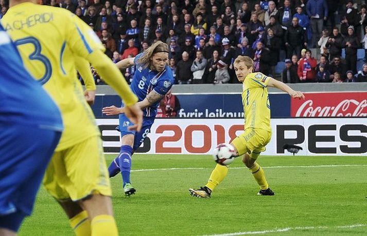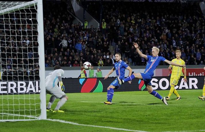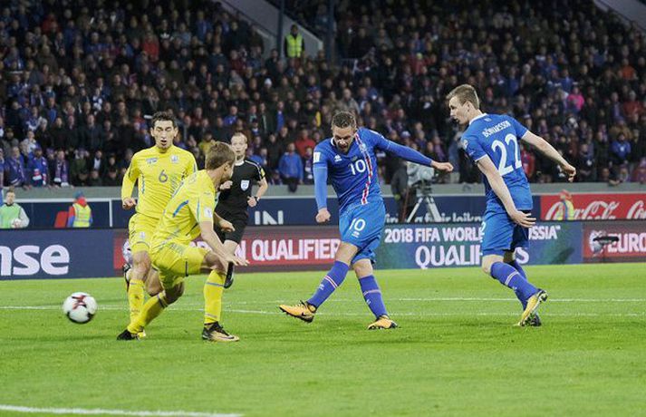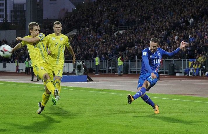 Gylfi búinn að jafna við Ríkharð Gylfi Þór Sigurðsson skoraði bæði mörk Íslands í 2-0 sigri á Úkraínu í undankeppni HM í kvöld. 5. september 2017 20:40