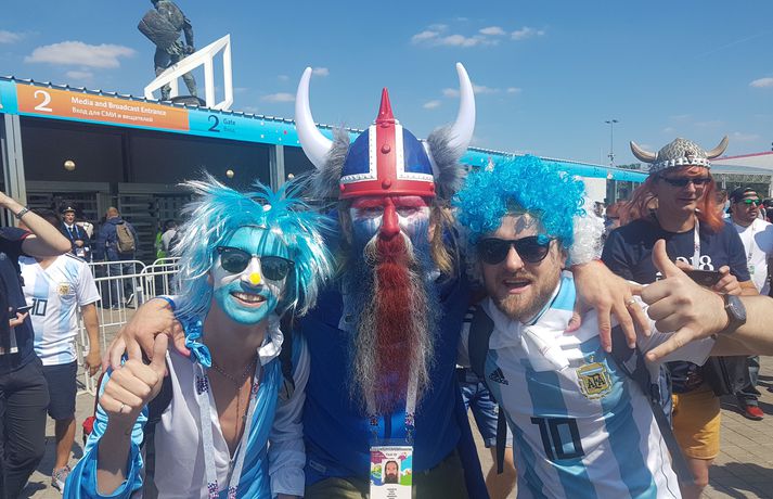 Stemningin fyrir utan Spartak-völlinn í Moskvu þar sem að styttist í leik Íslendinga og Argentínumanna er alveg mögnuð en stuðningsmenn beggja liða eru í miklu stuði. Argentínumenn eru mun fjölmennari og voru nokkur hundruð þeirra mætt fyrir utan völlinn strax í morgun. Íslendingarnir fóru að mæta eftir Íslendingaveisluna í miðborg Moskvu og þá fór að færast fjör í leika. Vilhelm Gunnarsson, ljósmyndari Vísis, er á vappinu fyrir utan völlinn og fangaði stemninguna eins og sjá má í syrpunni hér að neðan.Fylgstu með beinni textalýsingu Vísis þar sem upphitun er löngu hafin.