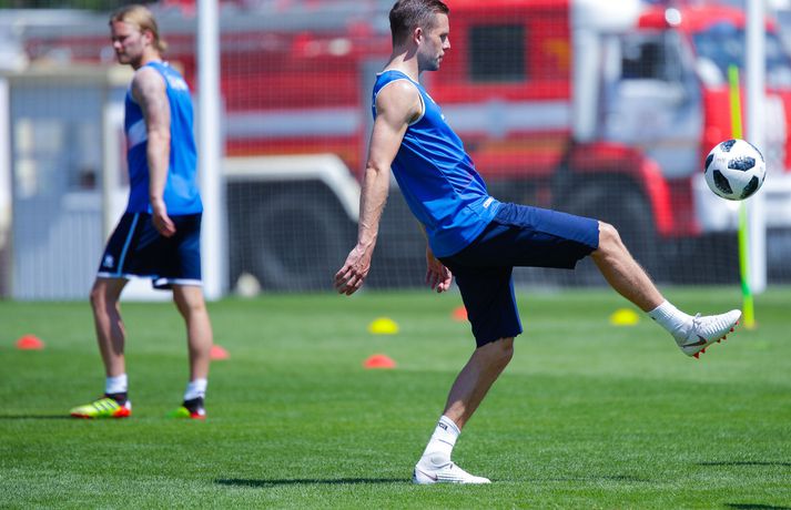 Hitastigið náði nýjum hæðum í Kabardinka í dag en það var um 30 stiga hiti er strákarnir mættu á æfingu í morgun. Þeir fara svo í aðeins svalara loftslag á eftir er þeir lenda í Moskvu. Það er þó í kringum 20 stiga hiti í höfuðborginni. Vilhelm Gunnarsson mundaði myndavélina á lokaæfingunni í Kabardinka í bili. Hingað koma þeir þó aftur eftir leikinn gegn Argentínu.Vísir er með öflugt teymi í Rússlandi sem verður með ítarlegan fréttaflutning af íslenska liðinu á HM. Fylgist með á samfélagsmiðlum okkar - á Facebook, Twitter og Instagram.
