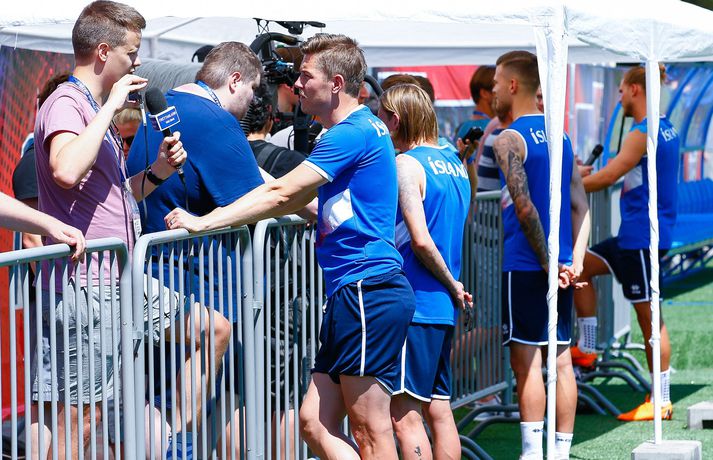 HM 2018 í Rússlandi Tengdar fréttir Betra andrúmsloft án Zlatan Það var frídagur hjá íslenska landsliðinu í gær og því nýttu flestir fjölmiðlar daginn til þess að heimsækja æfingasvæði sænska landsliðsins. 14. júní 2018 12:30 Arnór Ingvi er með mömmu og pabba á handleggnum Arnór Ingvi Traustason skartar ansi voldugu húðflúri á vinstri handleggnum. Þar er meðal annars fjölskyldumynd af honum með foreldrum sínum. 14. júní 2018 13:15 Ari Freyr: Vill ljúka tíu ára eyðimerkurgöngu með skoti í Samúel 56 landsleikir en ekkert mark. 14. júní 2018 11:30 HM í dag: Allir vildu fá eiginhandaráritun frá Bödda Hitinn í Kabardinka í dag er óbærilegur og það voru ansi sveittir menn að taka upp HM í dag þennan morguninn. 14. júní 2018 09:00 Mest lesið Vonast til að komast í Kórinn: „Menn hafa aldrei séð annað eins“ Fótbolti Fær þrjár milljónir á dag næstu sex árin fyrir að gera ekkert Sport Stöðufundur í Laugardal klukkan 10:30 Fótbolti Enska úrvalsdeildin í jólaköttinn Enski boltinn Elsta konan til klára Járnkarlinn Sport Markvörður Inter banaði háöldruðum manni í hjólastól Sport Nýi íþróttastjóri Kjartans stal mörgæs og endaði í fangelsi í Singapúr Fótbolti Brendan Rodgers sagði starfinu sínu lausu eftir ásakanir Fótbolti Tyrkneska sambandið segir dómara hafa veðjað á þúsundir leikja Fótbolti Einkaviðtal við Carrick: „Hálfgerð tískubylgja sem einkennir fótboltann í dag“ Enski boltinn Fleiri fréttir Landsleiknum aflýst og framhaldið óljóst Segir að Slot verði að taka tvo leikmenn út úr Liverpool-liðinu Vonast til að komast í Kórinn: „Menn hafa aldrei séð annað eins“ „Alltaf gaman að fá nýjar raddir inn“ Gleðifréttir fyrir Argentínumenn: Messi vill spila á HM Stöðufundur í Laugardal klukkan 10:30 Enska úrvalsdeildin í jólaköttinn Nýi íþróttastjóri Kjartans stal mörgæs og endaði í fangelsi í Singapúr Tyrkneska sambandið segir dómara hafa veðjað á þúsundir leikja Brendan Rodgers sagði starfinu sínu lausu eftir ásakanir Segir sitt fyrrum lið í krísu Fylltu í eyðurnar: Vanmetnasti leikmaður deildarinnar? Fyrirliði Real Madríd þarf að fara í aðgerð á hné Einkaviðtal við Carrick: „Hálfgerð tískubylgja sem einkennir fótboltann í dag“ Markaóður Stefán Ingi eftirsóttur Öllu búin skildi snjóspáin raungerast „Eitthvað sem við erum óvanar eftir Þjóðadeildina“ Heimir kynntur til leiks í Árbænum Danir heiðra Michael Laudrup De Bruyne verður lengi frá Túfa rekinn frá Val Fyrrum markmannsþjálfari Liverpool látinn Juventus rak þjálfarann eftir aðeins sjö mánuði „Mikilvægt fyrir hópinn að fá þessa sigurtilfinningu“ Besta liðið aðeins í sautjánda sæti í mörkum í opnum leik „Varnarleikurinn er bara stórslys“ Blaðamannafundur KSÍ: Þorsteinn og Glódís sátu fyrir svörum Guardiola: Of snemmt til að hafa áhyggjur af Arsenal Kennir Carvajal um lætin eftir El Clasico Setja fjórtán milljarða í kvennadeildina Sjá meira