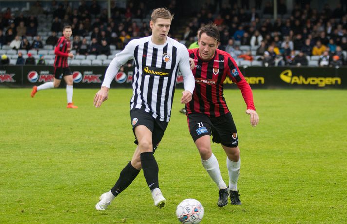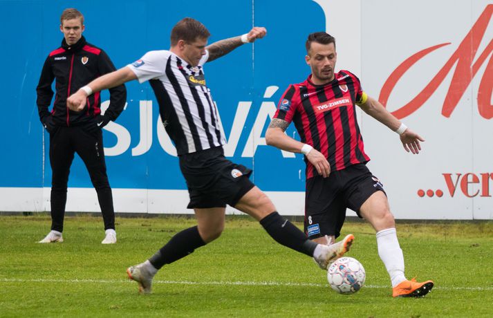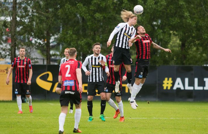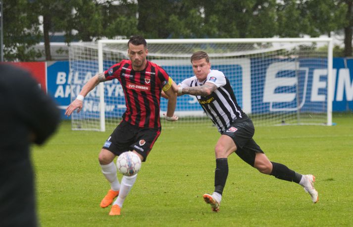Umfjöllun, viðtöl, einkunnir og myndir: KR 0-1 Víkingur | Bjarni Páll hetja Víkinga í mikilvægum sigri Ástrós Ýr Eggertsdóttir skrifar 1. júlí 2018 22:00 Úr leiknum. vísir/bára Víkingur vann gríðarlega mikilvægan útisigur á KR í Vesturbænum í 11. umferð Pepsi deildar karla í fótbolta í kvöld. Bjarni Páll Runólfsson skoraði eina mark leiksins snemma í seinni hálfleik. Víkingar byrjuðu leikinn á að gera sig líklega fyrir framan KR markið en náðu ekki að skapa sér opið færi. Eftir það var fyrri hálfleikurinn nánast eign KR og Víkingar komust sjaldan í almennilegar stöður sóknarlega. Markvörður Víkinga, Daninn Andreas Larsen, var algjörlega frábær í fyrri hálfleiknum og varði eins og enginn væri morgundagurinn. Það var í raun ótrúlegt að KR hafi ekki náð að koma boltanum í marknetið svo oft voru þeir í dauðafærum á að skora. Markið kom þó ekki og markalaust þegar liðin gengu til hálfleiks. Sigurður Hjörtur Þrastarsson hafði varla flautað seinni hálfleikinn á þegar Bjarni Páll Linnet Runólfsson skilaði boltanum í markið og kom Víking yfir. Nær fullkomin eftirlíking af byrjun fyrri hálfleiks nema í þetta skiptið náðu Víkingar að skapa sér marktækifæri og þeir nýttu það. Eftir markið gátu Víkingar einbeitt sér að því að þétta raðirnar og þeir gerðu vel í að verjast aðgerðum KR. Heimamenn sköpuðu sér ekki nærri því eins mikið af opnum marktækifærum í seinni hálfleiknum og ógnuðu jöfnunarmarkinu ekkert sérstaklega. Undir lokin settu þeir aðeins meiri pressu á Víkinga en uppskáru ekki, 1-0 sigur Víkings lokatölur.Af hverju vann Víkingur? Þeir nýttu eitt af örfáum marktækifærunum sem þeir fengu á meðan KR misnotaði sín færi ítrekað. Það er í stuttu máli það sem réði úrslitunum. Það að ná inn markinu svona snemma í seinni hálfeik, sérstaklega eftir öll stórhættulegu færin sem KR fékk í þeim fyrri, gerði mikið fyrir Víkinga sem gátu einbeitt sér að varnarleiknum og þar eru þeir með mjög góða pósta sem réðu við nær allt sem KR-ingar reyndu.Hverjir stóðu upp úr? Maður leiksins er markmaðurinn Andreas Larsen án nokkurs vafa. Ef ekki hefði verið fyrir hann þá hefði KR unnið þennan leik með þremur eða fjórum mörkum. Miðverðirnir Halldór Smári Sigurðsson og Sölvi Geir Ottesen voru einnig mjög góðir. Hjá KR var það helst Björgvin Stefánsson sem gekk hvað best fram á við, félagar hans í sóknarlínunni voru nokkuð mistækir.Hvað gekk illa? Færanýting KR og ákvarðanatökur í sóknarleiknum urðu þeim að falli. Í seinni hálfeik gekk þeim svo illa að opna vörn Víkings.Hvað gerist næst? Stutt í næstu umferð, hún er leikin á fimmtudaginn. Þá byrjar seinni umferðin, þó enn eigi eftir að leika nokkra leiki úr 10. umferð, og KR-ingar fá Valsmenn á Alvogenvöllinn í stórleik þar sem þeir hafa harma að hefna eftir sigurmark í uppbótartíma á Hlíðarenda í apríl. Víkingur sækir Fylki heim í Egilshöllina.Bára Dröfn, ljósmyndari Vísis, var á Alvogenvellinum í kvöld og tók myndirnar með fréttinni.vísr/báraLogi: Nauðsynlegt að ná þessum sigri „Við vorum ósáttir við sjálfa okkur í leiknum á móti FH og fengum hálfan mánuð til þess að vinna í hlutunum og nýttum þær tvær vikur vel. Þegar við náum að halda markinu hreinu og nýta færin okkar þá er alltaf von á sigri,“ sagði nokkuð ánægður Logi Ólafsson, þjálfari Víkings, eftir leikinn. „Þeir voru auðvitað meira með boltann og KR er með feykilega gott lið, vel spilandi menn sem eru sterkir einn á móti einum og fljótir að finna sér pláss þannig að þetta er erfitt fyrir okkur. Það er bara alveg ljóst. Að halda KR svona frá markinu og láta þá ekki skora er bara mjög gott.“ Það má segja að markið hafi komið gegn gangi leiksins og var það Daninn í markinu sem sá til þess að staðan var jöfn í hálfleik. „Hann var góður og við erum mjög ánægðir með hans framlag.“ Sigurinn var mjög mikilvægur fyrir Víking, sérstaklega í ljósi þess að ÍBV og Fjölnir, lið sem eru í baráttunni í neðri hlutanum líkt og Víkingur, unnu í dag. „Það er bara mjög mikilvægt. Þoka okkur aðeins af þessu svæði, það var nauðsynlegt fyrir okkur. Þetta er eitthvað sem við getum byggt mjög mikið ofan á og með þessu framlagi og að halda markinu hreinu þá eigum við alltaf von á sigri,“ sagði Logi Ólafsson. Rúnar: Hefðum með öllu réttu átt að taka þrjú stig „Það lið sem skorar vinnur leikinn. Það var það sem skiptir máli í dag, þetta eina mark,“ sagði Rúnar Kristinsson, þjálfari KR, aðspurður hvað hafi farið úrskeiðis hjá hans mönnum í dag. Það má segja að það hafi verið hreint ótrúlegt að KR hafi ekki náð að koma inn marki í fyrri hálfeik. „Við sköpuðum okkur alveg helling og stjórnuðum leiknum frá A til Ö. Ég man ekki til þess að Víkingar hafi fengið nema eitt færi í leiknum en þeir skoruðu úr klafsi í upphafi síðari hálfleiks og við erum ósáttir við það. Við erum ósáttir við að tapa á heimavelli og ósáttir við að nýta færin okkar ekki betur.“ „Við spiluðum mjög vel í fyrri hálfleik, spiluðum kannski ekki eins vel í síðari og sköpuðum ekki eins mikið þó við höfum verið mikið með boltann en Víkingarnir voru þéttir fyrir og vörðust mjög vel. Það er súrt að tapa.“ KR á stórleik við Val á fimmtudaginn og þarf liðið að hrista þetta tap af sér fyrir þann leik. „Þar er nýtt tækifæri, nýr leikur og við þurfum að gíra okkur upp í það. Við erum að vinna í ákveðnum hlutum sem voru flottir í dag og hefðum með öllu réttu átt að taka þrjú stig en það gerðist ekki í dag. Fótboltinn er skrítinn stundum og þú færð e