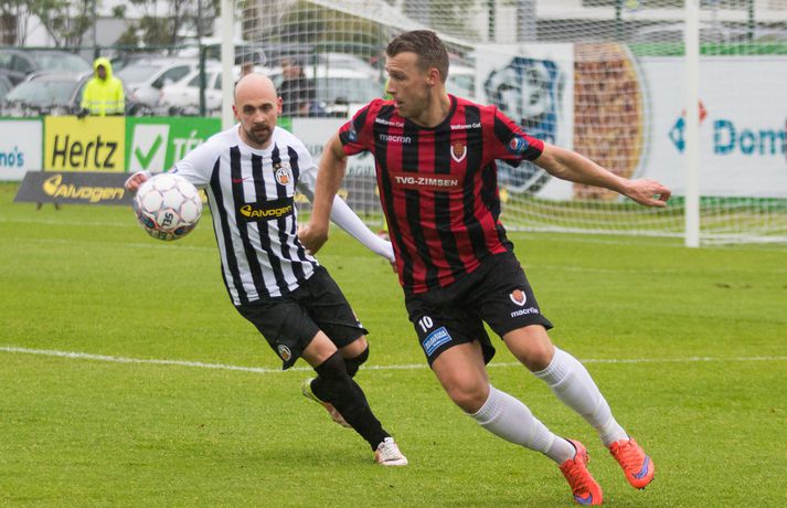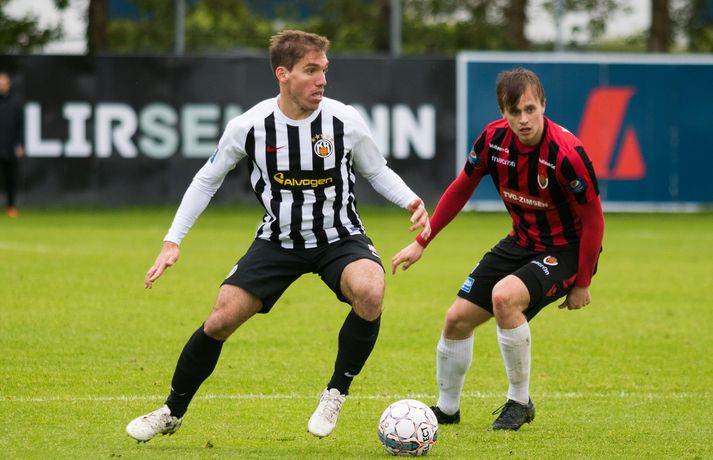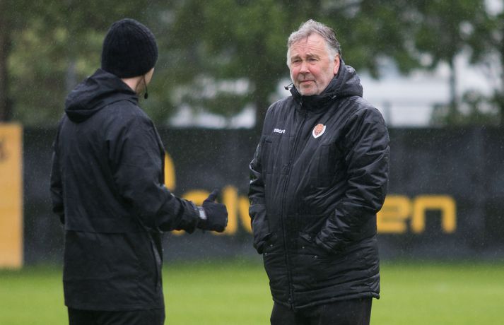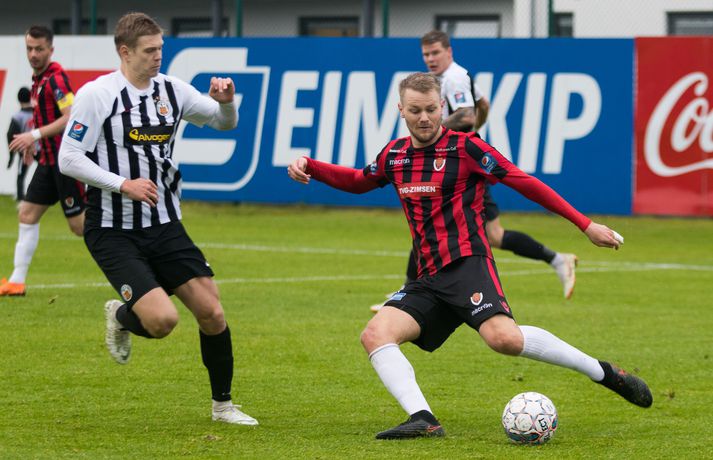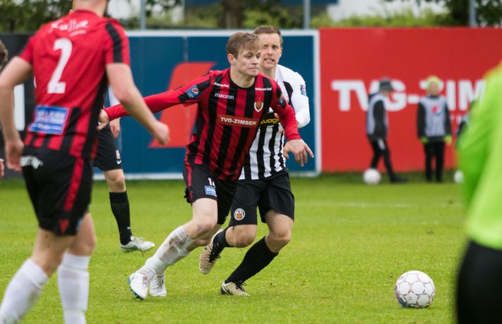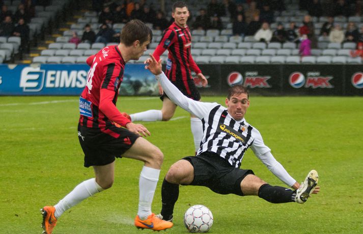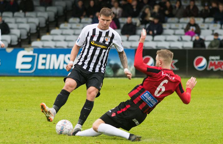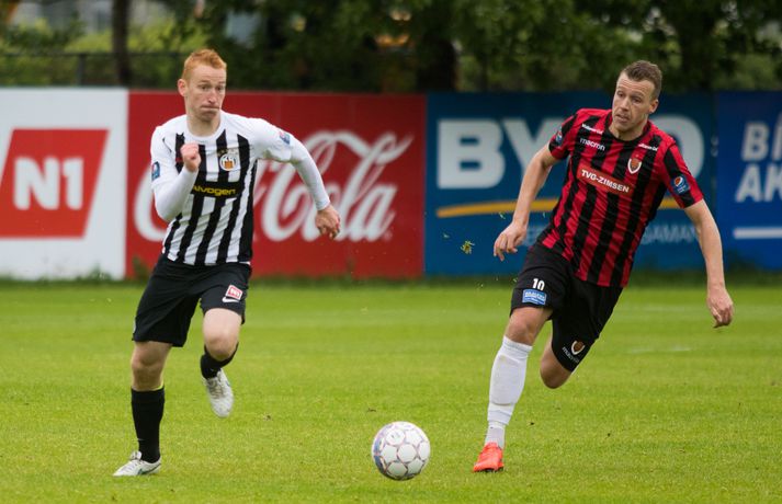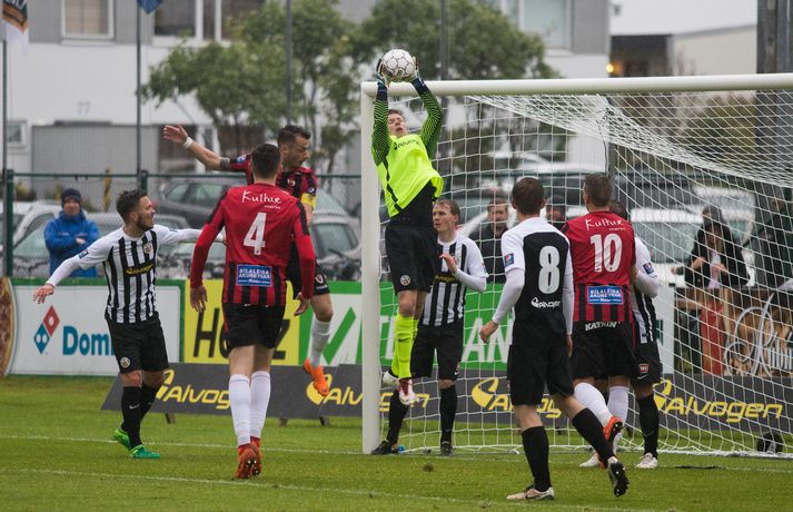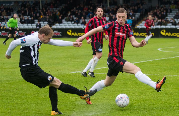 Víkingur vann gríðarlega mikilvægan útisigur á KR í Vesturbænum í 11. umferð Pepsi deildar karla í fótbolta í kvöld. Bjarni Páll Runólfsson skoraði eina mark leiksins snemma í seinni hálfleik. Víkingar byrjuðu leikinn á að gera sig líklega fyrir framan KR markið en náðu ekki að skapa sér opið færi. Eftir það var fyrri hálfleikurinn nánast eign KR og Víkingar komust sjaldan í almennilegar stöður sóknarlega. Markvörður Víkinga, Daninn Andreas Larsen, var algjörlega frábær í fyrri hálfleiknum og varði eins og enginn væri morgundagurinn. Það var í raun ótrúlegt að KR hafi ekki náð að koma boltanum í marknetið svo oft voru þeir í dauðafærum á að skora. Markið kom þó ekki og markalaust þegar liðin gengu til hálfleiks. Sigurður Hjörtur Þrastarsson hafði varla flautað seinni hálfleikinn á þegar Bjarni Páll Linnet Runólfsson skilaði boltanum í markið og kom Víking yfir. Nær fullkomin eftirlíking af byrjun fyrri hálfleiks nema í þetta skiptið náðu Víkingar að skapa sér marktækifæri og þeir nýttu það. Eftir markið gátu Víkingar einbeitt sér að því að þétta raðirnar og þeir gerðu vel í að verjast aðgerðum KR. Heimamenn sköpuðu sér ekki nærri því eins mikið af opnum marktækifærum í seinni hálfleiknum og ógnuðu jöfnunarmarkinu ekkert sérstaklega. Undir lokin settu þeir aðeins meiri pressu á Víkinga en uppskáru ekki, 1-0 sigur Víkings lokatölur.Af hverju vann Víkingur? Þeir nýttu eitt af örfáum marktækifærunum sem þeir fengu á meðan KR misnotaði sín færi ítrekað. Það er í stuttu máli það sem réði úrslitunum. Það að ná inn markinu svona snemma í seinni hálfeik, sérstaklega eftir öll stórhættulegu færin sem KR fékk í þeim fyrri, gerði mikið fyrir Víkinga sem gátu einbeitt sér að varnarleiknum og þar eru þeir með mjög góða pósta sem réðu við nær allt sem KR-ingar reyndu.Hverjir stóðu upp úr? Maður leiksins er markmaðurinn Andreas Larsen án nokkurs vafa. Ef ekki hefði verið fyrir hann þá hefði KR unnið þennan leik með þremur eða fjórum mörkum. Miðverðirnir Halldór Smári Sigurðsson og Sölvi Geir Ottesen voru einnig mjög góðir. Hjá KR var það helst Björgvin Stefánsson sem gekk hvað best fram á við, félagar hans í sóknarlínunni voru nokkuð mistækir.Hvað gekk illa? Færanýting KR og ákvarðanatökur í sóknarleiknum urðu þeim að falli. Í seinni hálfeik gekk þeim svo illa að opna vörn Víkings.Hvað gerist næst? Stutt í næstu umferð, hún er leikin á fimmtudaginn. Þá byrjar seinni umferðin, þó enn eigi eftir að leika nokkra leiki úr 10. umferð, og KR-ingar fá Valsmenn á Alvogenvöllinn í stórleik þar sem þeir hafa harma að hefna eftir sigurmark í uppbótartíma á Hlíðarenda í apríl. Víkingur sækir Fylki heim í Egilshöllina.Bára Dröfn, ljósmyndari Vísis, var á Alvogenvellinum í kvöld og tók myndirnar með fréttinni.vísr/báraLogi: Nauðsynlegt að ná þessum sigri „Við vorum ósáttir við sjálfa okkur í leiknum á móti FH og fengum hálfan mánuð til þess að vinna í hlutunum og nýttum þær tvær vikur vel. Þegar við náum að halda markinu hreinu og nýta færin okkar þá er alltaf von á sigri,“ sagði nokkuð ánægður Logi Ólafsson, þjálfari Víkings, eftir leikinn. „Þeir voru auðvitað meira með boltann og KR er með feykilega gott lið, vel spilandi menn sem eru sterkir einn á móti einum og fljótir að finna sér pláss þannig að þetta er erfitt fyrir okkur. Það er bara alveg ljóst. Að halda KR svona frá markinu og láta þá ekki skora er bara mjög gott.“ Það má segja að markið hafi komið gegn gangi leiksins og var það Daninn í markinu sem sá til þess að staðan var jöfn í hálfleik. „Hann var góður og við erum mjög ánægðir með hans framlag.“ Sigurinn var mjög mikilvægur fyrir Víking, sérstaklega í ljósi þess að ÍBV og Fjölnir, lið sem eru í baráttunni í neðri hlutanum líkt og Víkingur, unnu í dag. „Það er bara mjög mikilvægt. Þoka okkur aðeins af þessu svæði, það var nauðsynlegt fyrir okkur. Þetta er eitthvað sem við getum byggt mjög mikið ofan á og með þessu framlagi og að halda markinu hreinu þá eigum við alltaf von á sigri,“ sagði Logi Ólafsson. Rúnar: Hefðum með öllu réttu átt að taka þrjú stig „Það lið sem skorar vinnur leikinn. Það var það sem skiptir máli í dag, þetta eina mark,“ sagði Rúnar Kristinsson, þjálfari KR, aðspurður hvað hafi farið úrskeiðis hjá hans mönnum í dag. Það má segja að það hafi verið hreint ótrúlegt að KR hafi ekki náð að koma inn marki í fyrri hálfeik. „Við sköpuðum okkur alveg helling og stjórnuðum leiknum frá A til Ö. Ég man ekki til þess að Víkingar hafi fengið nema eitt færi í leiknum en þeir skoruðu úr klafsi í upphafi síðari hálfleiks og við erum ósáttir við það. Við erum ósáttir við að tapa á heimavelli og ósáttir við að nýta færin okkar ekki betur.“ „Við spiluðum mjög vel í fyrri hálfleik, spiluðum kannski ekki eins vel í síðari og sköpuðum ekki eins mikið þó við höfum verið mikið með boltann en Víkingarnir voru þéttir fyrir og vörðust mjög vel. Það er súrt að tapa.“ KR á stórleik við Val á fimmtudaginn og þarf liðið að hrista þetta tap af sér fyrir þann leik. „Þar er nýtt tækifæri, nýr leikur og við þurfum að gíra okkur upp í það. Við erum að vinna í ákveðnum hlutum sem voru flottir í dag og hefðum með öllu réttu átt að taka þrjú stig en það gerðist ekki í dag. Fótboltinn er skrítinn stundum og þú færð ekki alltaf það sem þú átt skilið,“ sagði Rúnar Kristinsson.vísir/báraBjarni Páll: Verður að nýta sénsana annars verður þér refsað Markaskorari Víkings, Bjarni Páll Runólf