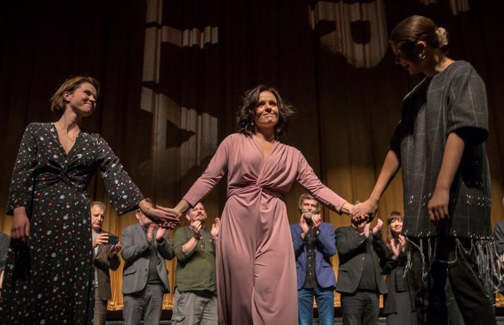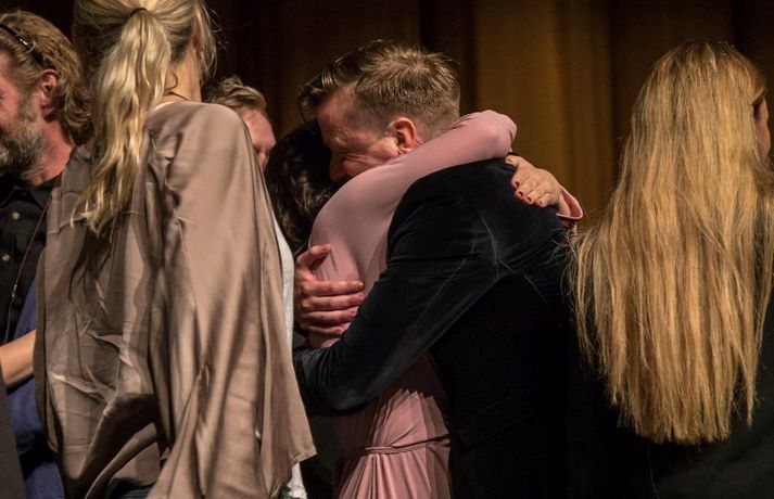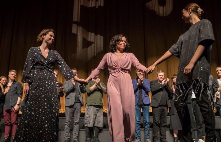 Lof mér að falla skildi bíógesti eftir í sjokki og sumir gengu grátandi út úr salnum Stefán Árni Pálsson skrifar 5. september 2018 10:30 Kvikmyndin Lof mér að falla sýnir raunverulegan heim fíkla á Íslandi. myndir/mummi lú „Ég er mjög stressaður, ég verð bara að viðurkenna það. Ég var búinn að lofa mér því að halda ekki ræðu um það hvað það er erfitt að vera kvikmyndagerðamaður á Íslandi og hvað við þjáumst mikið fyrir verkið, en shit við gerðum það,“ sagði Baldvin Z, leikstjóri kvikmyndarinnar Lof mér að falla, í aðalsal Háskólabíói í gærkvöldi þegar kvikmyndin var forsýnd. Myndin segir frá hinni 15 ára gömlu Magneu en líf hennar umturnast þegar hún kynnist hinni átján ára gömlu Stellu. Magnea laðast að hispurslausu lífi Stellu og þróar Magnea sterkar tilfinningar til hennar sem Stella notfærir sér til eigin hagsbóta. Stella leiðir Magneu inn í heim fíkniefna sem hefur alvarlegar afleiðingar fyrir þær báðar. Tólf árum síðar liggja leiðir þeirra óvænt saman og verður uppgjör á milli þeirra óumflýjanlegt. Baldvin skrifar einnig handriti myndarinnar ásamt Birgi Erni Steinarssyni. Þeir eiga að baki afar giftusamlegt samstarf þegar þeir skrifuðu saman handrit myndarinnar Vonarstrætis, sem Baldvin Z leikstýrði, sem sópaði til sín tólf verðlaunum á Edduverðlaunahátíðinni árið 2015 en tæplega 48 þúsund manns sáu þá mynd í kvikmyndahúsum hér á landi.„Þetta var ógeðslega erfitt verkefni og það komu ógeðslega margir að þessu og þetta tók ógeðslega langan tíma. Ég vil bara segja takk við alla sem komu að verkefninu á einhverjum tímapunkti. Ég vil sérstaklega þakka þremur stelpum sem voru svo ótrúlega óeigingjarnar og hleyptu okkur inn í líf sitt fyrir nokkrum árum síðan og sýndu okkur óritskoðað hvernig þessi heimur lítur út. Takk kærlega fyrir það stelpur, þið eruð algjörar hetjur. Ég vil þakka Jóa Kr. fyrir að koma inn í þetta með okkur og hleypa okkur inn í sögu Sissu en sérstaklega ætla ég að þakka fjölskyldu Kristínar Gerðar,“ sagði Baldvin sem heyrði um sögu Kristínar mjög snemma í ferlinu.Dagbækurnar skiptu sköpum „Við fengum aðgang að dagbókum sem ég og Birgir lásum. Þessi lestur breytti lífinu okkar sem um munar og ég held að það skipti engu máli hversu dýrar linsur, hversu gott crew og hversu góðir leikarar við fáum til að búa þetta verkefni til þá veit ég ekki hvort við náum að fanga það sem stóð í þessum dagbókum en við sannarlega gerðum okkar besta.“ Baldvin sagði að ein blaðsíða í dagbókinni hafi snert þá félaga sérstaklega og varpaði hann mynd upp á skjáinn þar sem textabrot úr dagbók Kristínar Gerði sást. Birgir Örn las þann texta upp og má sjá myndina hér að neðan.vísir/dáóMeð aðalhlutverk í Lof mér að falla fara leikkonurnar Elín Sif Halldórsdóttir og Eyrún Björk Jakobsdóttir en leikarinn Þorsteinn Bachman fer einnig með stórt hlutverk. Í myndinni fara einnig með hlutverk Sturla Atlason, Edda Björgvinsdóttir, Ólafur Darri Ólafsson og Halldór Halldórsson. Framleiðendur myndarinnar eru þeir Júlíus Kemp og Ingvar Þórðarson en meðframleiðendur eru Markus Selin og Jukka Helle. Lof mér að falla verður frumsýnd hér á landi 7. september næstkomandi.Sjá einnig: Gói sýnir á sér myrka hlið í Lof mér að falla: „Eitt mesta ógeð sem ég hef komist í kynni við“Kvikmyndin snerti augljóslega við kvikmyndagestum í gærkvöldi og var mikið grátið. Þegar sýningunni var lokið gengu fjölda gesta hreinlega grátandi út úr salnum enda sýnir kvikmyndin hinn raunverulega fíkniefnaheim hér á landi. Hér að neðan má sjá myndir frá forsýningunni í gærkvöldi. Eftir sýninguna var kvikmyndagestum boðið í partý á Bryggjunni Brugghús og má sjá myndir úr því teiti hér að neðan einnig en ljósmyndarinn Mummi Lú tók allar myndirnar.mynd/mummi lúElín Sif Halldórsdóttir og Eyrún Björk Jakobsdóttir fara með aðalhlutverkin í kvikmyndinni Lof mér að falla og standa sig virkilega vel.mynd/mummi lúBaldvin Z ræddi vel við forsetahjónin sem voru mætt á sýninguna í gær.mynd/mummi lúJóhannes Haukur lét sig ekki vanta.mynd/mummi lúBaldvin Z ásamt Birgi Erni og framleiðendum kvikmyndarinnar.mynd/mummi lúMyndin hafði augljós áhrif á kvikmyndagesti.Bíógestir stóðu upp eftir sýninguna og klöppuðu lengi og vel.mynd/mummi lúÖflugur leikarahópur í kvikmyndinni Lof mér að falla.mynd/mummi lú Bíó og sjónvarp Tengdar fréttir Nú eru dópistarnir úti um allt og bara á djamminu Baldvin Z kvikmyndaleikstjóri og ung kona í bata frá fíkniefnaneyslu lýsa ferlinu við gerð kvikmyndarinnar Lof mér að falla. Raunverulegar sögur ungra stelpna í neyslu eru uppistaða myndarinnar. 25. ágúst 2018 07:30 Lof mér að falla valin á Kvikmyndahátíðina í Toronto Kvikmyndin Lof mér að falla hefur verið valin á Kvikmyndahátíðina í Toronto sem fram fer 6.-16. september en hún verður frumsýnd hér á landi 7. september. 14. ágúst 2018 14:46 „Mögulega að deyja eftir að hafa prófað eiturlyf einu sinni tvisvar“ Fjallað var um kvikmyndina Lof mér að falla í Íslandi í dag á Stöð 2 í gærkvöldi en myndin segir frá hinni 15 ára gömlu Magneu en líf hennar umturnast þegar hún kynnist hinni átján ára gömlu Stellu. 23. ágúst 2018 15:45 Segir stöðuna mun verri í dag en þegar hann byrjaði á Lof mér að falla: „Fíklar eru líka fólk“ „Ég er að koma úr sex ára krossför eftir að hafa gert myndina Lof mér að falla og er alveg búinn að sökkva mér í þennan heim,“ segir leikstjórinn Baldvin Z sem ætlar að taka þátt í Reykjavíkurmaraþoni Íslandsbanka á laugardaginn og hlaupa tíu kílómetra til stuðnings skaðaminnkunarverkefninu Frú Ragnheiði. 1