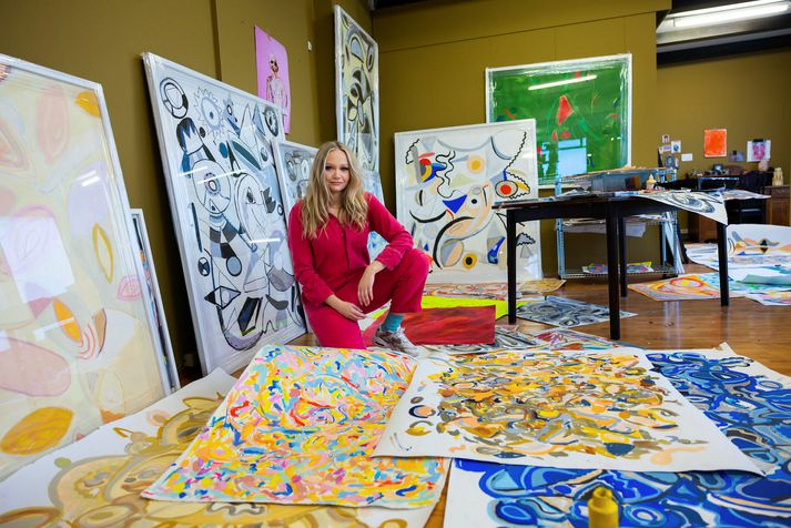 Málverkin kalla fram vellíðunartilfinningu Dóra Júlía Agnarsdóttir skrifar 1. febrúar 2022 07:00 Listakonan Saga Sig er gestur nýjasta þáttar af KÚNST en hér má sjá hana umkringda eigin málverkum þar sem litir, orka og flæði ráða ríkjum. Vilhelm Gunnarsson Listakonan Saga Sigurðardóttir segir listina flæða yfir allt sem hún gerir en hún er listræn í orðsins fyllstu merkingu og hefur ástríðu fyrir hinum ýmsu listmiðlum. Í gegnum tíðina hefur Saga verið þekkt fyrir tískuljósmyndir sínar en undanfarin ár hefur hún einnig vakið athygli fyrir abstrakt málverk sín. Saga er gestur í nýjasta þætti af KÚNST sem er að finna neðar í pistlinum. „Þegar ég er að mála þá hugsa ég ekkert. Þetta kemur bara algjörlega ósjálfrátt. Ég í raun og veru hef mjög litla stjórn á því sem gerist, það sem kemur á blaðið er bara algjört flæði og algjört móment. Ég ræð ekki litum og ég ræð ekki hvaða skapi ég er í,“ segir Saga og bætir við að hún geti til dæmis ekki gert commision þar sem hún getur ekki stjórnað því hvaða litir koma hverju sinni. „Það er þessi undirmeðvitund sem er að vinna mikið með mér þegar ég er að mála.“ Listsköpunin hefur reynst henni mikið haldreipi í gegnum tíðina. „Ein af stóru ástæðunum fyrir því að ég byrjaði að mála meira var að mér leið illa. Ég var með svo mikinn kvíða, bjó í London og þetta var það eina sem hjálpaði mér, að mála. Ég bjó í stóru warehouse space-i, stóru herbergi með stórum gluggum, og ég fyllti bara allan vegginn og allt gólfið af málverkum og þá leið mér ótrúlega vel. Og ég vil helst hafa það þannig í kringum mig.“ Hér má sjá þáttinn í heild sinni: Klippa: KÚNST - Saga Sigurðardóttir Þættirnir KÚNST með Dóru Júlíu rannsaka hinar ýmsu víddir listsköpunar, ólíka listmiðla og sköpunargleði hjá íslenskum samtíma listamönnum ásamt því að fá að skyggnast bak við tjöldin og heyra um persónulegt líf þeirra. Myndlist Menning Kúnst Tengdar fréttir „Skemmtileg pörun á bréfalúgu og glannalegri staðhæfingu“ Listamaðurinn Baldvin Einarsson var viðmælandi í síðasta þætti af KÚNST. 22. janúar 2022 11:30 „Einhvers konar op milli hugans og raunveruleikans“ „Húsið er oft myndlíking fyrir manneskjuna eða hugann og hvað verður þá bréfalúgan í tengslum við það? 18. janúar 2022 07:01 „Listin er speglun á mínum innri talandi rafmagnaða helli“ Listin og lífið dansa saman skemmtilegan dans og sumir halda því fram að listina sé að finna allt í kringum okkur. 22. desember 2021 11:30 Mest lesið Fáklæddir barþjónar þegar Regnboginn opnaði í Bíó Paradís Lífið „Ég heyrði þá kalla á mig en gat engu svarað“ Lífið Útgefandi Walliams lætur hann róa Lífið Heilsu krónprinsessunnar hrakar gríðarlega Lífið Best klæddu Íslendingarnir 2025 Tíska og hönnun 500 Esjuferðir á árinu: „Sumir hrista bara hausinn og lygna augunum“ Lífið Nýkominn úr meðferð og „sjaldan verið betur nýsleginn túskildingur“ Lífið Úr öskunni í eldinn Gagnrýni Sex hundruð ára kastali Björns í Frakklandi svo gott sem klár Lífið Rússland aftur í Eurovision - undirskriftasöfnun Lífið Fleiri fréttir Flýta jólasýningunni um klukkutíma vegna lengdar Vangreiðslugjald orð ársins 2025 Fólk eigi ekki að vera hrætt við að skilja ekki „Ef einhver telur að ég hljóti að vera sjúkur, þá verður að hafa það“ Konungur bóksölunnar á í vök að verjast Að gluða tómatsósu yfir sushi-ið Auður segir skilið við Gímaldið Ráðherra tekur sjálfur viðtöl Hvert er mest óþolandi orð íslenskunnar? Heigulsleg ákvörðun Rúv, hörundsárir listamenn og versta bók flóðsins Sigurður Sævar fyllti Landsbankahúsið „Versta hljómsveit Íslandssögunnar“ segir rappara vera með sig á heilanum Kanónur í jólakósí „Djúp menning sem hefur átt sér stað og enginn telur sig ábyrgan“ Brjálað að gera á „Brjálað að gera“ Vilja minnka allt þetta neikvæða suð Munur er á manviti og mannviti Vatn og brauð íslenskra fanga: Hvað elda menn í íslenskum fangelsum? Gefur út bók um reynsluna af því að vera útilokuð Einn heitasti listamaður landsins heldur þræði Sýnilegri í senunni á meðgöngunni Það skrítnasta á djamminu: Amfetamín inni á klósetti og fólk að ríða Þetta er fólkið sem fær listamannalaun 2026 Björk og James Merry opna sýningar á Listahátíð í Reykjavík Bjó hjá Trumpara í búddistabæ í Kaliforníu Lyktarlítill dans, Lux og „metnaðarlaus stefna í íslensku“ Skilaði Kommúnistaávarpinu hálfri öld of seint en sleppur við sekt „Mér líður eins og plottið í bókinni sé að raungerast“ Helgi snýr heim: „Laus við leiðindin sem bjuggu þetta til“ Jón Ásgeirsson tónskáld er látinn Sjá meira