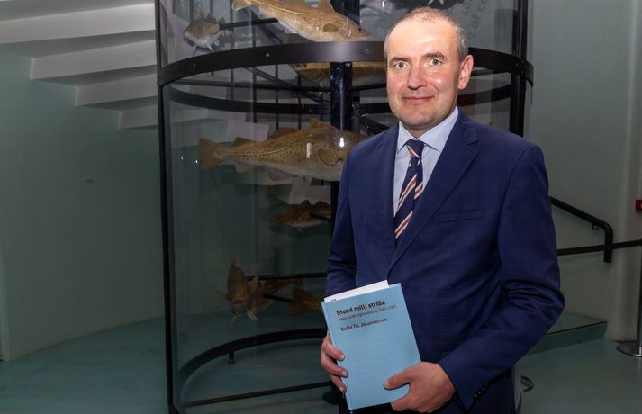Í tilefni útgáfunnar bauð Sögufélagið til hófs í Sjóminjasafninu í Reykjavík. Í gær var einmitt 50 ára afmæli 50 mílna útfærslunnar á landhelgis Íslands, 1. sept. 1972. Kristján Ragnarsson fyrrverandi formaður LÍÚ sagði nokkur orð fyrir hönd útgáfunefndar.Vísir/Vilhelm Guðni Th. Jóhannesson sagði frá verkinu sínu og áritaði bækur og Gerður Kristný skáld flutti frumsamið ljóð. Gerður Kristný og Guðbrandur BenediktssonVísir/Vilhelm Í albúminu hér fyrir neðan má sjá nokkrar myndir frá viðburðinum. Georg Lárusson forstjóri Landhelgisgæslunnar og Ásgrímur L. ÁsgrímssonVísir/VilhelmGuðmundur Hallvarðsson, Guðni TH Jóhannesson, Georg Lárusson forstjóri Landhelgisgæslunnar og Ásgrímur L. ÁsgrímssonVísir/VilhelmEyþór Árnason, Viðar Pálsson og Jónína Helga Ólafsdóttir.Vísir/VilhelmSæmundur Ingólfsson og Jón KR FriðgeirssonVísir/VilhelmKristján RagnarssonVísir/VilhelmJörundur Kristjánsson og Helgi BernódussonVísir/VilhelmGuðni Th. JóhannessonVísir/VilhelmKristján Ragnarsson og Ólafur EgillssonVísir/VilhelmÞorsteinn Pálsson var á meðal gesta.Vísir/VilhelmVísir/VilhelmVísir/Vilhelm