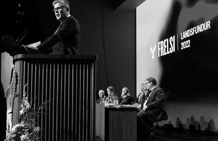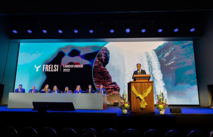 Fyrir allt áhugafólk um stjórnmál var síðasta helgi æsispennandi. Risavaxin lýðræðisveisla, segja sanntrúaðir Sjálfstæðismenn: Sú langstærsta, meðan aðrir segja að flokkurinn hafi sýnt stálhnefann. Landsfundur Sjálfstæðisflokksins var haldinn með pompi og prakt í Laugardalshöll. Vísir fór á landsfund. Reglulega má sjá einkennilega innblásnar og nánast barnalegar athugasemdir frá Sjálfstæðismönnum á Facebook. Sem eru verulega á skjön við hálfkæringinn sem ríkir þar alla jafna: „Við Sjálfstæðismenn erum heppnir að njóta ævinlega krafta úrvalsfólks í forystunni, það er lykillinn að farsæld okkar í fortíð og framtíð,“ skrifaði til dæmis maður nokkur á besta aldri á sína samfélagsmiðlasíðu um helgina. Hver talar svona? Jú, þeir sem sækja landsfundi flokksins. Þar hljómuðu setningar sem þessar út í eitt, í ræðum og tali landsfundafulltrúa. Fjölsóttasti fundur frá upphafi vega Hvað sem pólitískir andstæðingar Sjálfstæðiflokksins segja þá er landsfundur flokksins afar tilkomumikill. Mikil orka. Þegar blaðamaður Vísis gekk ásamt ljósmyndara sínum inn í Laugardalshöll síðdegis á föstudaginn dreif að prúðbúna Sjálfstæðismenn í stórum stíl. Stemmningin afar sérstök svo ekki sé meira sagt: Ofsakæti í bland við taugaveiklun og mikla spennu. Tvennt kemur einkum til að fundurinn að þessu sinni var einkar vel sóttur. Fjögur ár eru frá því að síðasti landsfundur var haldinn. Yfirleitt líða tvö ár milli funda en messufall varð vegna heimsfaraldursins og mönnum var orðið mál. Bjarni mætti sigurviss fylktu liði á landsfundinn. Hann lék á als oddi, brýndi sitt fólk til dáða og skaut á pólitíska andstæðinga sína vinstri hægri milli þess sem hann bauð þá velkomna heim.vísir/vilhelm Og þá ekki síður vegna formannskjörs milli þeirra Bjarna Benediktssonar, formanns flokksins og Guðlaugs Þórs Þórðarsonar, ráðherra og oddvita flokksins í Reykjavík. Það formannskjör var einkennandi fyrir 44. landsfund Sjálfstæðisflokksins, vart var um annað rætt meðal landsfundarfulltrúa. Fundurinn að þessu sinni er sá stærsti sem haldinn hefur verið. Ekki liggja fyrir nákvæmar tölu um hversu margir tóku þátt sem er athyglisvert út af fyrir sig. Talið er að fundargestir hafi verið ríflega tvö þúsund. Vísir reyndi fyrir fund að finna út úr því hversu margir væru bókaðir á fundinn en á daginn kom að hægara var sagt en gert að fá nákvæmar tölu þar um. Þeir sem eiga rétt á að sitja fundinn þurfa að vera skráðir í flokkinn, vera í miðstjórn, aðili úr flokksráði en þar eru ríflega 600 manns eða vera fulltrúi aðildarfélags. Þetta eru rúmlega 200 félög. Gullarnir Þegar fyrir lá að Guðlaugur Þór ætlaði að fara fram gegn Bjarna varð uppi fótur og fit. Innan við vika var í landsfund og hrollur fór um stuðningsmenn Bjarna. Þeir vildu meina að ekki væri nokkur maður eins mikill kafbátur og Guðlaugur Þór Þórðarson. Hann hefði, öfugt við Bjarna, ræktað grasrótina af miklu kappi, (þessa sem Davíð Oddsson fyrrverandi formaður sagði svo eftirminnilega að ef maður hlustaði of mikið á með því að leggja eyru við jörðu fengju menn orma í eyrun). Alla tíð. Alþýðlegur svo mjög að hann er aldrei kallaður annað en Gulli. Fullyrt var í aðdraganda formannskjörsins að Guðlaugur Þór væri búinn að búa svo um hnúta að allir hans stuðningsmenn færu á landsfund. Ein frétt skaut skökku við í því samhengi, sú að Einar Bárðarson athafnamaður, stuðningsmaður Gulla, hefði ekki náð sér í miða. Sem benti til að möskvar Gulla væru ekki eins þéttriðnir og menn vildu meina. Þegar blaðamaður bar þetta undir Guðlaug Þór sagði hann um meintan ofurundirbúning sinn að það væri algjört kjaftæði.vísir/vilhelm Hann væri skipulagðasti stjórnmálamaður sem um getur. Hann væri með gríðarlega öfluga kosningavél sem hann hefur verið árum saman að koma sér upp og eru af andstæðingum hans innan flokksins jafnan kallaðir „Gullarnir“. Áður en Gulli lýsti yfir framboði hafði verið uppi hávær orðrómur um að hann ætlaði fram. Blaðamönnum tókst ekki að ná í Guðlaug Þór til að inna hann eftir þessu sem varð ekki til að slá á orðróminn sem var svo hávær að landsfundur Samfylkingarinnar nánast hvarf í skuggann. Stuðningsmenn Bjarna safna vopnum sínum í snatri Þegar svo Gulli Þór kynnti framboð sitt á fjölsóttum stemmningsfundi í Valhöll rann stuðningsmönnum Bjarna kalt vatn milli skinns og hörunds. Hann hlaut að vera búinn að undirbúa þetta vikum og mánuðum saman, búinn að reikna dæmið til enda og koma öllum sínum mönnum að sem skráðum landsfundafulltrúum. Salóme Þorkelsdóttir, áður einn helsti foringi flokksins, var hyllt sérstaklega á landsfundinum. Þarna ásamt þeim Halldóri Blöndal formanni Sjálfstæðisfélags eldri borgara, Bryndísi Haraldsdóttur þingmanni, frambjóðanda til ritara, Illuga Gunnarssyni fyrrverandi ráðherra og Jóni Skaftasyni eiginmanni Hildar Björnsdóttur oddvita Sjálfstæðisflokksins í Reykjavík. Formannsefnin töluð bæði um bændastéttina og eldri borgara, einkum Guðlaugur Þór sem sagði að við ættum lífsgæði okkar fyrri kynslóðum að þakka. Hann lét fundarmenn rísa á fætur og klappa þeim lof í lófa, sem verður að teljast snjallt bragð ræðumanns.vísir/vilhelm Miðinn á landsfund kostaði 15 þúsund krónur og Stefán Einar Stefánsson blaðamaður, innmúraður Sjálfstæðismaður, greindi frá því í Silfri Ríkissjónvarpsins um síðustu helgi að honum væri kunnugt um nokkur tilvik þar sem menn Guðlaugs hafi í einhverjum tilvika greitt kostnað við setu landsfundafulltrúa og hann væri viss um að stuðningsmenn Bjarna hefðu sama hátt á. Fr