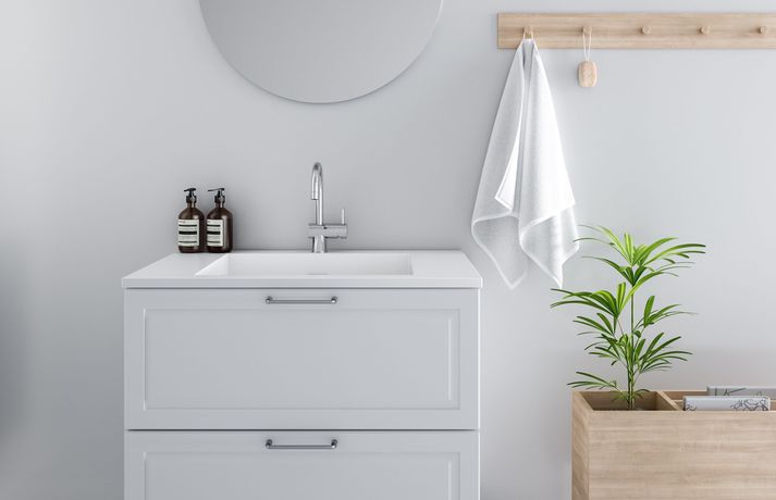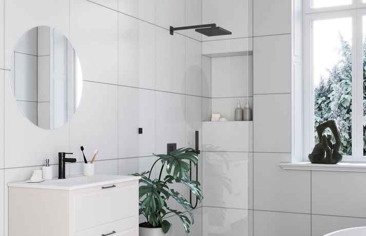 Allur viður sem notaður er í framleiðsluna er með FSC sjálfbærnivottun og frá árinu 2020 eru allar hurðartýpur, sem ekki eru úr náttúrulegum við, með yfirborðfilmu úr endurunnum PET plastflöskum. Þetta jafngildir að 10,5 milljónir plastflaskna öðlist nýtt líf. Innréttingarnar berast til landsins flatpakkaðar, sem dregur úr kolefnisspori. Oakwood er handverksinnrétting úr gegnheilli eik. „Við erum ákaflega stolt af því að nýjasta eldhúslínan sem ber nafnið Oakwood hafi unnið hönnunarverðlaun hjá lesendum Bo Bedre í Danmörku,“ segir Atli Ragnar Ólafsson, sölustjóri Kvik í Reykjavík. „Oakwood eldhúsið okkar er óður til danskrar hönnunarhefðar og handverks. Skúffurnar eru úr gegnheilli FSC vottaðri eik með láréttum línum og samsettar með fínlegri geirneglingu sem ber vott um meistaralegt handbragð.“ Dönsk hönnun og stílhreint yfirbragð eru í fyrirúmi í fjölbreyttu úrvali eldhúsinnréttinga Kvik. Hann segir Kvik hafa ákveðna sérstöðu á markaðnum en þar mætti t.d. nefna að fyrirtækið bjóði meira skápapláss en helstu keppinautar á stöðluðum einingum. „Auk þess bjóðum við upp á einingar sem eru um 13 cm dýpri en með því móti fáum við um 40% meira skápapláss sem gefur aukið borðpláss,“ bætir hann við. „Við erum ákaflega stolt af því að nýjasta eldhúslínan sem ber nafnið Oakwood hafi unnið hönnunarverðlaun hjá lesendum Bo Bedre í Danmörku," segir Atli Ragnar Ólafsson, sölustjóri Kvik í Reykjavík, sem sýnir hér viðskiptavinum úrvalið. Hægt er að bóka tíma hjá hönnuðum þar sem lögð er áhersla á að vinna teikningar með viðskiptavinum, ýmist í versluninni eða í gegnum fjarfundabúnað. „Þannig gerum við góðar hugmyndir að glæstum veruleika á skilvirkan máta. Við getum síðan boðið innréttingarnar ósamsettar fyrir þau sem þess óska, samsettar eða uppsettar, allt eftir óskum og þörfum hvers og eins. Við leysum síðan auðvitað allar áskoranir sem upp geta komið í ferlinu hratt og örugglega, enda er það hagur allra að lokaniðurstaðan verði sem allra best.“ Einstök og klassísk hönnun fyrir baðherbergið. Atli segir markmiðið vera að gera innréttingakaupin áhugaverð og skemmtileg og kaupferlið eigi að vera eins þægilegt og kostur er. „Kvik er danskur innréttingaframleiðandi sem leggur áherslu á vandaða hönnun, hágæða vörur og viðráðanleg verð. Þetta eru þau gildi sem ráða ferðinni í öllum þeim rúmlega 170 Kvik verslunum sem til eru.“ Kvik eru með fjölbreyttar lausnir fyrir fataskápa og fataherbergi. Kvik er til húsa á Suðurlandsbraut 16, á sama stað og Rafha, raftækjaverslun. Nánari upplýsingar á rafha.is/kvik.