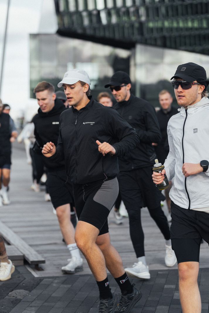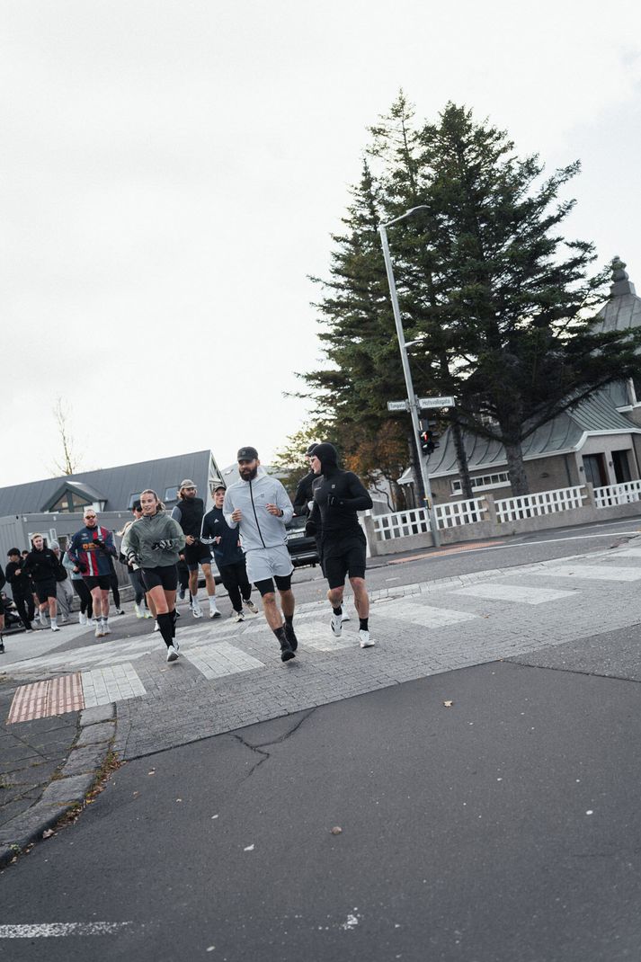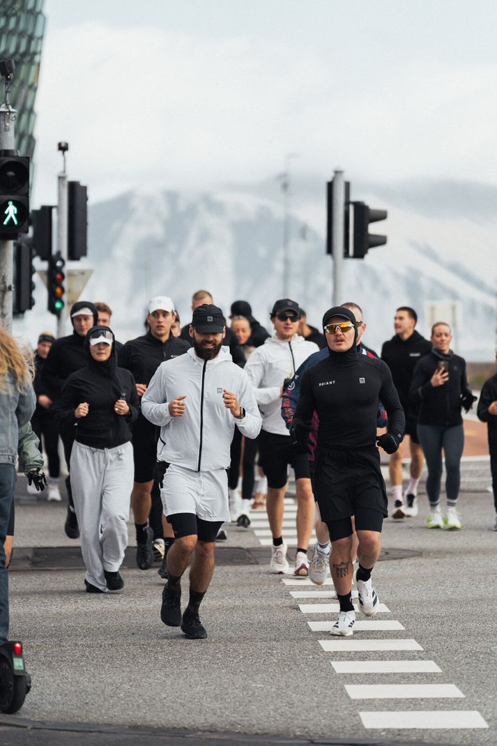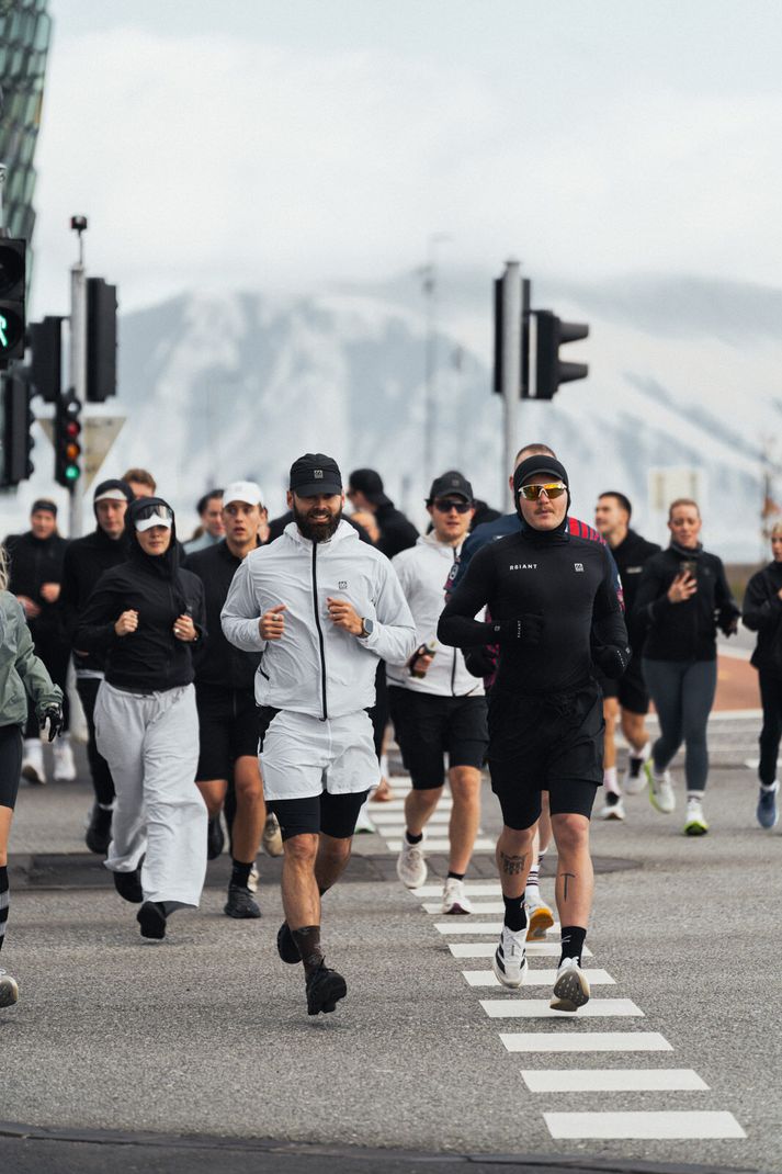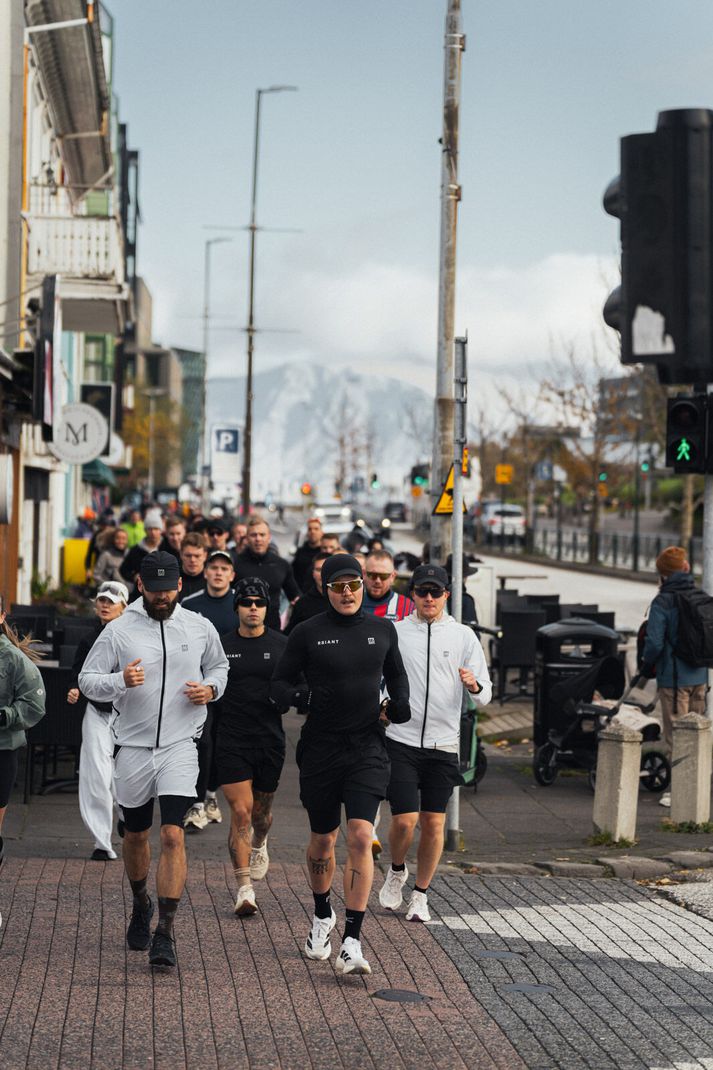 Meðal feðra á svæðinu voru auðvitað Aron Can sjálfur, tónlistarmaðurinn Friðrik Róbertsson betur þekktur sem Flóni, samfélagsmiðlastjarnan, ævintýramaðurinn, ljósmyndarinn og listamaðurinn Benjamin Hardman, Fannar Páll Aðalsteinsson markaðsstjóri 66 og svo lengi mætti telja. Gestir létu ekki smá kuldahroll á sig fá, heldur klæddu sig vel og hlupu um miðbæ Reykjavíkur áður en fengu sér kaffibolla, steinefni frá R8iant og beyglur og gátu verslað sér merktan fatnað í takmörkuðu upplagi frá 66°Norður og R8iant. Hér má sjá nokkrar vel valdar myndir frá viðburðinum: Hlaupa hratt! Hlynur Hólm Hressir hlauparar.Hlynur Hólm Nína Melsted í stuði.Hlynur Hólm Aron Can hljóp með Theó í vagninum.Hlynur Hólm Benjamin Hardman á spjalli.Hlynur Hólm Glæsilegur hópur hlaupara.Hlynur Hólm Fannar Páll og Mirra glæsileg feðgin.Hlynur Hólm Aron Can og Alexander Leite.Hlynur Hólm Benjamin Hardman og Bjartur Norðfjörð fremstir.Hlynur Hólm Kristín Péturs fékk sér beyglu og r8iant.Hlynur Hólm Benjamin Hardman og Bjartur Norðfjörð öflugir.Hlynur Hólm Bjartur Norðfjörð hlaupalegend í nýrri samstarfslínu R8iant og 66.Hlynur Hólm Viðrar vel til hlaupa.Hlynur Hólm Óskar Örn Bragason og Sigurður Pétur flottir.Hlynur Hólm Aron Can sáttur með viðburðinn.Hlynur Hólm Pétur Kiernan á spjalli.Hlynur Hólm Alltaf gaman að hlaupa með fram Tjörninni.Hlynur Hólm Gleði!Hlynur Hólm Pétur Kiernan og Aron Can á spjalli.Hlynur Hólm Strákar á spjalli.Hlynur Hólm Ísak í stuði.Hlynur Hólm Feðgarnir Flóni og Benjamín flottir.Hlynur Hólm Stemningsfólk upp til hópa.Hlynur Hólm Allt á fullu. Hlynur Hólm Skál!Hlynur Hólm Lokaspretturinn.Hlynur Hólm Jón (from Iceland) Ragnar Jónsson.Hlynur Hólm Fallegu mæðginin Erna María og Theó en Erna rekur r8iant ásamt manninum sínum Aroni Can.Hlynur Hólm Aron smellti af mynd.Hlynur Hólm
