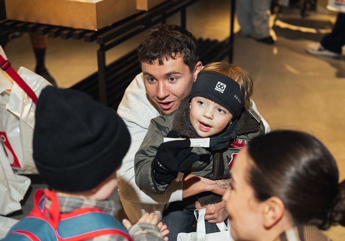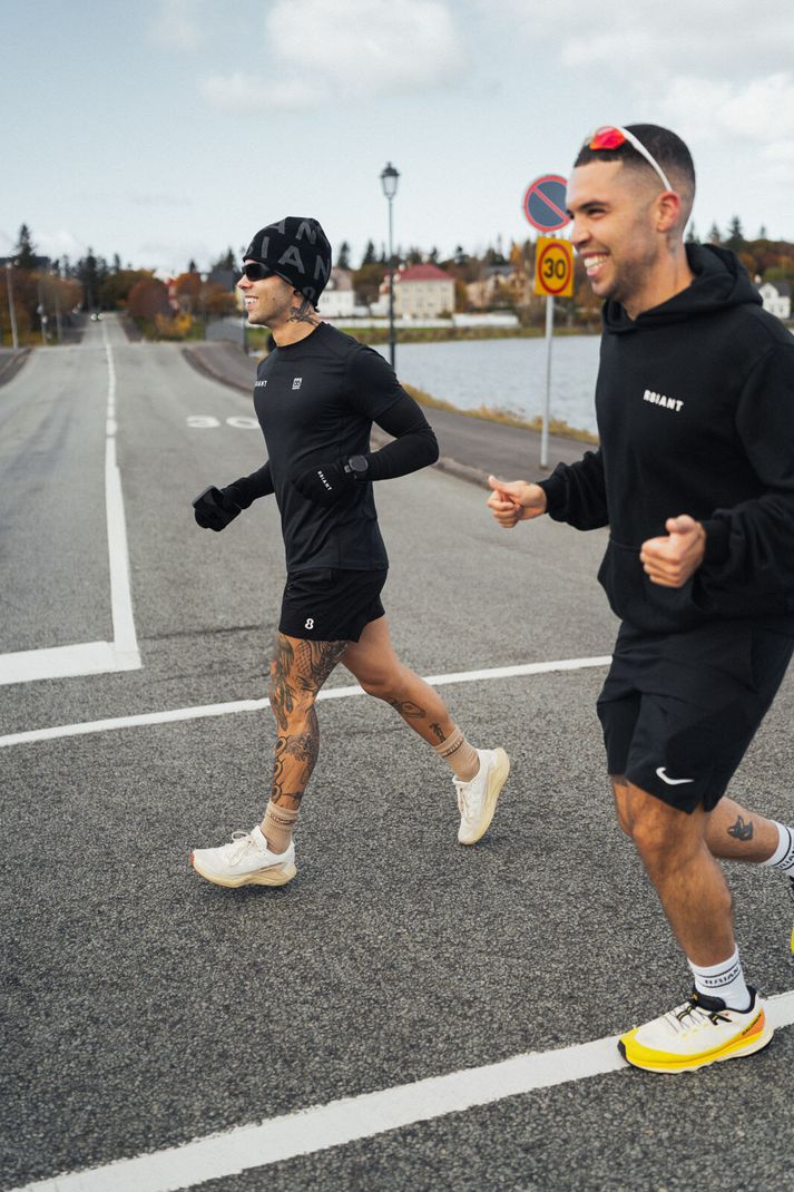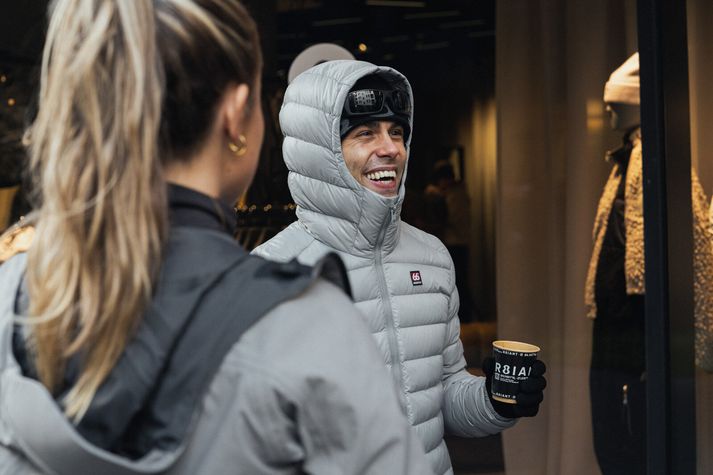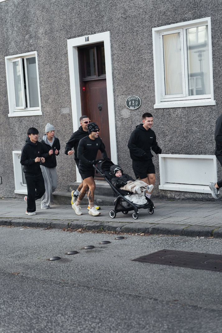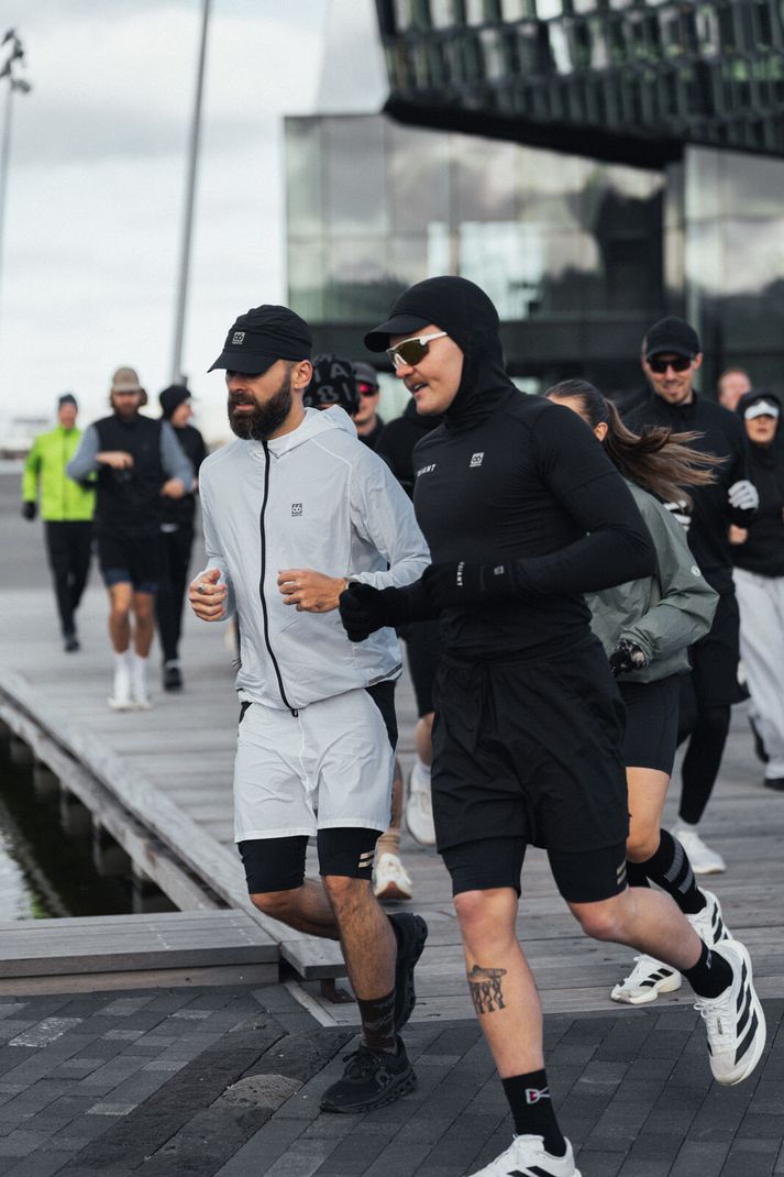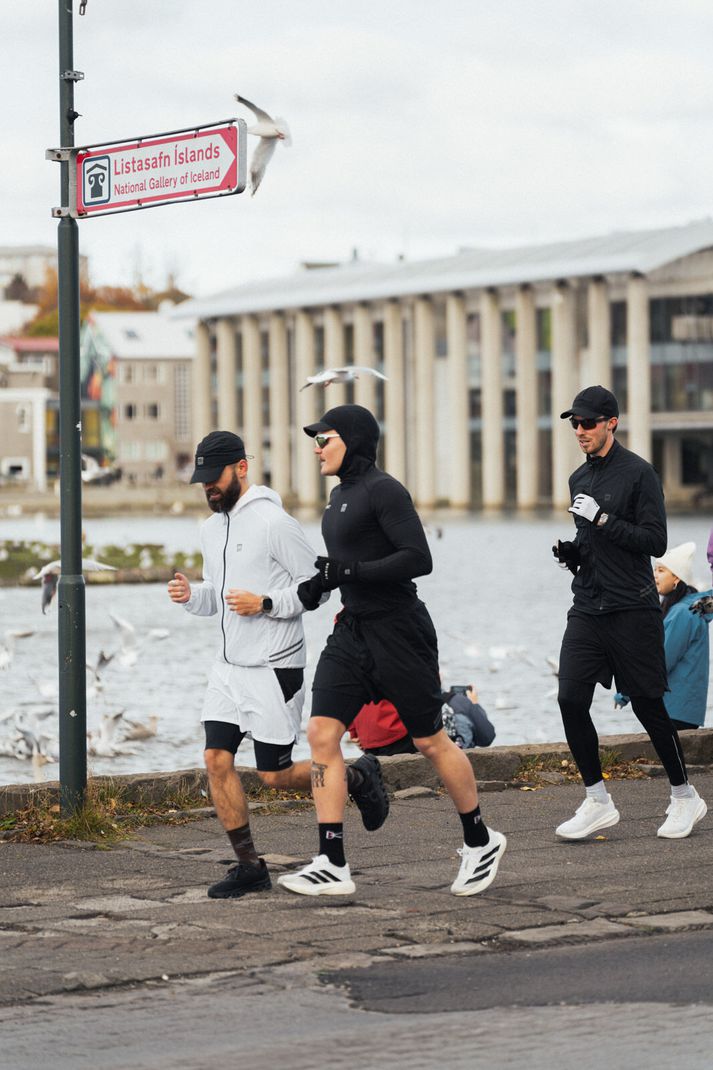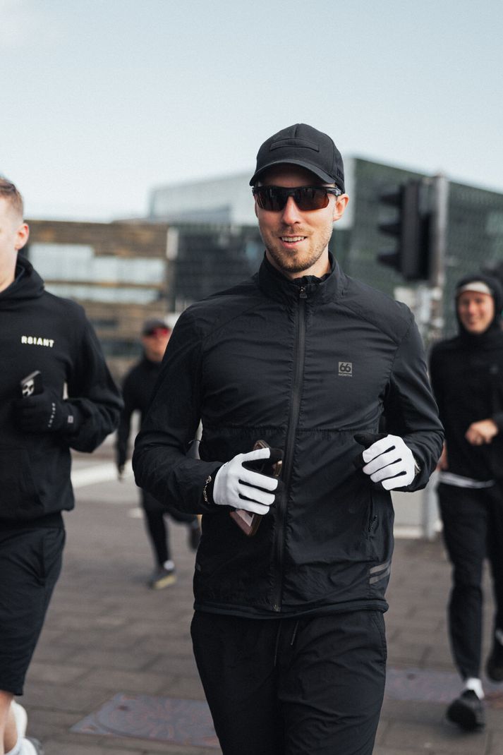 Meðal feðra á svæðinu voru auðvitað Aron Can sjálfur, tónlistarmaðurinn Friðrik Róbertsson betur þekktur sem Flóni, samfélagsmiðlastjarnan, ævintýramaðurinn, ljósmyndarinn og listamaðurinn Benjamin Hardman, Fannar Páll Aðalsteinsson markaðsstjóri 66 og svo lengi mætti telja. Gestir létu ekki smá kuldahroll á sig fá, heldur klæddu sig vel og hlupu um miðbæ Reykjavíkur áður en fengu sér kaffibolla, steinefni frá R8iant og beyglur og gátu verslað sér merktan fatnað í takmörkuðu upplagi frá 66°Norður og R8iant. Hér má sjá nokkrar vel valdar myndir frá viðburðinum: Hlaupa hratt! Hlynur Hólm Hressir hlauparar.Hlynur Hólm Nína Melsted í stuði.Hlynur Hólm Aron Can hljóp með Theó í vagninum.Hlynur Hólm Benjamin Hardman á spjalli.Hlynur Hólm Glæsilegur hópur hlaupara.Hlynur Hólm Fannar Páll og Mirra glæsileg feðgin.Hlynur Hólm Aron Can og Alexander Leite.Hlynur Hólm Benjamin Hardman og Bjartur Norðfjörð fremstir.Hlynur Hólm Kristín Péturs fékk sér beyglu og r8iant.Hlynur Hólm Benjamin Hardman og Bjartur Norðfjörð öflugir.Hlynur Hólm Bjartur Norðfjörð hlaupalegend í nýrri samstarfslínu R8iant og 66.Hlynur Hólm Viðrar vel til hlaupa.Hlynur Hólm Óskar Örn Bragason og Sigurður Pétur flottir.Hlynur Hólm Aron Can sáttur með viðburðinn.Hlynur Hólm Pétur Kiernan á spjalli.Hlynur Hólm Alltaf gaman að hlaupa með fram Tjörninni.Hlynur Hólm Gleði!Hlynur Hólm Pétur Kiernan og Aron Can á spjalli.Hlynur Hólm Strákar á spjalli.Hlynur Hólm Ísak í stuði.Hlynur Hólm Feðgarnir Flóni og Benjamín flottir.Hlynur Hólm Stemningsfólk upp til hópa.Hlynur Hólm Allt á fullu. Hlynur Hólm Skál!Hlynur Hólm Lokaspretturinn.Hlynur Hólm Jón (from Iceland) Ragnar Jónsson.Hlynur Hólm Fallegu mæðginin Erna María og Theó en Erna rekur r8iant ásamt manninum sínum Aroni Can.Hlynur Hólm Aron smellti af mynd.Hlynur Hólm