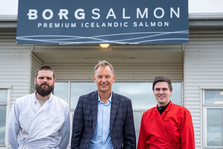 Þetta kemur fram í tilkynningu frá félaginu, en Eðalfiskur er í eigu Eðalfangs, móðurfélags matvælafyrirtækjanna Norðanfisks, Eðalfisks og 101 Seafood. „Nafnabreytingin markar nýjan áfanga í vexti félagsins sem sækir sífellt meira á erlenda markaði. Var ákveðið að breyta nafni og ásýnd fyrirtækisins og varð nafnið Borg Salmon fyrir valinu. Nafnið Borg er tenging við staðsetningu á framleiðslunni en hún er staðsett nálægt Borg, heimkynnum landnámsmannsins Skalla-Gríms og sonar hans Egils Skallagrímssonar. Borg Salmon er ein af fáum sérhæfðum laxavinnslum á Íslandi sem framleiðir fullunna vöru beint í verslanir, í stað þess að senda hráefni óunnið úr landi. Félagið vinnur lax til útflutnings frá öllum helstu framleiðendum landsins, þar á meðal Arnarlaxi, Kaldvík, Arctic Fish, First Water, Háafelli og Samherja. Árið 2022 bættist framtakssjóðurinn Horn IV í hluthafahóp Eðalfangs og í kjölfarið var ráðist í miklar fjárfestingar í hátæknibúnaði og nýrri vinnslulínu frá Marel. Með þessum umbreytingum varð félagið að einni tæknivæddustu laxavinnslu landsins. Hilmar Örn Bjarnason, framleiðslustjóri Borg Salmon, Hinrik Ö. Bjarnason, framkvæmdastjóri Eðalfangs og Þorsteinn E Ólafsson, rekstrarstjóri Borg Salmon.Mummi Lú Vöxtur félagsins hefur verið mikill á undanförnum árum. Velta Borg Salmon hefur fimmfaldast frá 2021 og er orðið eitt stærsta fullvinnslufyrirtæki landsins í laxi. Heildarvelta Eðalfangs, móðurfélag matvælafyrirtækjanna Borg Salmon, Norðanfisks og 101 Seafood, er áætluð 6,5 milljarðar króna á árinu 2025,“ segir í tilkynningunni. Þá segir að frá 2022 hafi framleiðsla Borg Salmon aukist úr 600 tonnum í 1.200 tonn árið 2024, og stefnt sé að því að framleiðslan fari í 3.000 tonn á árinu 2025. Framleiðslugeta fyrirtækisins er nú 6.000 tonn á ári, með möguleika á að stækka í 10–12 þúsund tonn til framtíðar. Mummi Lú 70 prósent á erlenda markaði Haft er eftir Hinriki Ö. Bjarnasyni, framkvæmdastjóra Eðalfangs, að um 70 prósent af framleiðslu Borg Salmon fari á erlenda markaði, og félagið vinni nú markvisst að aukinni markaðssetningu og vörumerkjauppbyggingu utan Íslands. „Við höfum fengið frábær viðbrögð, sérstaklega frá bandarískum og evrópskum samstarfsaðilum sem meta íslenskan lax fyrir gæði og ferskleika. Kaldara veðurfar og heilbrigðari aðstæður hér á landi skila vöru sem sker sig úr á alþjóðamarkaði,“ segir Hinrik Örn. Þá er haft eftir Andra Gunnarssyni, stjórnarformanni Eðalfangs, að frá kaupum á Norðanfiski árið 2020 hafi félagið byggt upp öfluga matvælasamstæðu á Vesturlandi. „Við sjáum fram á enn meiri tækifæri með áframhaldandi vexti í laxeldinu á Íslandi og aukinni áherslu á fullvinnslu hér heima.“
