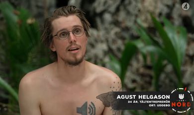 Ágúst býr í Uddebo í suðurhluta Svíþjóðar með unnustu sinni. Hann er af íslensku bergi brotinn, ber alíslenskt nafn og talar málið nokkuð hnökralaust en er þó eiginlega orðinn Svíi eftir að hafa búið í Svíþjóð mestalla ævi sína. „Foreldrar mínir eru báðir íslenskir en ég er fæddur og uppalinn í Svíþjóð. Við fluttum til Íslands í eitt ár þegar ég var tíu ára og ég lærði þá smá íslensku í Melaskóla. Við höfum eiginlega alltaf talað sænsku heima fyrir, þannig ég veit ekki af hverju ég get ennþá talað íslensku,“ segir Ágúst. Ágúst byggði sér hús í Uddebo í Suður-Svíþjóð og býr þar með unnustu sinni, Camille Monod. Áður en Ágúst fæddist flutti fjölskylda hans til Järna, skammt frá Stokkhólmi, þar sem faðir hans, Helgi Örn Helgason, starfaði sem listamaður og móðir hans, Alda Pálsdóttir, vann sem forstöðumaður sambýlis fyrir fatlaða. Ársdvölin á Íslandi kom til vegna þess að móðir hans vildi bæta við sig menntun. Hvernig var að vera á Íslandi? „Mér fannst það frábært. Ég var í Waldorfskóla í Svíþjóð þannig mér fannst frábært að prófa venjulegan skóla á Íslandi. Ég lærði aðeins hraðar þar en í Waldorfskólanum og svo var gaman að fara í skólasund í fyrsta skiptið,“ segir Ágúst. Rambaði á kynningu, sótti um og var valinn Ágúst starfar hjá viðburðafyrirtæki sem leigir út tjöld til brúðkaupa, hátíða og annarra viðburða. Hann var staddur vegna vinnu í Gautaborg á tónlistarhátíðinni Way Out West í fyrra og rambaði þá á kynningarviðburð fyrir Robinson. „Ég mætti áður en dagskráin hófst og það voru tuttugu starfsmenn tökuliðsins en fáir gestir. Ég spurði: „Sækir maður hér um að taka þátt í Robinson?“ Og þau tóku mér fagnandi,“ segir Ágúst. Ágúst Örn uppgötvaði hvað hann elskaði líf sitt í Robinson. Ágúst sótti um að taka þátt í ágúst í fyrra og var síðan valinn sem einn af þátttakendunum í desember sama ár. Er þetta sama formúla og í Survivor? „Þetta er sama formúlan og í raun er Robinson upprunalegi Survivor. Þátturinn kom fyrst út í Svíþjóð árið 1997 og hefur eftir það ferðast um allan heim,“ segir Ágúst. Survivor var þróaður af Charlie Parsons fyrir breska framleiðslufyrirtækið Planet 24 árið 1994 en Svíar voru fyrstir til að sjónvarpa þættinum. Bandaríska útgáfan sem er langþekktust hóf síðan göngu sína árið 2000. Keppendurnir 21 sem tóku þátt í ár. Mátti ekki tala við neinn á leiðinni „Við flugum út hvert í sínu lagi því þau vildu ekki að við tengjumst neinum böndum fyrir þáttinn. Þú mátt ekki tala við fólk í flugvélinni eða á flugvellinum. Þér er sagt að halda þér út af fyrir þig og þegja því það gætu verið aðrir nálægt sem þú mátt ekki tala við,“ segir Ágúst en flogið var með þau til Filippseyja í febrúar. Flogið var til höfuðborgarinnar Manila þar sem starfsfólk þáttarins sótti keppendur. Þá var farið með þau til smáþorpsins El Nido sem er á Palawan-eyjaklasanum í vesturhluta Filippseyja. Ágúst var hluti af rauða liðinu. „Við ferðuðumst saman, nokkrir keppendur, en máttum áfram ekki tala neitt. Síðan þurftum við að húka á hótelherbergjunum okkar í nokkra daga áður en þetta byrjaði. Það er svo mikill undirbúningur sem fer fram, það þarf að ljósmynda alla og öll fötin okkar eru yfirfarin svo við komum ekki með bannaða hluti á staðinn,“ segir Ágúst. Leyfilegt er að taka með sér einn hlut að utan og tók Ágúst með sér trjádrumb sem búið var að hekla utan um. Reyndist drumburinn góður félagi og ágætis koddi á erfiðum stundum. „Eftir nokkra daga vorum við loksins tilbúin og ævintýrið hófst þá. Tökutímabilið er 42 dagar, þátttakendurnir eru 21 í byrjun og það er bara einn sigurvegari í lokin sem fær 500 þúsund sænskar krónur, sem er ekki beint mikill peningur og reyndar sama upphæð og fyrir þrjátíu árum.“ Þjáningin setti hlutina í samhengi Fyrirkomulagið er yfirleitt nokkuð svipað en í ár ákváðu stjórnendur þáttarins aðeins að breyta til að sögn Ágústs. Hann fékk að finna fyrir breytingunum frá byrjun. „Ég byrjaði óvart á annarri eyju. Það eru tvö lið að keppa, rautt og gult, en ég endaði á Gränslandet, landamærasvæði sem er á jaðrinum, þannig ég þurfti að koma mér aftur inn í aðalkeppnina,“ segir Ágúst og bætir við: „Fall er fararheill.“ Ágúst tók ansi djarfa ákvörðun í seinni hluta seríunnar. Undirbjóstu þig fyrir þættina og kom eitthvað á óvart? „Ég var með strangt æfingaprógram, ég fór einu sinni í ræktina,“ segir Ágúst og hlær. „Reyndar fór ég að synda nokkrum sinnum en annars undirbjó ég mig ekki mikið. En ég átti von á að þetta yrði fjörugra og léttara. Það var fullt af leikjum en þetta var fokking erfitt, sérstaklega fyrir líkamann því við borðuðum ekki neitt nema kókoshnetur þannig maður léttist mikið.“ „Það er erfitt að vera þakklátur fyrir lífið þegar maður er ekki með mat í maganum. Þú ert á fallegasta stað í heimi en það sökkar, það var pynting sem ég gerði mér ekki grein í byrjun.“ Ágúst með félögum sínum. Það jákvæða við þessar þjáningar var að þær settu líf hans í samhengi og undirstrikuðu allt það góða í lífi hans. „Þegar hlutirnir verða virkilega erfiðir þá hugsarðu um allt sem þú saknar og þú kannt að meta. Fyrir mig var nánast eins og trúarleg upplifun að vera þarna, að hugsa um líf mitt og hvað ég elska makann minn, húsið mitt og vinnuna mína. Ég elska allt nema Robinson!“ Þessi nýja og 28. sería Robinson hófst 2. október á sænsku stöðinni TV4 og lýkur núna í desember. Allt í allt eru þættirnir