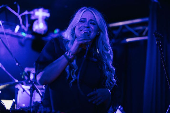 Lítið mál að trylla lýðinn kasólétt Dóra Júlía Agnarsdóttir skrifar 13. nóvember 2025 20:01 Tónlistarkonan Inki gerði sér lítið fyrir og tróð upp á Airwaves komin 39 vikur á leið. Juliette Rowland Það var rífandi stemning á Gauknum á Iceland Airwaves-hátíðinni síðastliðna helgi þegar tónlistarkonan Ingibjörg Friðriksdóttir, betur þekkt sem Inki, steig á svið, „aðeins“ 39 vikna ólétt. Hún naut sín í botn en ætlar þó ekki að gera lítið úr því að undirbúningurinn var þyngri en vanalega. Inki er fædd árið 1989 og útskrifaðist úr tónsmíðum úr Listaháskólanum fyrir rúmum tólf árum. Hún hefur verið virk í tónlistarsenunni allar götur síðan. Á sviðinu með henni á Airwaves voru tveir af þekktari trommuleikurum landsins, Keli úr Agent Fresco og Hössi úr Godchilla/Plastic Gods. Hössi og Keli tróðu upp með Inki.Juliette Rowland „Og til að bæta við smá breskri fágun leikur með okkur vinur minn, Robin Pearkes, á elektróník og gítar,“ kynnti Inki á sviðinu. Blaðamaður ræddi við hana um þetta eftirminnilega gigg. Hvernig var að koma fram á Airwaves og hvernig var stemningin? Ég fann það strax og ég steig á svið að andrúmsloftið í salnum var frábært, og það var mikið af erlendum gestum sem var gaman að sjá. Ég er heppin með vini, svo það var líka vel peppaður stuðningshópur mættur. Þau voru þó, auðvitað, með pott í gangi um í hvaða lagi ég myndi missa vatnið. Ég benti því öðrum tónleikagestum á að það væri hægt að henda inn veðmáli. Ég komst í gegnum tónleikana, svo ég hlýt að hafa unnið það veðmál. Inki komst í gegnum tónleikana án þess að missa vatnið.Juliette Rowland Hvernig gengur með meðgönguna og hvernig leið þér á sviðinu? Mér fannst það ekki mikið mál að spila sjálfa tónleikana. Auðvitað var ég andstutt, en ég nýt mín vel á sviðinu. Litla skottan í bumbunni kann best við sig þegar ég er á mikilli hreyfingu, svo hún var alsæl. Ég ætla samt ekki að gera lítið úr því að það er svakalega þungt að vera komin svona langt á leið og standa í öllum undirbúningnum. Það er mikið rót í kringum allar þungu græjurnar og þrátt fyrir að allir hafi verið vilja gerðir til að aðstoða mig og bera hluti þá er ég aldrei að fara að sitja og horfa á aðra vinna á meðan ég er með tærnar upp í loftið. Á tónleikadeginum voru lappirnar orðnar vel bjúgaðar, svo ég komst ekki lengur í neina skó. Ég kom því fram berfætt. Ég tók eftir manni sem var að taka myndir af tánum á mér, líklega haldið að þessi tásusýning væri listrænn gjörningur, þegar þetta var í raun ekkert nema ill nauðsyn. Inki var á tánum af illri nauðsyn, ekki sem hluta af gjörningi.Juliette Rowland Heldurðu að barnið feti tónlistarbrautina eins og móðirin? Ég hafði smá áhyggjur þegar við byrjuðum æfingaferlið að tveir trommuleikarar og þungur bassi gætu sett mig af stað. En svo var ekki. Ef eitthvað, þá róast hún við hávaðann. Líklega er þetta lítill þungarokkari, pabbinn yrði allavega ekki ósáttur við það. Litla krílið nýtur sín vel í hávaða og fjöri.Juliette Rowland Á Airwaves bauðstu upp á mjög sérstakt verkefni, Póstkort frá Iceland Airwaves. Gætir þú útskýrt það? Mig langaði til að þessir tónleikar yrðu einstakir fyrir þá sem myndu mæta, svo ég var lengi að velta fyrir mér hvað ég gæti gert sem yrði eftirminnilegt og öðruvísi. Ég er að gefa út plötu sem heitir Locally Grown, þar sem öll lögin byggja á einstökum mannlegum samskiptum og því hvernig hversdagsleg augnablik geta orðið áhrifamikil. Allt frá því hvernig spákona ráðlagði mér að hætta að pæla í framtíðinni, til óvæntra samtala við hverfisfyllibittu. Hvernig við deilum augnablikum og tengjumst var kveikjan að hugmyndinni Póstkort frá Iceland Airwaves. Ég bauð gestum að skrifa sérútbúin póstkort frá tónleikunum og ég sendi þau síðan fyrir þau. Þetta var tækifæri til að deila þessari stund á annan hátt en í gegnum samfélagsmiðla. Að fá handskrifað póstkort frá vini er eitthvað svo miklu persónulegra en að skrolla í gegnum samfélagsmiðla. Póstkort from Iceland Airwaves var skemmtilegt verkefni.Juliette Rowland Hvað er á döfinni? Ég hitaði upp fyrir Airwaves með því að gefa út fyrstu fimm lögin af nýju plötunni minni. Það síðasta, To Build a Home, kom út rétt fyrir hátíð og var lokalag tónleikanna. Ég byrjaði að gefa út lögin í september, en eftir að það fyrsta, Islander, kom út hafði samband við mig amerískur umboðsmaður sem fylgist náið með íslensku tónlistarsenunni. Hann er núna að vinna með mér að útgáfunni, mætti á Airwaves og var að „bransast“ fyrir mína hönd. Ég er mjög forvitin að sjá hvað kemur út úr því. En fyrst og fremst er það á döfinni að fæða barn á næstu dögum og ég hlakka mjög mikið til að kynnast henni. Hún er mikill spriklari og ég finn það á mér að hún verður ótrúlega skemmtilegur karakter. Það var mikið stuð og stemning á tónleikunum.Juliette Rowland Mest lesið Kastaði sér niður fimmtán stiga: „Marinn, þjáður og aumkunarverður“ Lífið „Mjög pirruð út í hvort annað eftir frumsýninguna“ Lífið Ölgerðin lítur Orkutal „öfgahægrisins“ alvarlegum augum Lífið Lögmálið um lítil typpi Lífið „Get ekki hætt að hlusta og gráta“ Lífið „Konan hans hlýtur að taka á honum þegar hún heyrir þetta“ Lífið Dansandi bræður slá í gegn á stóra sviðinu Lífið Sérstök og sjaldgæf íslensk nöfn: „Vitanlega var mér strítt“ Lífið Fagnar fimmtugsafmæli með fyrstu tónleikum Ampop í átján ár Tónlist Blondie verður stjarnan á RIFF um helgina Lífið Fleiri fréttir Lítið mál að try