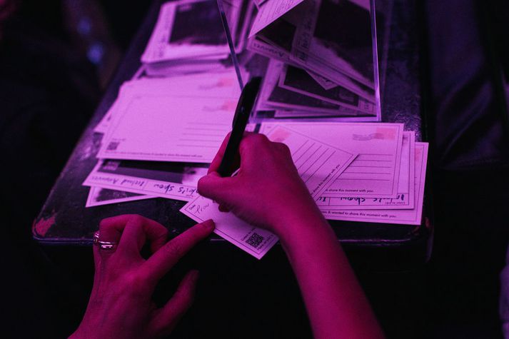 Inki er fædd árið 1989 og útskrifaðist úr tónsmíðum úr Listaháskólanum fyrir rúmum tólf árum. Hún hefur verið virk í tónlistarsenunni allar götur síðan. Á sviðinu með henni á Airwaves voru tveir af þekktari trommuleikurum landsins, Keli úr Agent Fresco og Hössi úr Godchilla/Plastic Gods. Hössi og Keli tróðu upp með Inki.Juliette Rowland „Og til að bæta við smá breskri fágun leikur með okkur vinur minn, Robin Pearkes, á elektróník og gítar,“ kynnti Inki á sviðinu. Blaðamaður ræddi við hana um þetta eftirminnilega gigg. Hvernig var að koma fram á Airwaves og hvernig var stemningin? Ég fann það strax og ég steig á svið að andrúmsloftið í salnum var frábært, og það var mikið af erlendum gestum sem var gaman að sjá. Ég er heppin með vini, svo það var líka vel peppaður stuðningshópur mættur. Þau voru þó, auðvitað, með pott í gangi um í hvaða lagi ég myndi missa vatnið. Ég benti því öðrum tónleikagestum á að það væri hægt að henda inn veðmáli. Ég komst í gegnum tónleikana, svo ég hlýt að hafa unnið það veðmál. Inki komst í gegnum tónleikana án þess að missa vatnið.Juliette Rowland Hvernig gengur með meðgönguna og hvernig leið þér á sviðinu? Mér fannst það ekki mikið mál að spila sjálfa tónleikana. Auðvitað var ég andstutt, en ég nýt mín vel á sviðinu. Litla skottan í bumbunni kann best við sig þegar ég er á mikilli hreyfingu, svo hún var alsæl. Ég ætla samt ekki að gera lítið úr því að það er svakalega þungt að vera komin svona langt á leið og standa í öllum undirbúningnum. Það er mikið rót í kringum allar þungu græjurnar og þrátt fyrir að allir hafi verið vilja gerðir til að aðstoða mig og bera hluti þá er ég aldrei að fara að sitja og horfa á aðra vinna á meðan ég er með tærnar upp í loftið. Á tónleikadeginum voru lappirnar orðnar vel bjúgaðar, svo ég komst ekki lengur í neina skó. Ég kom því fram berfætt. Ég tók eftir manni sem var að taka myndir af tánum á mér, líklega haldið að þessi tásusýning væri listrænn gjörningur, þegar þetta var í raun ekkert nema ill nauðsyn. Inki var á tánum af illri nauðsyn, ekki sem hluta af gjörningi.Juliette Rowland Heldurðu að barnið feti tónlistarbrautina eins og móðirin? Ég hafði smá áhyggjur þegar við byrjuðum æfingaferlið að tveir trommuleikarar og þungur bassi gætu sett mig af stað. En svo var ekki. Ef eitthvað, þá róast hún við hávaðann. Líklega er þetta lítill þungarokkari, pabbinn yrði allavega ekki ósáttur við það. Litla krílið nýtur sín vel í hávaða og fjöri.Juliette Rowland Á Airwaves bauðstu upp á mjög sérstakt verkefni, Póstkort frá Iceland Airwaves. Gætir þú útskýrt það? Mig langaði til að þessir tónleikar yrðu einstakir fyrir þá sem myndu mæta, svo ég var lengi að velta fyrir mér hvað ég gæti gert sem yrði eftirminnilegt og öðruvísi. Ég er að gefa út plötu sem heitir Locally Grown, þar sem öll lögin byggja á einstökum mannlegum samskiptum og því hvernig hversdagsleg augnablik geta orðið áhrifamikil. Allt frá því hvernig spákona ráðlagði mér að hætta að pæla í framtíðinni, til óvæntra samtala við hverfisfyllibittu. Hvernig við deilum augnablikum og tengjumst var kveikjan að hugmyndinni Póstkort frá Iceland Airwaves. Ég bauð gestum að skrifa sérútbúin póstkort frá tónleikunum og ég sendi þau síðan fyrir þau. Þetta var tækifæri til að deila þessari stund á annan hátt en í gegnum samfélagsmiðla. Að fá handskrifað póstkort frá vini er eitthvað svo miklu persónulegra en að skrolla í gegnum samfélagsmiðla. Póstkort from Iceland Airwaves var skemmtilegt verkefni.Juliette Rowland Hvað er á döfinni? Ég hitaði upp fyrir Airwaves með því að gefa út fyrstu fimm lögin af nýju plötunni minni. Það síðasta, To Build a Home, kom út rétt fyrir hátíð og var lokalag tónleikanna. Ég byrjaði að gefa út lögin í september, en eftir að það fyrsta, Islander, kom út hafði samband við mig amerískur umboðsmaður sem fylgist náið með íslensku tónlistarsenunni. Hann er núna að vinna með mér að útgáfunni, mætti á Airwaves og var að „bransast“ fyrir mína hönd. Ég er mjög forvitin að sjá hvað kemur út úr því. En fyrst og fremst er það á döfinni að fæða barn á næstu dögum og ég hlakka mjög mikið til að kynnast henni. Hún er mikill spriklari og ég finn það á mér að hún verður ótrúlega skemmtilegur karakter. Það var mikið stuð og stemning á tónleikunum.Juliette Rowland