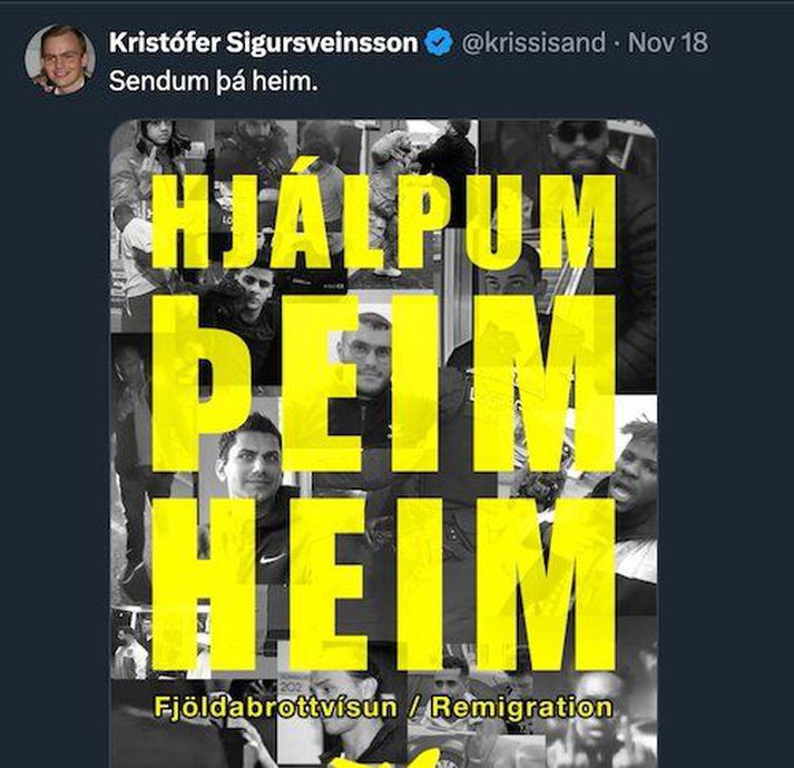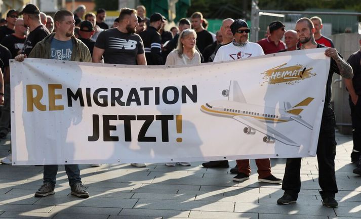 Þegar fjarhægriflokkurinn Valkostur fyrir Þýskaland (AfD) háði kosningabaráttu sína í aðdraganda þingkosninga í febrúar var slagorðið „endurflutningar“ (þ./e. remigration) áberandi. Fulltrúar hans dreifðu meðal annars „flugmiðum“ aðra leiðina frá Þýskalandi. Það þóttu nýmæli að Alice Weidel, leiðtogi AfD, veldi að nota hugtakið því það hafði fram að því verið tengt við ystu hægri öfgar og ekki talið til brúks í siðuðum samræðum. „Ef þetta á að heita endurflutningar þá er það það sem það verður: endurflutningar,“ sagði Weidel við stuðningsmenn sína á fundi í Riesa í janúar þar sem hún boðaði fjöldabrottvísanir innflytjenda frá Þýskalandi. Alice Weidel er leiðtogi Valkosts fyrir Þýskaland. Þýska leyniþjónustan hefur skilgreint undirdeildir flokksins sem öfgasamtök og hugðist stimpla flokkinn sjálfan það fyrr á þessu ári. Slík skilgreining veitir leyniþjónustunni heimild til þess að fylgjast náið með starfsemi samtaka.Getty Aðeins ári áður hafði Weidel reynt að sverja af sér endurflutningastimpilinn eftir fréttir um að fulltrúar flokksins hefðu setið fund með austurrískum fyrrum nýnasista sem lýsti meðal annars hugmyndum um að vísa ríkisborgurum sem hefðu ekki aðlagast samfélaginu úr landi. Breiðist út um vesturlönd Mótmæli brutust víða út eftir fréttirnar af því samkrulli AfD-liða við öfgamanninn. Slíkir stórfelldir fólksflutningar á grundvelli þjóðernis eða kynþáttar eru enda sérstaklega viðkvæmt mál í Þýskalandi í ljósi sögu nasista og helfarar þeirra gegn gyðingum. Allt ætlaði um koll að keyra í Þýskalandi þegar greint var frá því að náinn ráðgjafi Alice Weidel, leiðtoga Valkosts fyrir Þýskaland (AfD), hefði setið fund með Martin Sellner, austurrískum öfgahægrimanni, ásamt þýskum og austurrískum nýnasistum og öðrum öfgamönnum í janúar í fyrra. Á fundinum ræddi Sellner hugmyndir sínar um að reka milljónir innflytjenda frá Þýskalandi, þar á meðal þýska ríkisborgara af erlendum uppruna. Talsmenn AfD neituðu því að hugmyndir Sellner væru opinber stefna flokksins og héldu því fram að flokksmenn sem sátu fundinn hefðu verið á eigin vegum. Ári síðar voru „endurflutningar“ á meðal slagorða flokksins en Weidel hélt því fram að þeir ættu aðeins að ná til þeirra sem dveldu ólöglega í Þýskalandi. Útgáfur af endurflutningum fólks af erlendum uppruna eru nú engu að síður orðnar hluti af stefnuskrám og málflutningi fjarhægriafla víða í vestrænum ríkjum. Í Bretlandi aðhyllist Umbótaflokkur Nigels Farage, sem hefur mælst vinsælasti stjórnmálaflokkur landsins um margra mánaða skeið, hugmyndir um að vísa hundruð þúsunda innflytjenda og hælisleitenda úr landi. Maður heldur á spjaldi sem á stendur „Allir hata nasista“ við Brandenborgarhliðið í Berlín í janúar í fyrra. Mótmælin brutust út í kjölfar frétta um að fulltrúar AfD hefðu tekið þátt í umræðum um að vísa innflytjendum úr landi, jafnvel þeim sem væru með þýskan ríkisborgararétt.Vísir/EPA Á Spáni gengur Vox-flokkurinn enn lengra og vill vísa úr landi bæði nýjum innflytjendum og fólki sem hefur hlotið ríkisborgararétt í landinu ef það stenst ekki mat flokksins á aðlögun að spænsku samfélagi. Repúblikanaflokkurinn í Bandaríkjunum boðaði fjöldabrottvísanir útlendinga sem dvelja ólöglega í landinu og þeirra sem hafa brotið af sér, jafnvel milljóna manna, fyrir forseta- og þingkosningar í fyrra. Fjöldi saklausra bandarískra ríkisborgara hefur lent í klóm innflytjendayfirvalda í rassíum þeirra á undanförnum mánuðum. Nátengt samsæriskenningu um „útskiptin miklu“ Hugtakið endurflutningar er sprottið úr svonefndri identitarian-hreyfingu í Evrópu sem ruddi sér rúms upp úr aldamótum. Hún boðar útgáfu af hvítri þjóðernishyggju þar sem hvítt fólk er sagt eiga undir högg að sækja vegna fjölgunar innflytjenda og fjölmenningar- og alþjóðahyggju. Grímuklæddir menn sem tilheyra öfgahægrihópi sem kallar sig „Bretland fyrst“ í kröfugöngu í nafni „endurflutninga“ í Manchester í ágúst.Vísir/EPA Náin tengsl eru þannig á milli endurflutninganna og samsæriskenningarinnar um útskiptin miklu (e. Great Replacement Theory) sem fjarhægrimenn beggja vegna Atlantsála halda nú á lofti. Kenningin um útskiptin miklu gengur út á að markvisst sé unnið að því að „skipta“ hvítum mönnum út fyrir innflytjendur af öðrum uppruna í vestrænum samfélögum. Gyðingar eru stundum sagðir standa að þessum útskiptum. Snorri Másson, varaformaður og þingmaður Miðflokksins, hefur gefið útskiptunum miklu undir fótinn og lýst henni sem tölfræðilegri staðreynd sem sé afleiðing stefnu íslenskra stjórnvalda í innflytjendamálum. „Íslendingar“ verði að óbreyttu að minnihlutahópi í landinu. „Ég er ekki að segja að það sé búið að gera þetta en ef þetta verður niðurstaðan þegar öll kurl verða komin til grafar mun þetta hvorki hafa verið kenning né neitt slíkt heldur bara eitthvað sem gerðist,“ sagði Snorri um kenninguna í viðtali við Vísi í síðasta mánuði. Með Íslending á mynd af þeim sem eigi að senda „heim“ Nú virðast fulltrúar Miðflokksins einnig byrjaðir að tileinka sér hugmyndina um endurflutninga útlendinga frá landinu. Kristófer Máni Sigursveinsson, annar varaþingmaður flokksins í Suðurkjördæmi og formaður ungliðahreyfingarinnar Gullbrár, birti mynd þar sem stóð í texta „Fjöldabrottvísun/remigration“ í færslu á samfélagsmiðlinum X 18. nóvember. Undir fyrirsögninni „Hjálpum þeim heim“ voru myndir af karlmönnum af erlendu bergi brotnir en einnig að minnsta kosti einn íslenskur ríkisborgari með að minnsta kosti eitt