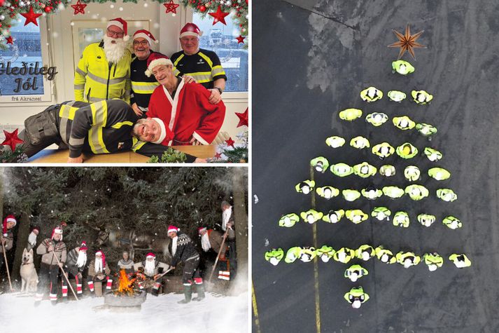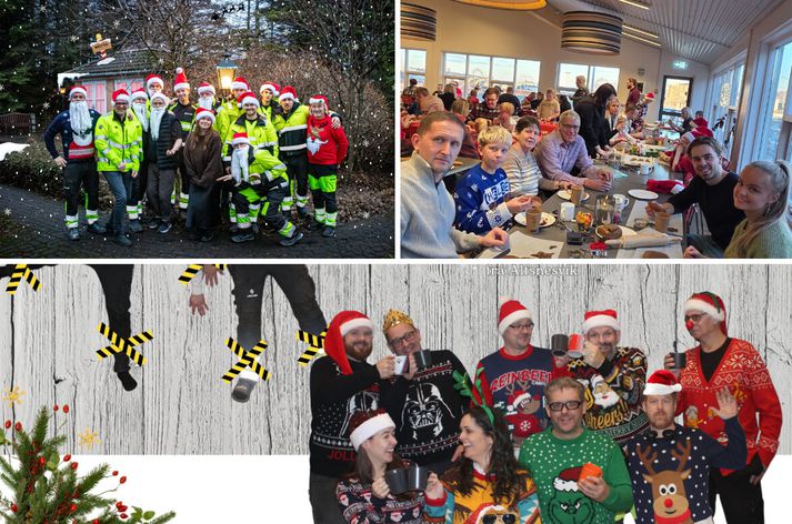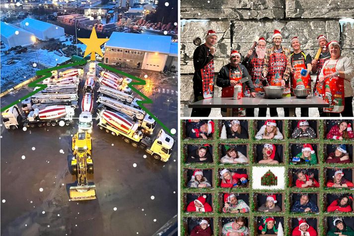 Þannig er það til dæmis hjá starfshópi eignarhaldsfélagsins Hornsteins, sem rekur BM Vallá og hið nýsameinaða félag Björgun Sement. Í hópnum starfa 200 manns frá 17 þjóðernum. Starfstöðvarnar eru í Reykjavík, Garðabæ, á Reykjanesi, Akranesi og Akureyri og eins og gefur að skilja geta verkefnin einfaldlega leitt suma starfsmenn út um allt ef svo má segja. Jólastemningin er þó allsráðandi og ótrúlega margar skemmtilegar hefðir og viðburðir í aðdraganda jóla. Og oftar en ekki einstaklega skemmtilegur húmor! Enda er oft hlegið í spjallinu við Helgu Fjólu Sæmundsdóttur, framkvæmdastjóra mannauðssviðs Hornsteins. Sem á þessum tíma árs er af mörgum kölluð: Jóla Fjóla. Í Atvinnulífinu í þessari viku heimsækjum við vinnustaði og fáum að heyra hvað verið er að gera, til að efla jólaandann og aðventustemninguna. Helga segir með ólíkindum að upplifa ár eftir ár hvernig deildirnar gefa ímyndunaraflinu lausan tauminn og ná síðan að raungera hugmyndirnar þannig að úr verða frábærar jólamyndir. Jólamyndin og jólastjarnan Það er heilmargt gert hjá Hornsteini sem margir vinnustaðir kannast við að gera á aðventunni. Til dæmis er jólapeysudagurinnog jólavinaleikur. En það eru líka nokkrar hefðir sem eru einstaklega skemmtilegar og jafnvel mjög rótgrónar og gamlar. Þar ber hæst að nefna jólastjörnuna svokölluðu á Akranesi. Sem í 66 ár hefur verið sett upp á sementsílóin sem eru 30 metrar á hæð. „Stundum erum við meira að segja spurð hvort við séum ekki að fara að setja stjörnuna upp,“ segir Helga og hlær. Gott dæmi um hvernig bæjarbúar gera ráð fyrir stjörnunni. Jólastjarnan á sementsílóin á Akranesi hefur verið sett upp í 66 ár og því löngu orðin að föstum punkti í tilveru bæjarbúa fyrir jólin. Sementsílóin ru 30 metrar á hæð og því ekkert hlaupið að því að koma stjörnunni upp. Eitt metnaðarfyllsta verkefni starfshópsins er þó án efa jólamyndakeppnin. En hún fer þannig fram að hver deild eða svið tekur sérstaka jólamynd, sem dómnefnd síðan velur úr þannig að bikar er veittur fyrir flottustu jólamyndina ár hvert. „Það er enginn smá metnaður settur í þetta og ég myndi segja að listræna sköpunin sem kemur fram í þessu verkefni sé algjörlega ótrúleg,“ segir Helga og bætir við: Fólk fer alla leið: Jólamyndirnar eru allt frá því að fólk sé klætt í snjókarlabúninga eða Grinch yfir í að steypubílum sé raðað upp eins og jólatré.“ Helga segir stemninguna í kringum jólamyndina alltaf mikla. „Það kemur mér alltaf svo skemmtilega á óvart hvað fólk er duglegt að láta ímyndunaraflið verða að veruleika og búa til ótrúlega flotta gullmola sem þessar myndir eru. Fyrir utan stemninguna sem skapast í kringum þetta því þessar jólamyndir eru einfaldlega gleðiskot á aðventunni.“ Hjáfyrirtækinu starfa 200 manns frá 17 þjóðernum og það víðsvegar um landið. Þó næst að skapa jólastemningu sem er sameinuð, meðal annars með jólamyndakeppninni sem allir taka þátt í. Að kenna íslensku siðina Með karllægan vinnustað eins og byggingageirinn er, segir Helga leiðina að starfsmönnum alltaf nokkuð greiða þegar kemur að góðum mat. „Enda eru störf margra þannig að okkar fólki veitir ekkert af því að borða vel.“ Jólamatur í aðdraganda jólanna er því stundum á boðstólum en fastur liður á Þorláksmessu er að sjálfsögðu skatan. „Við höfum haldið í þessa gömlu hefð,“ segir Helga en viðurkennir að með 17 þjóðerni sé það nú alls ekki allra að vilja íslensku skötuna. „Við pössum auðvitað alltaf upp á að annað sé á boðstólum líka, þannig að til viðbótar við skötuna er saltfiskur á boðstólum.“ Það er alveg húmor í strákunum enda segir Helga oft stutt í prakkarastrikin, til dæmis í jólavinaleiknum. Þó allt í góðu. Gimsteinarnir, félag fyrrum starfsmanna, er alltaf boðið á viðburði og stríða Helgu með því að segjast vera í lífslokameðferð hjá henni.Vísir/Vilhelm En hvernig finnst starfsmönnunum sem eru erlendis frá þessir íslensku siðir? „Það getur reyndar margt skemmtilegt komið út úr því að kynna íslensku siðina okkar fyrir starfsmönnunum sem koma annars staðar frá og mér er til dæmis minnisstætt eitt dæmi sem tengist íslensku jólasveinunum,“ svarar Helga og bætir við: „Við notum nefnilega Bara tala appið til að kenna íslenskuna og í því appi vorum við eitt sinn með verkefni sem kynnti íslensku jólasveinana þrettán.“ Þessu tengt, kom starfsmaður til Helgu og þakkaði sérstaklega fyrir. Sagði að í íslenskukennslunni hefði jólasveinakynningin staðið upp úr. „Sem kom mér svo skemmtilega á óvart þegar hann nefndi það. En þegar við förum samt að hugsa um það: Auðvitað er stór áskorun í því falin að flytja til Íslands og verða kannski pabbi hér en þekkja ekki þessa siði eða séríslensku sögur og venjur, eins og að eiga þrettán jólasveina.“ Það er áskorun að skapa sameiginlega stemningu þegar þjóðernin eru 17 talsins og ekki allir þekkja íslenska siði og venjur; til dæmis skötuna eða jólasveinana þrettán. En Helga segir skemmtilegt að kenna siðina og margt sé hægt að gera án þess að tungumálið skipti miklu máli. Helga segir vissa áskorun felast í því fyrir vinnustaði, að vera með fjölbreyttan hóp þar sem menningarheimar geta verið afar ólíkir. Hlutfall starfsmanna af erlendum uppruna er 57% en Helga segir svo margt hægt að gera, sem kallar ekki á neina tungumálakunnáttu. „Það mættu til dæmis yfir 100 manns á piparkökubaksturinn sem við héldum um daginn og er hluti af dagskránni okkar fyrir jólin. Piparkökubaksturinn er gott dæmi um skemmtilegan viðburð þar sem fjölskyldur koma og baka