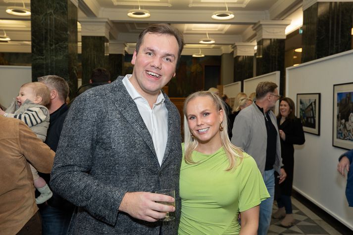 Sigurður Sævar flutti fyrr á árinu til Haag í Hollandi þar sem hann starfar sem listamaður. Hann lauk námi úr konunglegu hollensku listaakademínunni í Haag sumarið 2023. Nú um þessar mundir stendur yfir einkasýning á verkum hans í Hollandi. Sýningin í Landsbankahúsinu er opin alla daga frá klukkan 15-18 og er síðasti sýningardagur á Þorláksmessu 23. desember. Margt var um manninn í gær og fjöldi nafntogaðra meðal gesta. Hér fyrir neðan má sjá myndir frá opnuninni. Listamaðurinn Sigurður Sævar Magnúsarson ásamt kærustu sinni Guðbjörgu Ægisdóttur.Bent Marinósson Róbert Róbertsson, Hallgrímur Jónasson, Þorri Hrafn Róbertsson og Einar Bárðarson. Bent Marinósson Mæðgurnar Hafdís Jónsdóttir og Birgitta Líf Björnsdóttir með Pöttru S.Bent Marinósson Hrönn Þorgrímsdóttir,María Ben Erlingsdóttir, Dísa Edwards, Bryndís Guðmundsdóttir, Margrét Kara Sturludóttir og Anna María Ævarsdóttir.Bent Marinósson Ari Guðjónsson og Bogi Nils Bogason.Bent Marinósson Helga Ólafsdóttir, Soffía Arngrímsdóttir og Íris Einarsdóttir.Bent Marinósson Thelma Dögg Pedersen og Snorri Björn Sturluson.Bent Marinósson Seltirningurinn Árni Helgason kampakátur með listamanninum.Bent Marinósson Hildur Þórarinsdóttir, Guðmundur Viðar Harðarson og Hörður Ægisson. Í bakgrunni glittir í Benedikt S. Benediktsson, framkvæmdastjóra Samtaka Verslunar og þjónustu.Bent Marinósson Margrét Elíasdóttir og Hermann Hauksson. Kristján Óskarsson og Anna Guðmundsdóttir.Bent Marinósson Menn í góðum gír.Bent Marinósson