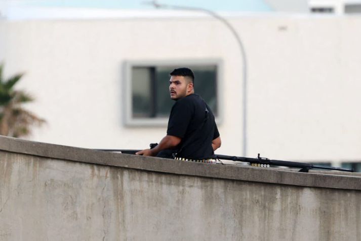 Rabbíni drepinn í árásinni Jón Ísak Ragnarsson og Hallgerður Kolbrún E. Jónsdóttir skrifa 14. desember 2025 11:53 Ellefu voru drepnir í árásinni auk annars árásarmannsins. AP Photo/Mark Baker Minnst tólf eru látnir eftir skotárás á gyðingahátíð á Bondi strönd á útjaðri Sydney-borgar í Ástralíu í dag. Einn grunaður árásarmaður er látinn og annar hefur verið handtekinn. Í myndböndum sem eru í dreifingu á samfélagsmiðlum sjást minnst tveir svartklæddir menn skjóta ítrekað að ströndinni frá bílastæði, en sögur fara af því að hleypt hafi verið af í kringum 50 skotum. Lögregla kunni deili á árásarmanninum Á blaðamannafundi lögregluyfirvalda segir að málið sé rannsakað sem hryðjuverk, en árásinni hafi verið sérstaklega beint að gyðingasamfélaginu í Sydney. Annar árásarmaðurinn sé látinn og hinn sé alvarlega slasaður í haldi lögreglunnar. Minnst tveir lögreglumenn eru einnig alvarlega slasaðir, og voru í skurðaðgerð á sjúkrahúsi þegar blaðamannafundurinn stóð yfir. Minnst 29 hafa verið fluttir á sjúkrahús til aðhlynningar. Mynd af öðrum árásarmanninum sem er í dreifingu á samfélagsmiðlum. Mal Lanyon lögregustjóri í Nýju Suður Wales segir að lögreglan hafi þekkt til eins árásarmannsins, en hún hafi vitað mjög lítið um hann. „Það þýðir ekki að það hafi legið fyrir að af honum stæði einhver ógn. Ef við hefðum haft einhverja vitneskju um það, að það væri yfirstandandi hætta vegna þessarar hátíðar eða annað slíkt, hefðum við að sjálfsögðu gert viðeigandi ráðstafanir.“ „Þetta er skelfilega sorglegur atburður, og það er ekki tímabært að fara benda fingrum. Ítarleg rannsókn verður gerð á þessu öllu saman,“ segir Mal Lanyon. Fundu sprengjur í bíl og sögur af þriðja byssumanni Á blaðamannafundinum kom fram að árásarmennirnir hafi verið vopnaðir öflugum skotvopnum, en einnig hafi heimatilbúin sprengja fundist í bíl látna árásarmannsins. „Skömmu eftir skotárásina fundu lögreglumenn bíl í Campbell Parade hjá Bondi ströndinni, og fundu það sem við höldum að séu nokkrar heimatilbúnar sprengjur,“ segir Mal Lanyon. Búið er að aftengja sprengjuna og fjarlægja af vettvangi. Umfjöllun ástralska ríkissjónvarpsins í beinni útsendingu: Yfirvöld segja að fyrir liggi að árásarmennirnir hafi verið minnst tveir, en mögulega hafi fleiri verið að verki. Leit standi enn yfir að hugsanlegum samverkamönnum. Aðalrabbíninn í sýnagógunni í Sydney segir að hann hafi heyrt frá fólki á svæðinu að byssumennirnir hafi verið þrír. „Það sem ég heyrði frá fólki sem var á svæðinu, þá sá hann tólf manns deyja. Einn þeirra var góður vinur minn og samstarfsfélagi, rabbíni Eli Schlanger, maður sem var fullur ljóss, orku og gaf samfélaginu okkar mikið.“ „Þeir byrjuðu að skjóta þegar verið var að kveikja á Menorah.“ Lögregluyfirvöld segja að umfangsmikil leit standi enn yfir á svæðinu, þannig að ef þrír árásarmenn hafi verið að verki muni sá þriðji finnast.