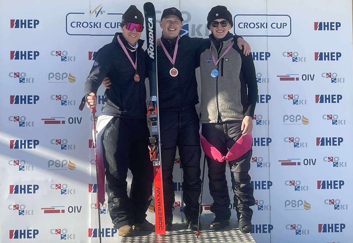 Gauti Guðmundsson fagnaði sigri en hann kom í mark á tímanum 2:14,10. Bjarni Þór Hauksson varð annar, einum hundraðshluta úr sekúndu hægari en Gauti. Matthías Kristinsson varð svo þriðji á tímanum 2:14,25. Þeir félagar voru ekki eins snöggir í fyrri ferðinni en skíðuðu frábæra seinni ferð og komust á verðlaunapallinn. Árangurinn í dag var mikilvægur fyrir möguleika þeirra á þátttökurétti á Vetrarólympíuleikunum en 18. janúar er síðasti dagurinn til að skora stig inn á Ólympíulistann. Á morgun keppa þeir í svigi í Gaal, áður en liðið heldur til Rogla í Slóveníu, þar sem keppt verður í tveimur svigmótum dagana 17. og 18. janúar. Ísland á nú þegar eitt sæti á leikunum fyrir karlmann og eitt fyrir konu í alpagreinum, og árangurinn í Gaal og Rogla mun skipta sköpum fyrir þá. Jón Erik Sigurðsson og Tobias Hansen voru einnig á meðal keppenda í Gaal en Jón Erik hafnaði í 7. sæti og Tobias í 17. sæti. Úrslit mótsins í Gaal í Austurríki má finna hér. Íslendingarnir unnu gull, silfur og brons. „Frábært er að sjá hvernig markviss vinna og öflugt prógram landsliðsþjálfaranna, Hauks Þórs Bjarnasonar og Marko Špoljaric, skilar sér í stöðugum og sterkum árangri hjá liðinu“ segir á vef Skíðasambands Íslands. Landslið Íslands í alpagreinum.