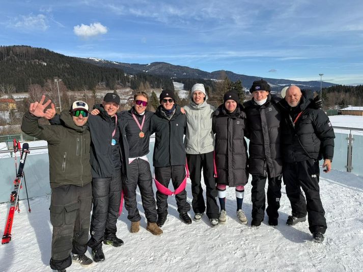 Íslendingar unnu gull, silfur og brons í Austurríki Ágúst Orri Arnarson skrifar 14. janúar 2026 18:00 Sáttir og sælir sigurvegarar Croski Cup. Karlalandslið Íslands í alpagreinum átti frábæran keppnisdag í Gaal í Austurríki og hreppti öll verðlaunin í stórsvigi. Gauti Guðmundsson fagnaði sigri en hann kom í mark á tímanum 2:14,10. Bjarni Þór Hauksson varð annar, einum hundraðshluta úr sekúndu hægari en Gauti. Matthías Kristinsson varð svo þriðji á tímanum 2:14,25. Þeir félagar voru ekki eins snöggir í fyrri ferðinni en skíðuðu frábæra seinni ferð og komust á verðlaunapallinn. Árangurinn í dag var mikilvægur fyrir möguleika þeirra á þátttökurétti á Vetrarólympíuleikunum en 18. janúar er síðasti dagurinn til að skora stig inn á Ólympíulistann. Á morgun keppa þeir í svigi í Gaal, áður en liðið heldur til Rogla í Slóveníu, þar sem keppt verður í tveimur svigmótum dagana 17. og 18. janúar. Ísland á nú þegar eitt sæti á leikunum fyrir karlmann og eitt fyrir konu í alpagreinum, og árangurinn í Gaal og Rogla mun skipta sköpum fyrir þá. Jón Erik Sigurðsson og Tobias Hansen voru einnig á meðal keppenda í Gaal en Jón Erik hafnaði í 7. sæti og Tobias í 17. sæti. Úrslit mótsins í Gaal í Austurríki má finna hér. Íslendingarnir unnu gull, silfur og brons. „Frábært er að sjá hvernig markviss vinna og öflugt prógram landsliðsþjálfaranna, Hauks Þórs Bjarnasonar og Marko Špoljaric, skilar sér í stöðugum og sterkum árangri hjá liðinu“ segir á vef Skíðasambands Íslands. Landslið Íslands í alpagreinum. Skíðaíþróttir Mest lesið Guðmundur svekktur eftir sniðgöngu: „Finnst þetta skammarlegt“ Handbolti Hlaupabrettið kemst ekki upp í hraða Baldvins Sport Skotinn til bana í jarðarför móður sinnar Fótbolti Lindgren segir að þetta verði ár Íslands Handbolti Eitt félag hefur grætt mest á mistökum VAR Enski boltinn Skipti Orra inn og út á nokkrum mínútum: „Óásættanlegt“ Fótbolti Mætum „Napóleon“ og lærisveinum hans í fyrsta leik á EM í handbolta Handbolti Danir voru líka að hugsa um að ráða Dag Handbolti Meiðslamartröð Orra um að kenna en ekki leiðinlegum þjálfara Fótbolti Ungverski línumaðurinn verður ekki með á EM Handbolti Fleiri fréttir Mané skaut Senegal í úrslit en Salah sást varla Grindavík - Njarðvík | Toppslagur í HS Orku-höllinni Ungverski línumaðurinn verður ekki með á EM Íslendingar unnu gull, silfur og brons í Austurríki Viktor Bjarki með tvennu í undirbúningi fyrir Meistaradeildina „Allt um þjóðhátíðina í Kristianstad“ Trúin eykst á Suðurnesjum með komu McLaughlin Ásdís Karen fagnaði sigri gegn stórliðinu Blikar farnir að fylla í skörðin Hættur að þjálfa Steelers eftir nítján ár með liðið María í eitt besta lið Svíþjóðar en tekur íslenska landsliðið fram yfir það sænska Ajax fær son Zlatans að láni frá AC Milan Guardiola segir að Haaland sé úrvinda Víkingur og Breiðablik mætast í fyrsta leik Bestu deildarinnar Segir ósanngjarnt að kalla Arsenal „Set Piece FC“ Danir voru líka að hugsa um að ráða Dag Klopp: Brottför Xabi Alonso frá Real Madrid kemur mér ekkert við Sigvaldi ekki hafnað launalækkun Kallar stjörnur Real Madrid „dekraða krakka“ Lindgren segir að þetta verði ár Íslands Leita að þeim sem truflaði Mo Salah með græna ljósinu LIV-stjörnur þekkjast ekki boð PGA-manna Eitt félag hefur grætt mest á mistökum VAR Meiðslamartröð Orra um að kenna en ekki leiðinlegum þjálfara Mætum „Napóleon“ og lærisveinum hans í fyrsta leik á EM í handbolta Eina hlaup ársins sem enginn kláraði Hlaupabrettið kemst ekki upp í hraða Baldvins Breiðablik leitar að leikmönnum en reglur UEFA flækja málin Meðalaldur íslenska landsliðsins einn sá hæsti á EM Skotinn til bana í jarðarför móður sinnar Sjá meira