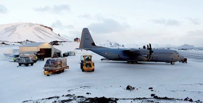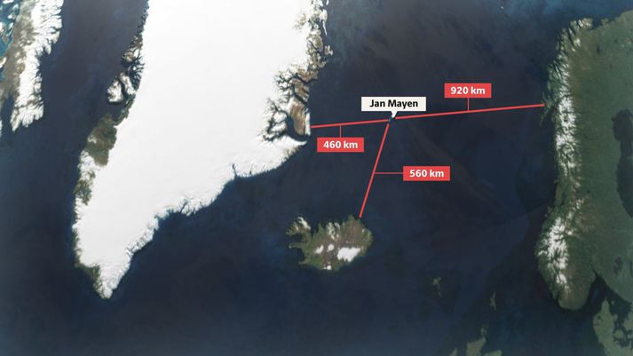 Í kvöldfréttum Sýnar mátti sjá myndir frá Jan Mayen. Stysta fjarlægð milli Noregs og Jan Mayen er 920 kílómetrar en mun styttra er milli Íslands og Jan Mayen eða 560 kílómetrar. Staðsetning Jan Mayen og fjarlægðir til eyjunnar frá Grænlandi, Íslandi og Noregi.grafík/Hjalti Freyr Ragnarsson Það er þó enn styttra milli Jan Mayen og Grænlands, eða 460 kílómetrar, og þegar Norðmenn horfa núna upp á efasemdir um eignarhald Dana á Grænlandi þarf ekki að koma á óvart að þeir vilji treysta yfirráð sín yfir Jan Mayen. Með 2.277 metra hátt eldfjallið Beerenberg sem hæsta punkt líkist þessi eldfjallaeyja einna mest Íslandi. Klettaströndin þar gæti allt eins verið á Snæfellsnesi og svartar sandstrendurnar minna á þær íslensku á Suðurlandi. Hraunin og mosinn á Jan Mayen líta út eins og við værum á Reykjanesskaga og eldgígarnir sömuleiðis. Um tuttugu manns dvelja að jafnaði á Jan Mayen í bækistöð norska hersins.Forsvaret Engin föst búseta er á Jan Mayen en norski herinn er þar með bækistöð þar sem um tuttugu starfsmenn dvelja að jafnaði, flestir á vegum hersins. Þar er einnig flugbraut sem nýtist þegar flytja þarf vistir og mannskap milli Noregs og Jan Mayen. Hercules-flugvél norska hersins á flugvellinum á Jan Mayen.Forsvaret Norska varnarmálaráðuneytið hefur núna kynnt frumvarp þess efnis að lög um herlögreglu verði útvíkkuð til að þau gildi á Jan Mayen. Í samráðsgátt er þó hvergi minnst á Grænlandsmálið heldur vísar ráðuneytið almennt til krefjandi og óvissrar stöðu í öryggismálum. Nái breytingin fram að ganga yrði unnt að koma á fót hernaðarsvæði á Jan Mayen og framfylgja herlögum á eynni, eins og lýst er hér í frétt Sýnar: Jan Mayen var talsvert í fréttum í tengslum við útboð Íslendinga á olíuleit á Drekasvæðinu. Jan Mayen-samkomulag Íslands og Noregs gerir ráð fyrir að ríkin deili með sér nýtingu auðlinda á svokölluðu samvinnusvæði sem nær yfir lögsögu beggja. Árið 2009 heimsótti olíumálaráðherra Noregs eyjuna til að boða þar olíuleit, eins og rifja má upp í þessari frétt: Árið 2011 sendi Olíustofnun Noregs sérsmíðað olíuleitarskip á Jan Mayen-hrygginn, sem fjallað var um hér: