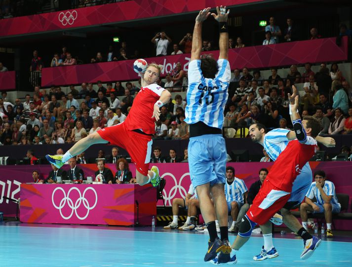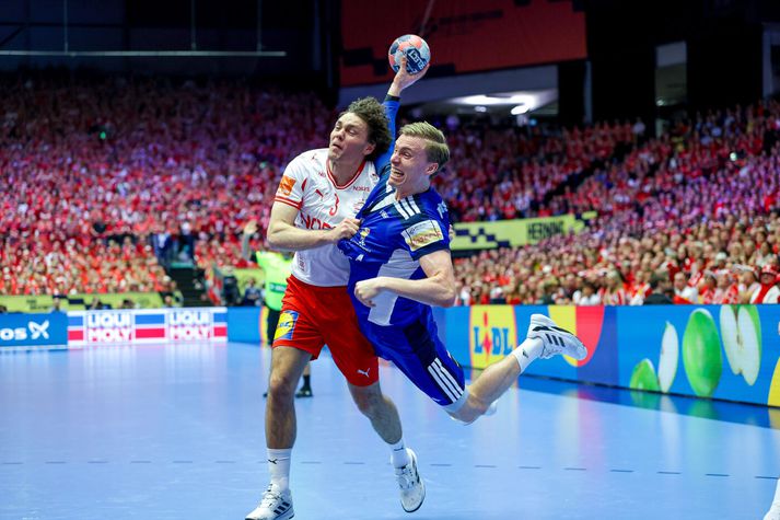 Ísland hafði áður átt sex fulltrúa í úrvalsliði Evrópumóts. Þar af áttu Ólafur Stefánsson (3) og Guðjón Valur Sigurðsson (2) fimm af þeim sex útnefningum en Viktor Gísli Hallgrímsson var sá síðasti á undan Gísla til að komast í úrvalslið EM. Viktor Gísli var í úrvalsliði EM fyrir fjórum árum. Það er enginn miskunn þótt að þú sért besti leikstjórnandi Evrópumótsins.Vísir/Vilhelm Gísli Þorgeir átti magnað Evrópumót og var potturinn og pannan í sóknarleik íslenska liðsins á mótinu. Hann er aðeins annar Íslendingurinn sem er valinn í úrvalslið sem leikstjórnandi og sá fyrsti í sautján og hálft ár eða síðan Snorri Steinn Guðjónsson var valinn í úrvalsliðið á Ólympíuleikunum í Peking 2008. Gísli endaði með 34 mörk og gaf flestar stoðsendingar allra á mótinu eða 62. Gísli kom alls að 96 mörkum með beinum hætti í leikjunum níu eða að meira en tíu mörkum í hverjum leik. Í tölfræði EM eru stoðsendingar bæði stoðsendingar og fiskuð víti sem gefa mörk en enginn fiskaði fleiri víti í mótinu en Gísli. Leikstjórnandi íslenska landsliðsins fiskaði alls 25 víti á þessu móti. Hér fyrir neðan má sjá yfirlit með öllum löndum Gísla sem hafa staðið sig svo vel á stórmóti með íslenska landsliðinu að þeir voru valdir í úrvalslið mótsins. Tímarit.is/Morgunblaðið HM í Svíþjóð 1993 Bjarki Sigurðsson, hægra horn Bjarki var fyrsti Íslendingurinn til að komast í úrvalslið á stórmóti þegar hann var valinn í hornið í úrvalsliði HM 1993. Ísland endaði í áttunda sæti á mótinu og vann aðeins þrjá af sjö leikjum sínum en Bjarki heillaði alla með frábærri frammistöðu sinni í hægra horninu. Valdimar Grímsson, einn markahæsti leikmaðurinn á Ólympíuleikunum ári áður, meiddist fyrir mótið og Bjarki kom sterkur inn í forföllum hans. Tímarit.is/Morgunblaðið HM á Íslandi 1995 Geir Sveinsson, lína Tveimur árum síðar átti Ísland aftur leikmann í úrvalsliði heimsmeistaramóts þegar landsliðsfyrirliðinn Geir Sveinsson var valinn á línuna í liðinu. Íslenska landsliðið olli miklum vonbrigðum og náði aðeins fjórtánda sæti á heimavelli en Geir sprakk úr sem sóknarmaður. Alltaf traustur í vörninni en þarna fór hann líka á kostum í sóknarleiknum, skoraði 26 mörk af línunni og nýttu 74 prósent skota sinna. Tímarit.is/Morgunblaðið HM í Kumamoto 1997 Valdimar Grímsson, hægra horn Ísland átti fulltrúa í úrvalsliðinu á þriðja heimsmeistaramótinu í röð þegar Valdimar var valinn í úrvalsliðið á HM í Japan 1997 þar sem íslenska liðið náði fimmta sætinu sem er enn besti árangur Íslands á heimsmeistaramótinu. Valdimar fór mikinn í hægra horninu og varð þriðji markahæsti leikmaður mótsins með 52 mörk, þar af 18 þeirra úr vítum. Íslenska liðið tapaði aðeins einum af níu leikjum sínum en það var eins marks tap á móti Ungverjum í átta liða úrslitum keppninnar. Timarit.is/Dagblaðið Vísir EM í Svíþjóð 2002 Ólafur Stefánsson, hægri skytta Ólafur varð markakóngur Evrópumótsins í Svíþjóð 2002 þar sem íslenska landsliðið komst í undanúrslit í fyrsta sinn á Evrópumóti og endaði að lokum í fjórða sætinu. Ólafur skoraði 58 mörk og nýtti 54 prósent skota sinna í leikjunum átta en framlag hans lá ekki síst í fjölmörgum stoðsendingum á liðsfélagana. Ólafur varð skráður með 37 stoðsendingar hjá mótshöldurum og kom því samtals að 95 mörkum eða 11,9 að meðaltali í leik sem var það mesta á öllu Evrópumótinu. EPA/REGINA KUEHNE EM í Sviss 2006 Ólafur Stefánsson, hægri skytta Ólafur varð fyrstur Íslendinga til að komast tvisvar sinnum í úrvalslið á stórmóti þegar hann var valinn í úrvalsliðið á Evrópumótinu 2006. Ólafur spilaði frábærlega á mótinu en hann missti af tveimur leikjum, leik tvö og þrjú, eftir að hafa fengið að kenna á því hjá Serbum í fyrsta leik. Ólafur skoraði 33 mörk í fjórum leikjum eða 8,3 að meðaltali í leik og íslenska liðið náði sjöunda sæti. Ólafur var einnig skráður með sautján stoðsendingar og kom því með beinum hætti að 12,5 mörkum í leik. Getty/Vladimir Ry Ólympíuleikar í Peking 2008 ÓL 2008 Ólafur Stefánsson, hægri skytta ÓL 2008 Snorri Steinn Guðjónsson, leikstjórnandi ÓL 2008 Guðjón Valur Sigurðsson, vinstra horn Ísland átti þrjá fulltrúa í úrvalsliði Ólympíuleikanna í Peking 2008 þar sem íslenska landsliðið náði sínum besta árangri frá upphafi á stórmóti. Í fyrsta og eina skiptið komust strákarnir okkar alla leið í úrslitaleikinn þar sem liðið varð að sætta sig við tap á móti Frökkum. Söguleg frammistaða skilaði silfurverðlaunum sem var í fyrsta sinn sem svo fámenn þjóð vinnur verðlaun í liðakeppni á Ólympíuleikum. Þarna voru þeir Ólafur Stefánsson, Snorri Steinn Guðjónsson og Guðjón Valur Sigurðsson heldur betur í essinu sínu og sáu til þess að Ísland átti þrjá af sjö leikmönnum úrvalsliðsins. Ólafur var fyrirliði og leiðtogi liðsins en hann fékk menn til að trúa á það að ná verðlaunum. Hann var þarna í úrvalsliðinu í þriðja sinn á ferlinum eftir að hafa skilað 29 mörkum og 38 stoðsendingum. Snorri Steinn Guðjónsson spilaði stórkostlega við hlið hans í leikstjórnendastöðunni og varð næstmarkahæsti leikmaður mótsins með 48 mörk, þar af 21 úr vítum. Guðjón Valur missti af fyrsta leiknum á mótinu vegna meiðsla en varð engu að síður þriðji markahæsti maður mótsins með 43 mörk í sjö leikjum og ekkert þeirra kom af vítalínunni. EPA/GEORG HOCHMUTH EM 2010 Ólafur Stefánsson, hægri skytta Ólafur hélt áfram að skrifa söguna með því að verða fyrsti Íslendingurinn til að vera valinn fjórum sinnum í úrvalslið stórmóts. Ól