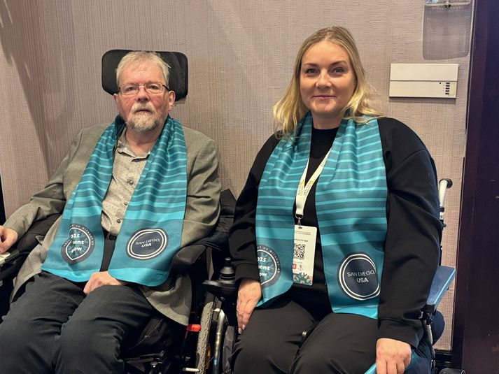 Ingibjörg, 49 ára, ræddi við Olav við eldhúsborðið heima hjá sér, til að freista þess að vekja athygli á stöðu sinni. Hann birti frásögn af samtalinu á Facebook, þaðan sem það rataði víða. Ingibjörg er nokkuð létt þegar hún svarar símtali frá blaðamanni á Íslandi og við byrjum á hversdagslegum nótum; ræðum til að mynda gengi handboltalandsliðsins. Og Olav, sem tók fermingarmyndir af syni Ingibjargar í fyrra. Þau búa í sveitinni í Arendal í Noregi. Olav í Arendal... það er eitthvað, hugsa ég. En svo tekur alvaran við og þá kemur þyngri tónn í rödd Ingibjargar. Ingibjörg er með ættgengt form blandaðrar hreyfitaugahrörnunar (ALS), sem er algengasta tegund af MDN, „motor neuron disease“. Hún hefur vitað það í nokkuð langan tíma að stökkbreytinguna sem veldur sjúkdómnum sé að finna í fjölskyldunni en frænka hennar, leikkonan Edda Heiðrún Backman, greindist meðal annars með sjúkdóminn árið 2004. Hún lést árið 2016, eftir að hafa lifað óvenjulengi með sjúkdómnum. Lifun eftir greiningu er venjulega tvö til fimm ár. Átta í fjölskyldunni hafa greinst til þessa, sá yngsti 27 ára. Ingibjörg ásamt föður sínum, Gísla Jónassyni. Saman hafa þau sótt ráðstefnur um sjúkdóminn og þá hefur Ingibjörg unnið í því með öðrum í Noregi og Svíþjóð að vekja athygli á gagnsemi tofersen.Aðsend Uppgötvaðist eftir meiðsl á hné Í fjölskyldu Ingibjargar og hjá um 20% þeirra sem eru með ættlægt form ALS er að finna stökkbreytingu í geninu „superoxide dismutase 1“ (SOD1), sem veldur skaða í hreyfitaugungum. Helmingslíkur eru á því að barn erfi genagallann frá foreldri en að sögn Ingibjargar töldu hún og systkini hennar að þau hefðu ef til vill sloppið þegar faðir þeirra, elstur af sínum systkinum hafði ekki greinst. „Amma varð aldrei veik,“ útskýrir Ingibjörg. „Það er nefnilega það sem er með þetta gen; maður getur verið beri án þess að verða veikur. En svo veiktist pabbi.“ Gísli Jónasson, faðir Ingibjargar, greindist árið 2017. Hann var þá 65 ára. Ingibjörg ákvað í kjölfarið að fara í genapróf. „Ég fór þrisvar eða fjórum sinnum til Osló til að fara í genaráðgjöf. En í eitt þeirra skipta þá sögðust þeir ekkert endilega mæla með því að maður fái að vita svarið,“ segir Ingibjörg. „Ef maður veit að maður er með genið fer maður náttúrulega að hafa áhyggjur, um að maður verði veikur. Það skerðir lífsgæðin. En mér fannst mín lífsgæði eiginlega vera orðin skert, fyrir löngu, því ég hafði einhvern veginn á tilfinningunni að ég væri örugglega með þetta.“ Ingibjörg fór í blóðprufu en átti hins vegar eftir að bera sig eftir svari þegar kórónuveirufaraldurinn braust út. Í kjölfarið segist hún hafa ýtt þessu frá sér. „Svo er það ekki fyrr en ég fór til sjúkraþjálfara útaf hnénu að þá kemur þetta upp, að ég er með fallfót. Og þá bara, útaf pabba, fara öll rauðu ljósin af stað.“ Þetta var í apríl 2024. Skömmu síðar fékk hún niðurstöðurnar úr blóðprufunni og greininguna. Hvað mega lífsgæðin og viðbótarárin kosta? Tæp tvö ár eru þannig liðin frá því að Ingibjörg greindist með ALS. Síðan hefur hún barist fyrir því að fá lyfið tofersen, sem er selt undir heitinu Qalsody. Faðir Ingibjargar fékk lyfið hér heima í samstarfi við framleiðandann Biogen en það lækkar meðal annars styrk SOD1-próteinsins í blóðinu og mænuvökvanum. Notkun þess hefur verið samþykkt í Evrópu og Bandaríkjunum en ekki á öðrum Norðurlöndum, meðal annars vegna kostnaðar. Lyfið kostar tugi milljóna á ári og sérfræðingar á Norðurlöndunum hafa komist að þeirri niðurstöðu að ávinningurinn af notkun lyfsins sé ekki peninganna virði, eins og kalt og það hljómar. Rannsóknir á sjúklingum hérlendis og víðar benda hins vegar til þess að lyfið hjálpi; það hefur bæði stöðvað framgang sjúkdómsins og bætt virkni upp að vissu marki. Ingibjörg er að mestu bundin við hjólastól. Það gæti skipt hana sköpum að fá tofersen, þar sem rannsóknir hafa leitt í ljós að lyfið getur hægt á framgangi sjúkdómsins.Aðsend „Ég reyndi að komast á lyfið en fékk það ekki, þannig að ég endaði á því að taka þátt í lyfjarannsókn í Svíþjóð. Ég fór út á þriggja vikna fresti í rúmt ár en það er búið núna, kláraðist í maí í fyrra,“ segir Ingibjörg. Yfirvöld í Svíþjóð eru nú að endurskoða ákvörðun sína varðandi tofersen en í Noregi, þar sem Ingibjörg hefur búið í um 20 ár, segja menn bara nei. ALS veldur vöðvarýrnun og máttleysi, sem ágerist með tímanum. Sjúkdómurinn getur haft áhrif á alla vöðva sem eru háðir viljastýringu, þannig að margir enda á því að geta hvorki tjáð sig né andað án aðstoðar. Ingibjörg notast í dag við hjólastól og virðist, eðlilega, mjög meðvituð um gang tímans. Eins og fyrr segir er lifunin gjarnan tvö til fimm ár. Pabbi hennar er enn á lífi níu árum eftir greiningu en hann er á tofersen. Ingibjörg segist ekki kunna við þá tilhugsun að flytja heim til Íslands til að komast á lyfið. Bæði sé erfitt að rífa upp fjölskylduna og þá þyki henni ekki sanngjarnt að leggja þær byrðar á íslenska skattgreiðendur að greiða lyf fyrir hana, sem hefur búið erlendis í mörg ár. „Ég veit ekki einu sinni hvort það er raunhæft að flytja heim til Íslands til að fá lyfið,“ segir hún. Er líka að berjast fyrir börnin Ingibjörg er líka ekki bara að berjast fyrir sjálfa sig, heldur líka börnin sín, sem eru ellefu, fjórtán og sextán ára. Ingibjörg er ekki síður að berjast fyrir börnin sín en sjálfa sig. Auk þess að eiga mömmu, afa og fleiri skyldmenni með ALS munu þau