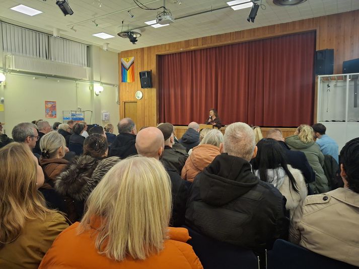 Mikil mótstaða íbúa á hitafundi um flutning kaffistofunnar Lovísa Arnardóttir skrifar 5. febrúar 2026 14:17 Eins og má sjá var salurinn fullur. Áætlað er að um 160 hafi sótt fundinn. Stefán Björnsson Hitafundur fór fram í Réttarholtsskóla um flutning kaffistofu Samhjálpar í gær. Íbúar segjast styðja starfsemi kaffistofunnar en nær einróma um að finna eigi henni aðra staðsetningu en á Grensásvegi. Framkvæmdastýra segir búið að gera ítarlega leit hjá borg, ríki og fjölda annarra að eign sem henti starfseminni. Hún varar við því að mál kaffistofunnar verði gert að pólitísku bitbeini fyrir kosningar í vor. Fjórir frummælendur voru á fundinum. Auk Guðrúnar Ágústu Guðmundsdóttur, framkvæmdastýru Samhjálpar, voru einnig með erindi Finnur Björgvinsson, íbúi, Guðrún Jack íbúi og Aðalsteinn Haukur Sverrisson, borgarfulltrúi Framsóknarflokksins. Aðalsteinn situr í umhverfis- og skipulagsráði en er einnig sjálfur íbúi í hverfinu. Greint var frá því í sumar að leigusamningi Samhjálpar vegna húsnæðis Kaffistofunnar hefði verið sagt upp og rýma þyrfti húsnæðið fyrir október 2025. Kaffistofan hafði verið rekin í Borgartúni frá árinu 2007. Kaffistofan er því tímabundið í húsnæði Fíladelfíukirkjunnar við Hátún og hefur verið þar frá því í október. Samhjálp ætlaði að opna kaffistofuna að nýju við Grensásveg í desember en í kjölfar mótmæla var ákveðið að fara í grenndarkynningu. Henni er nú lokið og málið bíður afgreiðslu byggingarfulltrúa og svo stjórnmálanna. Sjá einnig: Stöðvar framkvæmdir við nýja Kaffistofu Samhjálpar Hlýhugur en líka vanþekking Tvö til þrjú hundruð máltíðir eru afgreiddar daglega á Kaffistofunni, bæði morgunmatur og hádegismatur. Hluti gesta er heimilislaus en einnig leitar til Kaffistofunnar fólk sem hefur ekki efni á því að borða, sérstaklega um helgar. Kaffistofan er opin allan ársins hring frá klukkan 10 til 14. Yfir köldustu mánuði ársins hefur heimilislausum verið gert kleift að dvelja þar til klukkan 17 þegar gistiskýlin opna að nýju. „Þetta var fjölmennur fundur og ótrúlega gott að finna þann hlýhug sem er í okkar garð á þessum fundi, en við upplifðum líka viðhorf til okkar skjólstæðinga sem byggja á vanþekkingu eða þekkingarleysi, og máluð upp mjög dökk mynd af fólkinu sem sækir þjónustu okkar,“ segir Guðrún Ágústa í samtali við Vísi. Samhjálp tók á leigu húsnæðið í miðjunni fyrir kaffistofuna og ætlaði að opna 1. desember en frestaði opnun vegna mótmæla og grenndarkynningar. Vísir/Vilhelm Hún ítrekar að þó svo að slík viðhorf hafi komið fram á fundinum hafi upplifun hennar af fundinum verið sú að allir væru með Samhjálp í liði. „Ég upplifði mikinn hlýhug og velvild en einnig hræðslu gagnvart okkar skjólstæðingum sem við teljum byggða á misskilningi eða upplýsingum sem ekki standast,“ segir hún. Þá hafi það einnig verið hennar upplifun að almennt væri fólki misboðið að Samhjálp væri í þessari stöðu „En það sem ég hef áhyggjur af, og ég legg mikla áherslu á að Samhjálp sé ekki pólitískt bitbein,“ segir hún og að hún vilji alls ekki að staðsetning kaffistofunnar verði að kosningamáli í sveitarstjórnarkosningunum sem fara fram í maí. Öryggismyndavélar og einn inngangur Guðrún Ágústa fjallaði um það í sinni framsögu til hvaða aðgerða verði gripið á staðnum og hvernig húsið hafi verið hannað sérstaklega með tilliti til þess að íbúar í næsta nágrenni við Grensásveg og í sama húsi verði fyrir sem minnstu ónæði. Kaffistofan er opin frá klukkan 10 til 14 en starfsmenn og sjálfboðaliðar eru á vakt frá 8 til 16. Frá klukkan átta undirbúa þeir daginn og svo eftir klukkan 14, eftir lokun, tryggja þeir umhverfið og ganga frá. Á hverri vakt eru þrír launaðir starfsmenn og tveir til fimm sjálfboðaliðar. „Við höfum síðan hannað húsnæðið þannig að það sé eingöngu aðgengi frá Grensásvegi og sú hlið er einn stór gluggi,“ segir Guðrún Ágústa og þannig verði meiri birta og sýnileiki en í Borgartúni þar sem ekki sást inn. Fólkið eigi að sjá út og sjást. Guðrún Ágústa segist hafa fundið fyrir miklum hlýhug á íbúafundinum en það hafi einnig komið fram fullyrðingar sem eigi ekki stoð í raunveruleika og lýsi jafnvel vanþekkingu um þann hóp sem sæki til þeirra þjónustu. Vísir/Vilhelm Auk þess verði aðeins inngangur að framan notaður fyrir gesti og aðföng og inngangur að aftan aðeins notaður í neyð. Auk þess séu öryggismyndvélar til að vakta og ljósastýrð birta að aftan. „Við gerum okkar til að draga úr mögulegu álagi hjá íbúum að aftan.“ Lögregla kölluð til sex sinnum síðustu 50 daga Þá segir hún að vegna þess að kaffistofan verður í þó nokkurri fjarlægð frá gistiskýlunum og miðbænum verði Samhjálp með níu manna bíl sem muni standa þeim til boða sem séu á leið þangað og treysti sér ekki til að koma sér sjálf á staðinn. Hún segir heimilaust fólk, sem leitar skjóls í gistiskýlum borgarinnar, aðeins hluta þeirra sem leiti til þeirra. Einnig leiti til þeirra stór hópur fólks sem hefur sótt um alþjóðlega vernd og bíður þess að umsókn þeirra verði tekin fyrir, og fólk sem er í leiguhúsnæði og jafnvel vinnu, en á ekki fyrir mat. Auk þess leiti einnig til þeirra Guðrún segir fólk hafa fullyrt á fundinum í gær að gestir kaffistofunnar skemmdu bíla á bílastæðum og væru almennt til mikilla vandræða. Hún segist ekki kannast við það og hafi auk þess aldrei vitað til þess að eitthvert áreiti tengt börnum sé tengt kaffistofunni eða gestum hennar. Hún kannist heldur ekki við að kalla þurfi lögreglu til oft á dag. Sem dæmi hafi Sam