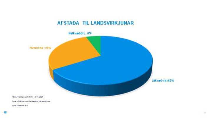 Orkumannvirkjum fylgir óhjákvæmilega rask á umhverfi og náttúru. Þess vegna er mikilvægt að stjórnendur og eigendur orkufyrirtækja sem nýta auðlindir landsins séu meðvitaðir um það sem kallað hefur verið samfélagslegt leyfi til athafna. Að vandað sé svo til framkvæmda og alls sem þeim fylgir að almenningur geti verið sáttur við kostnað á móti ávinningi. Þetta gildir að sjálfsögðu hvort sem landsvæðið er í einkaeigu eða eigu hins opinbera. 66 á móti 6 Landsvirkjun hefur fengið Gallup til að kanna afstöðu þjóðarinnar til starfsemi fyrirtækisins um árabil, meðal annars til að ganga úr skugga um að við höfum þetta leyfi og meta hvað sé hægt að bæta. Það hefur verið einkar ánægjulegt fyrir okkur, starfsfólk orkufyrirtækis þjóðarinnar, að sjá hvernig stuðningurinn og traustið hefur farið vaxandi undanfarin ár. Síðasta könnun, sem gerð var í október og nóvember í fyrra, sýnir til að mynda að 94% svarenda eru jákvæð eða hlutlaus í garð Landsvirkjunar (66% jákvæð, 29% hlutlaus) á meðan 6% eru neikvæð. Þetta eru ekki ný tíðindi, því kannanir hafa ítrekað sýnt svipaða niðurstöðu á undanförnum árum. Niðurstaðan er reyndar enn betri í sumum landshlutum, til að mynda í nærsamfélagi stærstu aflstöðvar okkar á Austurlandi, þar sem um og yfir 80% eru jákvæð, en aðeins 3-5% neikvæð. Þetta sveiflast auðvitað aðeins á milli ára en segjum að þetta séu 5-10% þjóðarinnar. Þessi hópur er okkur mikilvægur. Þau veita aðhald og hjálpa okkur að gera betur, en miðað við opinbera umræðu mætti þó stundum halda að hann væri töluvert stærri en raun ber vitni. Niðurstöður kannana staðfesta ítrekað að drjúgur meirihluti Íslendinga er jákvæður í garð Landsvirkjunar og langflestir aðrir hlutlausir. Það er okkur afar dýrmætt. Að sama skapi kemur einnig í ljós í könnuninni að rúmlega ¾ hlutar landsmanna telja Landsvirkjun traust fyrirtæki og svarendur telja almennt að Landsvirkjun sinni náttúruvernd, umhverfis- og loftslagsmálum vel og að framlag fyrirtækisins til verðmætasköpunar sé mikið og mikilvægt. Græn atvinnuuppbygging og orkuskipti Með aukinni umræðu um loftslags- og umhverfismál hafa æ fleiri gert sér grein fyrir einstakri stöðu okkar Íslendinga. Við erum þegar búin að ljúka tvennum orkuskiptum – við hitum húsnæði með jarðhita og raforkukerfið okkar er að nær öllu leyti rekið með endurnýjanlegri orku. Þriðju orkuskiptin standa nú yfir, þar sem við skiptum út jarðefnaeldsneyti fyrir umhverfisvæna orkugjafa. Ef við tökum húshitun út fyrir sviga stendur innflutt olía enn undir 40% af orkunotkun hérlendis. Þeirri tölu viljum við auðvitað ná niður eins hratt og hægt er. Þetta snýst samt ekki bara um orkuskiptin. Við nýja atvinnuuppbyggingu þarf líka að tryggja að horft sé til greina sem geti nýtt endurnýjanlega orku, frekar en þeirra sem byggja á aukinni notkun jarðefnaeldsneytis. Þar eiga atvinnutækifæri framtíðarinnar að liggja. Umhverfismeðvituð og jákvæð yngri kynslóð Það gleður mig því sérstaklega að sjá hve jákvæðni og traust vaxa mikið í hópi yngstu svarendanna, kynslóðarinnar sem er almennt meðvitaðri um umhverfismál en við sem eldri erum. Kynslóðar sem vill frekar geta notað innlenda, endurnýjanlega orku en þá milljón tonna af innfluttu jarðefnaeldsneyti sem við brennum núna á hverju ári. Yngri þátttakendum fjölgar þannig mikið í hópnum sem er fylgjandi frekari virkjunarframkvæmdum. Í heildina eru 15% andvíg en 85% hlynnt eða hlutlaus (70% hlynnt, 15% hlutlaus). Það vekur reyndar athygli mína að í hópi þeirra sem eru hlynnt fjölgar yngri konum mest. Dregur saman með kynjunum Hingað til hafa karlar verið töluvert jákvæðari en konur í garð starfsemi fyrirtækisins og svo er enn. Upp á síðkastið hefur þó dregið töluvert saman með kynjunum. Ekki vegna þess að stuðningur karla hafi dvínað, heldur hefur stuðningur kvenna farið vaxandi. Umræða um orkumál var lengi vel mjög karllæg, en það hefur breyst hratt síðustu ár. Samtalið er miklu opnara og fjölbreyttara en áður og þessi málaflokkur er orðinn almennt umræðuefni sem miðaldra verkfræðingar (eins og ég) eiga ekki að einoka. Ef til vill hangir þetta líka að einhverju leyti saman við hvað konum hefur fjölgað mikið í orkugeiranum, þar á meðal í áberandi stjórnunarstöðum. Við hjá Landsvirkjun höfum unnið markvisst að því að jafna hlut kynjanna og hjá okkur stýra konur til dæmis bæði stærstu framkvæmdum fyrirtækisins og stærstu samningum sem gerðir eru á landinu. Þakklæti Traustið sem við njótum frá þjóðinni, Alþingi og nærsamfélaginu er okkur ómetanleg hvatning til þess að halda áfram á þeirri braut sem Landsvirkjun hefur verið á síðustu 60 ár: Að nýta orkuauðlindir í þágu þjóðarinnar og hámarka verðmæti þeirra svo hægt sé að bæta lífsgæði okkar allra. Starfsfólk okkar leggur sig allt fram á hverjum einasta degi til að standa undir því. Takk fyrir traustið! Hörður er forstjóri Landsvirkjunar.
