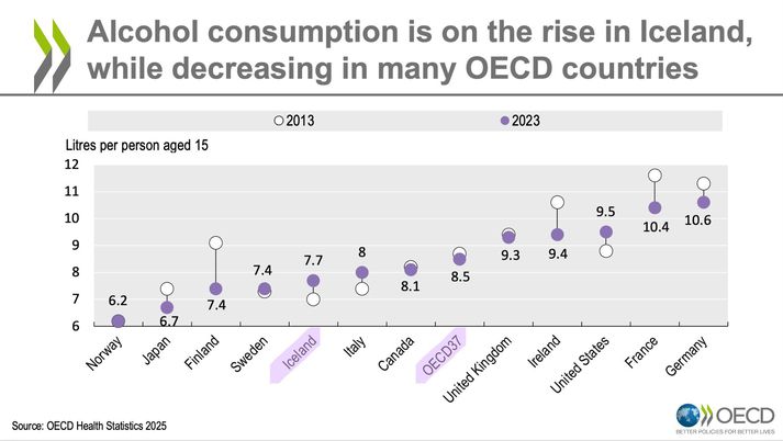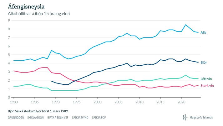 Í „Bréfi til Láru“ er talað um frelsi og einstaklingsábyrgð. Þetta hljómar vel því flest okkar lítum á þessa þætti sem hornsteina góðra samfélaga. En þegar samhengið er skoðað sést að hér leynist úlfur í sauðagæru: áfengi er ekki venjuleg neysluvara og afleiðingarnar eru ekki einkamál þeirra sem drekka. Af hverju er áfengi ekki venjuleg neysluvara? Áfengi á þátt í myndun um 200 sjúkdóma og áverka og með því einn helsti áhættuþáttur ótímabærra andláta. Áfengi er algengasta orsök dauða hjá ungum körlum á aldrinum 25–59 ára og valdur að 13,5% dauðsfalla hjá 20–39 ára. Sem dæmi lést Amy Winehouse úr áfengiseitrun, aðeins 27 ára gömul. Afleiðingar áfengisneyslu eru þó ekki bundnar við neytandann. Áfengi tengist slysum, ofbeldi, sjálfsvígum og morðum, fósturskaða, félagslegum vandamálum, minnkaðri framleiðni o.fl. Börn, fjölskyldur og samfélagið allt bera kostnaðinn, hvort sem þau kjósa að drekka eða ekki. Talnaleikir áfengissalans Elías heldur því fram að áfengisneysla hafi dregist saman og sér til stuðnings dregur hann saman litla ómarktæka sveiflu í neyslu sem líklega tengist COVID-faraldrinum þegar neysla jókst tímabundið. Við þurfum að horfa á langtímaþróun og samkvæmt Hagstofunni (ásamt OECD sem vinnur tölur sínar frá upplýsingum Hagstofunnar) sést berlega að neyslan hefur aukist um tæpan líter af hreinum vínanda síðustu tíu árin, sjá mynd. Þá er varhugavert að á meðan áfengisneysla dregst saman í flestum öðrum OECD löndum þá er hún að aukast hjá okkur, sjá mynd. Það er eðlilegt að spyrja sig af hverju neysla hefur aukist á meðan sala hefur verið í höndum ríkisins. Þarna má bersýnilega gera betur. Elías nefnir sem dæmi auglýsingar frá vínbúðinni. Þótt áfengið sjálft sé vissulega ekki auglýst þá erum við þarna á rangri leið. Eins má endurskoða fjölda útsölustaða Vínbúðarinnar, sem Elías telur of mikinn eða 15 búðir per 100.000 íbúa. Þarna er þó svolítill talnaleikur á ferðinni. Í fyrsta lagi telur hann með afhendingarstaði á netpöntunum sem eru ekki búðir. Í öðru lagi erum við með 5 búðir per 100.000 íbúa á Höfuðborgarsvæðinu, en ekki 15 og er það ansi mikill munur. Þar sem við búum í dreifbýlu landi er hver vínbúð á landsbyggðinni fljót að hækka meðaltalið. Kosturinn er hinsvegar sá við Vínbúðina að hún sendir ekki heim, þú þarft alltaf að sækja vöruna í Vínbúð eða afhendingarstað. Ef við erum þeirrar skoðunar að Vínbúðin sé ekki að ná markmiðum sínum í núverand rekstri þá er lausnin að bæta úr því en ekki afhenda söluna til einkaaðila. Þegar vísað er í samfélagslegan kostnað upp á „28 milljarða“ (en ekki 100 milljarða) er verið að tala um takmarkaðan, beinan útgreiddan kostnað. Þegar allur samfélagslegi kostnaðurinn er metinn, þ.m.t. framleiðslutap, ótímabær dauðsföll og glötuð lífár, er talan yfir 100 milljarðar. Þessi tala samræmist m.a. skýrslum frá Svíþjóð og Noregi sem í raun áætla kostnaðinn vera nær 150 milljörðum ef við heimfærum þær upplýsingar á Ísland. Samkvæmt þessum gögnum kostar áfengisneysla okkur rúmlega 200 þúsund krónur á hvern fullorðinn Íslending á ári - hvort sem hann drekkur eða ekki. Munurinn er ekki falinn í gögnum, heldur í því hvort við horfum á brot af reikningnum eða tökum allan reikninginn með í myndina. Frelsi snýst ekki um réttinn til að skaða aðra. Þegar 100 milljarða samfélagskostnaður er settur undir sama hatt og „frelsi“, er ekki verið að verja einstaklinginn - heldur viðskiptahagsmuni. Aukið aðgengi eykur hagnað seljenda, en kostnaðinn mun samfélagið borga. Óvönduð vinnubrögð Viðskiptablaðsins Elíast vitnar jafnframt í grein sem Viðskiptablaðið birti og ég ákvað að svara ekki opinberlega, en læt svarið sem ég sendi ritstjórninni 8. júlí 2024 fylgja með hér: “Finnst áhugavert niðurlag hjá ykkur, þar sem þið sakið mig um að beita ekki gagnrýnni hugsun en eruð svo sjálf með einhliða skoðun og birtið ekki eina heimild sem tengist áfengisforvörnum. Það er hægt að telja fjölda rangfærslna í ykkar grein. Fyrir það fyrsta eru til þó nokkrar skýrslur sem styðja við tölfræði Stellu og þessir 100 milljarðar eru hóflega reiknaðar…. Ef eitthvað er þá er þessi kostnaður líklega vanreiknaður því áfengi hefur lúmskari áhrif á heilsu en fólk áttar sig almennt á. Svo er ávallt leiðrétt fyrir ferðamönnum í útreikningum þjóðarneyslu áfengis. Ykkur tekst meira að segja að fara með rangt mál í einu áfengisheimildinni sem þið vitnið í (frá sænska upplýsingaráðinu um áfengi) en þar ruglið þið saman hugtökum: 15% er heildartala yfir "unregistered share" og af því er áfengi úr fríhöfunum einungis einn biti af kökunni, að meðaltali um 7,9%. Rétt hefði því verið að segja 7,9% komi úr fríhöfnum. Mér þykir afar lágkúrulegt að þið skrifið ekki undir nafni og vitnið ekki í heimildir, í sama mund og þið sakið mig um að vera ekki starfi mínu vaxin. Sem fjölmiðill berið þið gríðarlega ábyrgð á að móta viðhorf fólks í samfélaginu og ég hefði búist við meiri fagmennsku af ykkar hálfu.” Allir græða á forvörnum en fáir á smásölu einkaaðila Mark Pearson benti okkur á í fyrirlestri sínum á Læknadögum að fyrir hverja krónu sem við setjum í forvarnir uppskerum við 16 krónur í sparnað. Í áfengis- og vímuefnaforvörnum gildir að stjórnvaldsaðgerðir eru áhrifamestar og vegur mest takmarkað aðgengi (ríkiseinkasala, fjöldi sölustaða, opnunartími, aldur), verð, skattlagning og takmörkun markaðssetningar. Fræðsla er mjög neðarlega á listanum. Við náðum frábærum árangri í tóbaksforvörnum og er