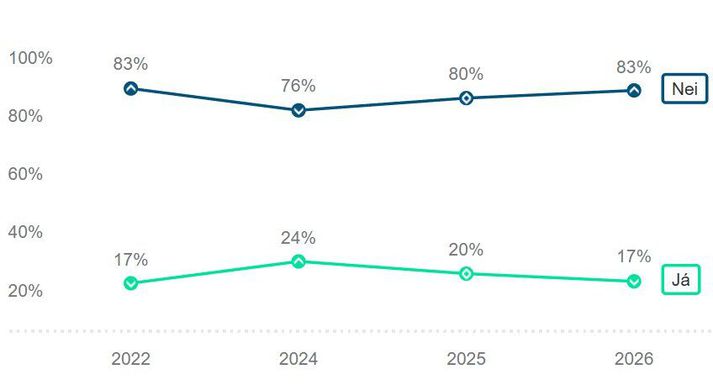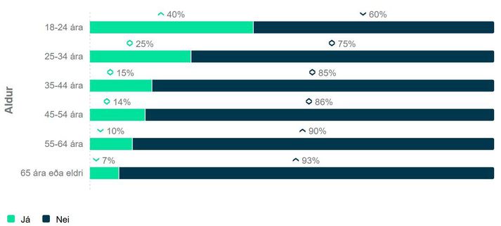 Þeim hefur farið fækkandi síðustu ár sem strengja áramótaheit eftir að þeim fjölgaði. Árið 2022 sögðust 17 prósent strengja áramótaheit og tveimur árum seinna hafði þeim fjölgað í 24 prósent. Árið 2025 fækkaði þeim svo í 20 prósent sem svöruðu játandi og í ár hafði þeim svo aftur fækkað í 17 prósent. Töluverður aldursmunur er í niðurstöðunum. Prósent Samkvæmt niðurstöðum er nokkur kynjamunur og strengja þannig 21 prósent kvenna áramótaheit á móti 14 prósent karlmanna. Þeim fór fjölgandi en svo aftur fækkandi sem strengja áramótaheit. Prósent Töluverður aldursmunur er á svörunum en hæsta hlutfallið er meðal þeirra sem eru 18 til 24 ára þar sem 40 prósent strengja áramótaheit. Hlutfallið lækkar svo eftir því sem aldur hækkar. Sem dæmi segjast 25 prósent þeirra á aldrinum 25 til 34 ára strengja áramótaheit, 15 prósent 35 til 44 ára, 14 prósent 45 til 54 ára, tíu prósent þeirra sem eru 55 til 65 ára og aðeins sjö prósent þeirra sem eru 65 ára og eldri. Kynjamunur er á niðurstöðunum. Prósent Gögnum var safnað frá 21. janúar til 2. febrúar 2026 í netkönnun meðal könnunarhóps Prósents. Úrtakið var 2.000 (einstaklingar 18 ára og eldri) og var svarhlutfall 50 prósent. Í dag eru um 15.000 einstaklingar 18 ára og eldri af öllu landinu skráðir í könnunarhóp Prósents. Sendar eru út kannanir á handahófskennt úrtak úr könnunarhópnum á netföng þátttakenda. Niðurstöður eru vigtaðar út frá kyni, aldri og búsetu svo hægt sé að alhæfa um þær með 95% vissu.Færri strengja áramótaheit í ár en síðustu tvö ár. 17 prósent svarenda strengja áramótaheit en 83 prósent gera það ekki. Líklegra er að fólk strengi slík heit eftir því sem yngra það er. Þetta kemur fram í niðurstöðum könnunar Prósents Þeim hefur farið fækkandi síðustu ár sem strengja áramótaheit eftir að þeim fjölgaði. Árið 2022 sögðust 17 prósent strengja áramótaheit og tveimur árum seinna hafði þeim svo fjölgað í 24 prósent. Árið 2025 fækkaði þeim svo í 20 prósent sem svöruðu játandi og í ár hafði þeim svo aftur fækkað í 17 prósent. Samkvæmt niðurstöðum er nokkur kynjamunur og strengja þannig 21 prósent kvenna áramótaheit á móti 14 prósent karlmanna. Töluverður aldursmunur er á svörunum en hæsta hlutfallið er meðal þeirra sem eru 18 til 24 ára þar sem 40 prósent strengja áramótaheit. Hlutfallið lækkar svo eftir því sem aldur hækkar. Sem dæmi segjast 25 prósent þeirra á aldrinum 25 til 34 ára strengja áramótaheit, 15 prósent 35 til 44 ára, 14 prósent 45 til 54 ára, tíu prósent þeirra sem eru 55 til 65 ára og aðeins sjö prósent þeirra sem eru 65 ára og eldri. Gögnum var safnað frá 21. janúar til 2. febrúar 2026 í netkönnun meðal könnunarhóps Prósents. Úrtakið var 2.000 (einstaklingar 18 ára og eldri) og var svarhlutfall 50 prósent. Í dag eru um 15.000 einstaklingar 18 ára og eldri af öllu landinu skráðir í könnunarhóp Prósents. Sendar eru út kannanir á handahófskennt úrtak úr könnunarhópnum á netföng þátttakenda. Niðurstöður eru vigtaðar út frá kyni, aldri og búsetu svo hægt sé að alhæfa um þær með 95% vissu.