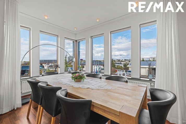 Húsið var teiknað af Kjartani Sveinssyn, byggt árið 1999 og er sex herbergja á tveimur hæðum. Það fór á sölu í september á síðasta ári og hefur nú selst. Ásett verð var 247,9 milljónir króna en seldist það á 237 milljónir. Bílskúr fylgir með og góð innkeyrsla. Hringstigi upp á aðra hæð. Á neðri hæð er anddyri, gestabaðherbergi og þrjú svefnherbergi og svo er innangengt í bílskúr frá gangi. Á efri hæð er eldhús, borðstofa, hjónaherbergi með „en-suite“ baðherbergi, tvö svefnherbergi, þvottahús, baðherbergi, þvottahús og stofa með arin þar sem útgengt er á sólríka timburverönd með heitum potti. Björt borðstofa. Flísalagt baðherbergi. Á pallinum er pottur. Matthías Imsland var áður framkvæmdastjóri rekstrarsviðs Wow Aie og þar áður forstjóri flugfélagsins Iceland Express. Þá er hann mikill Framsóknarmaður, var formaður kjördæmasambands flokksins um tíma og gegndi stöðu aðstoðarmanns bæði Eyglóar Harðardóttur, félags – og húsnæðismálaráðherra, og Sigmundar Davíðs Gunnlaugssonar, forsætisráðherra.