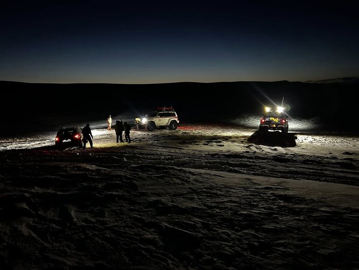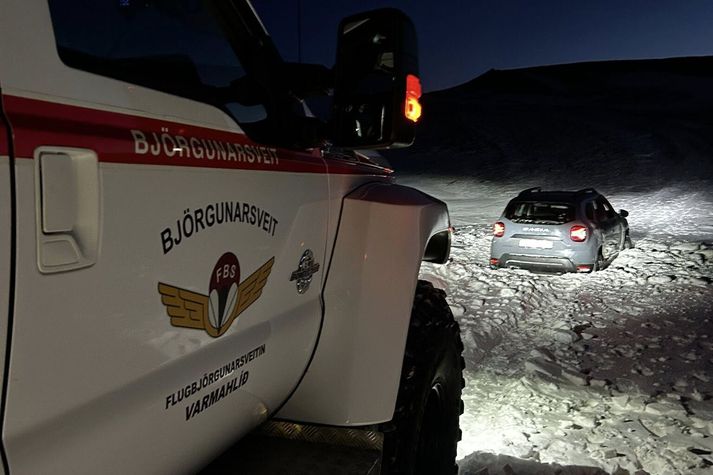 Gengu tíu kílómetra til að geta óskað eftir aðstoð Lovísa Arnardóttir skrifar 18. febrúar 2026 10:28 Ferðamennirnir gengu tíu kílómetra eftir aðstoð. Þeir gátu svo keyrt af stað eftir að hafa fengið aðstoð við að losa sig úr skafli. Flugbjörgunarsveitin í Varmahlíð Flugbjörgunarsveitin í Varmahlíð og björgunarsveitin Skagfirðingasveit á Sauðárkróki komu fjórum ferðamönnum til aðstoðar í gær sem höfðu fest bíla sína í Mælifellsdal. Fólkið gekk tíu kílómetra í 18 stiga frosti til að komast í símasamband til að láta vita af sér. Jón Þór Víglundsson upplýsingafulltrúi Landsbjargar segir að fólkið hafi gengið í símasamband og svo aftur í bíla sína og beðið þar. Hann segir útkallið hafa komið um kvöldmatarleytið og að björgun hafi verið lokið um klukkan níu. Björgunarsveitirnar hafi aðstoðað við að losa bíla fólksins og hjálpað því að komast rétta leið. Björgunarsveitir við störf. Ferðamennirnir voru komnir langleiðina undir Blöndulón. Flugbjörgunarsveitin í Varmahlíð „Í kvöld aðstoðuðum við fólk sem hafði setið fast uppi í Mælifellsdal í nokkra klukkutíma. Þurfti fólkið að labba tæpa 10 km í allt að 18 stiga frosti til að komast í símasamband og fá aðstoð. Gekk björgunin vel og héldu ferðalangarnir áfram með bros á vör en frekar kaldir,“ segir í tilkynningu björgunarsveitarinnar á Facebook. Ferðamennirnir voru á tveimur bílum. Flugbjörgunarsveitin í Varmahlíð Björgunarsveitir Skagafjörður Mest lesið Árásarmaðurinn á blótinu með langan brotaferil á bakinu Innlent Loka sundlaugum fram yfir helgi vegna kuldans Innlent Eigi að „brenna barnaverndarkerfið til grunna og byrja aftur“ Innlent Snjókoman náði ekki yfir Hellisheiðina Veður „Þetta hefði ekki þurft að fara svona“ Innlent Ákærður fyrir að skilja kærustuna eftir á fjallinu Erlent Lindsay Graham hafi hellt sér yfir Frederiksen og sagt Trump geta tekið Grænland Erlent Hræddur um að öfugur hvati leiði til fjölgunar öryrkja Innlent Engin breyting þó veðmálakóngur sé einn eftir Innlent Ekki viss um að hægt sé að lappa upp á samband Evrópu og Bandaríkjanna Innlent Fleiri fréttir Niðursveiflan á vinnumarkaði sé mjög djúp „Hvaðan kom þetta fyrirbæri eiginlega hér inn á þing?“ Landsvirkjun fagnar fleiri nýtingarkostum í rammaáætlun Refsað fyrir að loka á konu og keyra yfir fætur hennar Hræddur um að öfugur hvati leiði til fjölgunar öryrkja Ekki viss um að hægt sé að lappa upp á samband Evrópu og Bandaríkjanna Gengu tíu kílómetra til að geta óskað eftir aðstoð Maðurinn sem lýst var eftir fundinn Bein útsending: Umhverfið í hnattrænu samhengi Eigi að „brenna barnaverndarkerfið til grunna og byrja aftur“ Engin breyting þó veðmálakóngur sé einn eftir Árásarmaðurinn á blótinu með langan brotaferil á bakinu Loka sundlaugum fram yfir helgi vegna kuldans Hvítt í kortunum og snjómokstursteymið í startholunum Getur ekki séð að „heimsendaspár gagnrýnendanna“ séu að rætast „Algjörlega óboðlegt hvernig þetta hefur verið undanfarin ár“ Hafna kröfum bálstofunnar um endurskoðun starfsleyfis „Þetta hefði ekki þurft að fara svona“ Enn enginn matur á boðstólum félagsmiðstöðvanna Sáttur við að staða hans sé auglýst Holtavirkjun og Skrokkölduvirkjun í orkunýtingarflokk Neitar að hafa nauðgað stúlku milli trjáa Annað hvort í pólitíkina eða á eftirlaun Fleiri reita hár sitt yfir skorti á þrifum en nagladekkjum Kvikuhlaup og eldgos enn líklegasta sviðsmyndin Grásleppan hleypir upp störfum þingsins Hættur sem framkvæmdastjóri Framsóknar Fyrrverandi markvörður vill fram fyrir Miðflokk Viðgerð vegna eldsvoða að ljúka og Landspítali fær pláss Ungir menn sátu fyrir bjórsala og rændu tugum vodkaflaska Sjá meira