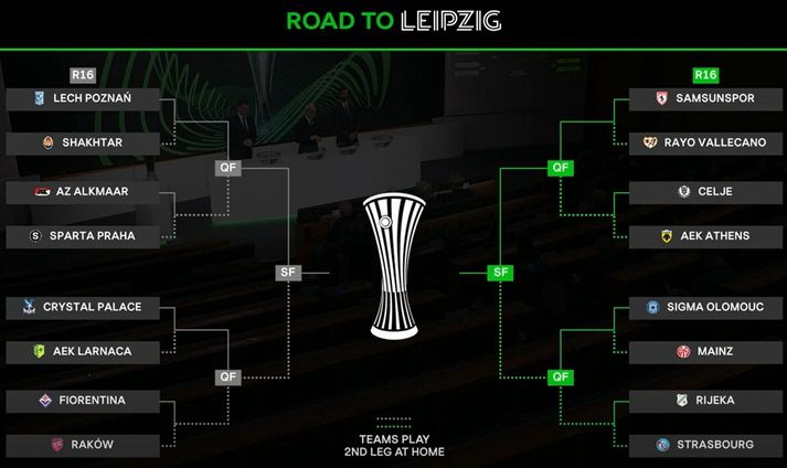 Albert til Póllands en gæti svo mætt Palace Sindri Sverrisson skrifar 27. febrúar 2026 13:23 Albert Guðmundsson og félagar í Fiorentina eru komnir í 16-liða úrslit Sambandsdeildarinnar. Getty/Franco Romano Þrjú Íslendingalið verða með í 16-liða úrslitum Sambandsdeildar Evrópu og nú er ljóst hverjum þau mæta þar. Crystal Palace mætir liði frá Kýpur. Albert Guðmundsson og félagar í Fiorentina drógust gegn pólska liðinu Raków, eftir að hafa sloppið í gegnum umspilið í gær í framlengdum leik. Logi Tómasson fer með liði Samsunspor til Spánar og mætir Rayo Vallecano. Lech Poznan frá Póllandi, lið Gísla Gottskálks Þórðarsonar, mætir svo Shaktar frá Úkraínu sem spilar sína heimaleiki einmitt í Póllandi. Crystal Palace mætir AEK Larnaca frá Kýpur og ef bæði Palace og Fiorentina komast áfram í 8-liða úrslitin er nú ljóst að þau mætast þar. 16-liða úrslit Sambandsdeildar: Lech Poznan - Shaktar AZ Alkmaar - Sparta Prag Crystal Palace - AEK Larnaca Samsunspor - Rayo Vallecano Celje - AEK Aþena Sigma Olomouc - Mainz Fiorentina - Raków Rijeka - Strasbourg Leiðin í úrslitaleik Sambandsdeildar Evrópu.UEFA Sambandsdeild Evrópu Mest lesið Stórlið mætast í 16-liða úrslitum Meistaradeildar Evrópu Fótbolti Bauð gullliðinu upp á McDonald's: „Veit ekki hvernig hann er enn á lífi“ Sport Ensku liðin bíða Hákonar og Elíasar Fótbolti Í bann vegna lélegrar tungumálakunnáttu eiginmannsins Sport Á íslenska konu og barn en mætir Íslandi í kvöld Körfubolti Segir Guðjón Val besta þjálfara heims Handbolti Fjarbúð á enda og eltir nú drauminn Sport „Ég ætla ekki að bera ábyrgð á því“ Handbolti Freyr nær orðlaus þegar skilaboð bárust frá Ancelotti: „Meinarðu þetta? Fótbolti Heim í hlýjuna en alls ekki á heimleið Körfubolti Fleiri fréttir Albert til Póllands en gæti svo mætt Palace Þeir mega eiga kokteilana, við drekkum alvöru pintur Ensku liðin bíða Hákonar og Elíasar Stórlið mætast í 16-liða úrslitum Meistaradeildar Evrópu Beitti hjartahnoði á fugl sem var skotinn niður í miðjum fótboltaleik Skúrkur Freys: Gátum gert eitthvað stórkostlegt, og svo klúðra ég því Lærisveinar Freys úr leik eftir dýrkeypt rautt spjald Skagamenn enduðu sigurgöngu Valsmanna í Lengjubikarnum Albert kom inn á 100. mínútu og Fiorentina reddaði sér Þórsarar semja við Ganverja til þriggja ára Segir að bannið hans Prestianni sé „sigur“ fyrir alla Létt hjá Loga og félögum en þrjú Íslendingalið í framlengingu Vel merktur á hausnum eftir að hafa fiskað vítið sem kom Atalanta áfram Verðlaunaðir fyrir þættina Lengsta undirbúningstímabil í heimi Tókust á í stúdíóinu: „Hvernig á hann að geta annað en rekið hann útaf?“ Völsungar drógu lið sitt úr keppni Sagður á leið í Víkina Nasistakveðja í skugga kynþáttaníðs Hanna hæstánægð í Mexíkó að sjá soninn spila Ronaldo kaupir fótboltalið Sjáðu mörkin, rauðu spjöldin og takka í höfði á ögurstundu Freyr nær orðlaus þegar skilaboð bárust frá Ancelotti: „Meinarðu þetta? Norður af heimskautsbaug beint í hjarta Evrópu Sjáðu dauðafæri Íslands og mörkin fjögur Besta deildin bökuð í krefjandi aðstæðum í Mexíkó Messi sér mikið eftir því að hafa ekki lært ensku Blatter lætur „sólkonunginn“ Infantino heyra það: „FIFA er orðið einræðisríki“ Tíu leikmenn Juventus risu næstum upp frá dauðum Eina sem var öðruvísi var graslyktin í göngunum fyrir leikinn Meistararnir rétt sluppu áfram Sjá meira