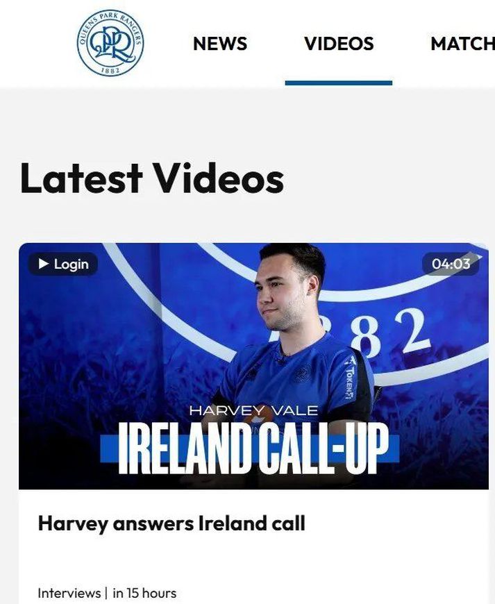 QPR-menn virðast hafa verið aðeins of spenntir yfir því að leikmaður liðsins, Harvey Vale, skyldi fá sæti í írska hópnum. Á heimasíðu FIFA var nefnilega í gær birt myndband þar sem þessi 22 ára leikmaður talaði um hversu stoltur hann væri af því að fá sæti í hópnum. Um mistök virðist hafa verið að ræða því myndbandið var svo fljótlega fjarlægt en þá höfðu breskir miðlar þegar náð skjáskoti af myndbandinu. Skjáskot af viðtalinu sem birtist á vef QPR en var svo tekið í burtu.Skjáskot/QPR Vale er fyrrverandi miðjumaður Chelsea og var fyrirliði enska U19-landsliðsins þegar það vann EM árið 2022. FIFA, alþjóða knattspyrnusambandið, staðfesti hins vegar síðasta föstudag að Vale væri nú orðinn gjaldgengur með írska A-landsliðinu en heimilt er að skipta um landslið ef leikmenn hafa ekki spilað meira en þrjá leiki fyrir A-landslið annarrar þjóðar. Ljóst er að Írar þurfa á öllum sínum kröftum að halda til að komast á HM en þeir byrja umspilið á að mæta Tékklandi á útivelli eftir viku, þann 26. mars. Vinni þeir þann leik spila þeir svo úrslitaleik á heimavelli við Danmörku eða Norður-Makedóníu, um sæti á HM. Sigurliðið í umspilinu mun spila í riðli í Mexíkó á HM, með heimamönnum, Suður-Afríku og Suður-Kóreu.