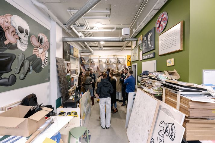 Settu tærnar upp í loft og fengu knús Dóra Júlía Agnarsdóttir skrifar 1. apríl 2026 07:02 Þau voru ófá knúsin sem Árni Már eigandi Gallery Port fékk í kveðjuhófinu um helgina. Aðsend Myndlistarmennirnir Árni Már og Skarphéðinn standa á tímamótum eftir tíu ára rekstur af listrýminu Gallery Port. Þeir stóðu fyrir lokahófi um helgina eftir að hafa staðið að yfir 300 sýningum og viðburðum. Margt var um manninn þegar strákarnir fögnuðu tíu ára starfsafmælinu með kveðjuteiti. „Eftir tíu ár af samfelldu sýningarstússi og brasi hér og hvar um bæinn setur Gallery Port upp tærnar. Í kveðjuhófinu spilaði DJ Big G en einnig kom Teitur Magnússon fram ásamt Arnari Birgissyni og tóku þeir nokkur lög. Þá ræddi listfræðingurinn Margrét Áskelsdóttir við þá Árna Má og Skarphéðinn, stofendur Gallery Port, um söguna. Í tilefni þessara tímamóta var gefið út prentverk í upplagi af 101, til minningar um það fjörlega listalíf sem allskonar myndlistarfólk hefur skapað með Gallery Port, á þeim þremur ólíku stöðum sem Port hefur sett sig niður,“ segir í fréttatilkynningu. Hér má sjá vel valdar myndir frá teitinu: Árni Már, Halli Civelek, Teitur Magnússon og Skarphéðinn að afgreiða prentverk.Aðsend Jón Sæmundur, Ýmir Grönvold og Bragi Guðlaugsson á spjalli.Aðsend Fjöldi fólks leit við.Aðsend Verk eftir Baldur Helgason hér til vinstri.Aðsend Halldór Sturluson, Heba Eir Kjeld og Skarphéðinn Bergþóruson.Aðsend Helga Ósk Hlynsdóttir og Ingvar Orri Björgvinsson.Aðsend Tobba Ólafsdóttir og Sæþór Örn Ásmundsson.Aðsend Gauti Erlingsson og Árni í knúsi.Aðsend Teitur tróð upp.Aðsend Halli Civelek og Teitur Magnússon.Aðsend Teitur Magnússon og Arnar Birgisson.Aðsend DJ Big Gee.Aðsend Gauti Erlingsson, Árni Már og Erla Gísladóttir.Aðsend Árni og Gunnar Georgsson.Aðsend Árni Már, Tobba Ólafsdóttir og Sæþór Örn Ásmundsson.Aðsend Eyja Eydal og Silja Huld Árnadóttir.Aðsend Árni Már, Halli Civelek, Teitur Magnússon og Skarphéðinn að afgreiða prentverk.Aðsend Sýningar á Íslandi Tímamót Myndlist Menning Mest lesið Mótefni gegn afmennskun og kúgun Lífið Settu tærnar upp í loft og fengu knús Menning Var sagt að þetta væri „hluti af því að vera kona“ Lífið „Dapur yfir því hvernig fór fyrir honum eftir að hann hætti í pólitíkinni“ Lífið KK átti salinn - en tónlistin varð útundan Gagnrýni „Þú munt verða stórkostleg söngkona“ Tónlist Hundrað skvísur blómstruðu saman Lífið „Það sést ekki á mér að ég sé að upplifa þetta“ Lífið Hatari hættir í Þjóðleikhúsinu og breytingar í Borgó Lífið Kom gríðarlega stórum hlut í gegnum kleinuhring án þess að skemma hann Lífið Fleiri fréttir Settu tærnar upp í loft og fengu knús „Ekki viss hvort ég sé að skrifa minningargrein eða kveðjubréf“ Sjötugur Haukur Holm kveður fréttamennskuna Raðvændiskaupandi dæmir ekki á Íslandi eftir allt saman Pétur Marteinn Páll Urbancic er látinn Edda tryllti gesti óvænt með Ladda Framtíð Mengis óráðin þó eignin sé til sölu Hjálmar H. Ragnarsson er látinn Fá rödd Guðna lánaða Hundrað þúsund bóka múrnum rústað á Bókamarkaðnum Fræjum framtíðar sáð í gamlar bókasafnsbækur Gjöfull trekantur Þessi hljóta tilnefningu til Myndlistarverðlauna Ástin blómstraði á sýningu Tolla Sjá meira