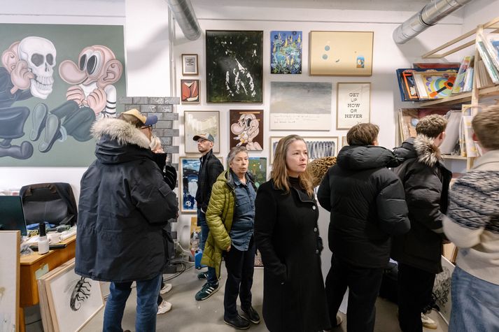 Margt var um manninn þegar strákarnir fögnuðu tíu ára starfsafmælinu með kveðjuteiti. „Eftir tíu ár af samfelldu sýningarstússi og brasi hér og hvar um bæinn setur Gallery Port upp tærnar. Í kveðjuhófinu spilaði DJ Big G en einnig kom Teitur Magnússon fram ásamt Arnari Birgissyni og tóku þeir nokkur lög. Þá ræddi listfræðingurinn Margrét Áskelsdóttir við þá Árna Má og Skarphéðinn, stofendur Gallery Port, um söguna. Í tilefni þessara tímamóta var gefið út prentverk í upplagi af 101, til minningar um það fjörlega listalíf sem allskonar myndlistarfólk hefur skapað með Gallery Port, á þeim þremur ólíku stöðum sem Port hefur sett sig niður,“ segir í fréttatilkynningu. Hér má sjá vel valdar myndir frá teitinu: Árni Már, Halli Civelek, Teitur Magnússon og Skarphéðinn að afgreiða prentverk.Aðsend Jón Sæmundur, Ýmir Grönvold og Bragi Guðlaugsson á spjalli.Aðsend Fjöldi fólks leit við.Aðsend Verk eftir Baldur Helgason hér til vinstri.Aðsend Halldór Sturluson, Heba Eir Kjeld og Skarphéðinn Bergþóruson.Aðsend Helga Ósk Hlynsdóttir og Ingvar Orri Björgvinsson.Aðsend Tobba Ólafsdóttir og Sæþór Örn Ásmundsson.Aðsend Gauti Erlingsson og Árni í knúsi.Aðsend Teitur tróð upp.Aðsend Halli Civelek og Teitur Magnússon.Aðsend Teitur Magnússon og Arnar Birgisson.Aðsend DJ Big Gee.Aðsend Gauti Erlingsson, Árni Már og Erla Gísladóttir.Aðsend Árni og Gunnar Georgsson.Aðsend Árni Már, Tobba Ólafsdóttir og Sæþór Örn Ásmundsson.Aðsend Eyja Eydal og Silja Huld Árnadóttir.Aðsend Árni Már, Halli Civelek, Teitur Magnússon og Skarphéðinn að afgreiða prentverk.Aðsend