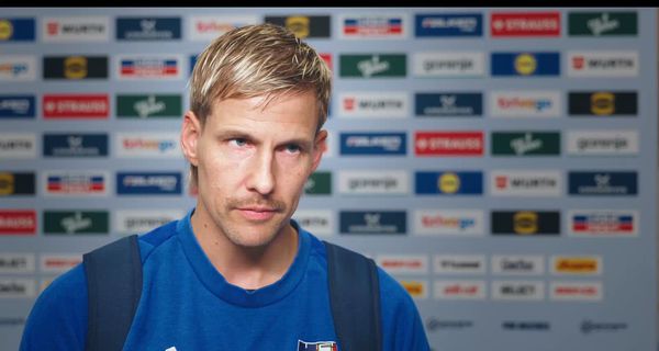 Vel lá á Viktori Gísla Hallgrímssyni eftir eins marks sigur Íslands á Ungverjalandi, 23-24, í F-riðli á Evrópumótinu í handbolta í dag. Viktor átti stórleik og varði 23 skot.