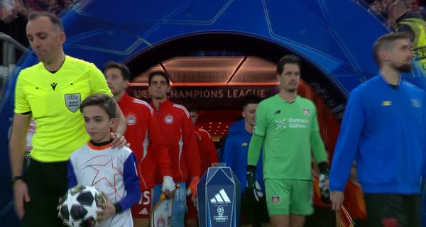 Forystusaður hleypur í taumi með hesti og knapa