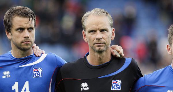 Oleksandr Zubkov var aleinn og óvaldaður þegar hann kom Úkraínu í 1-0 gegn Íslandi í úrslitaleiknum um sæti í HM-umspilinu.